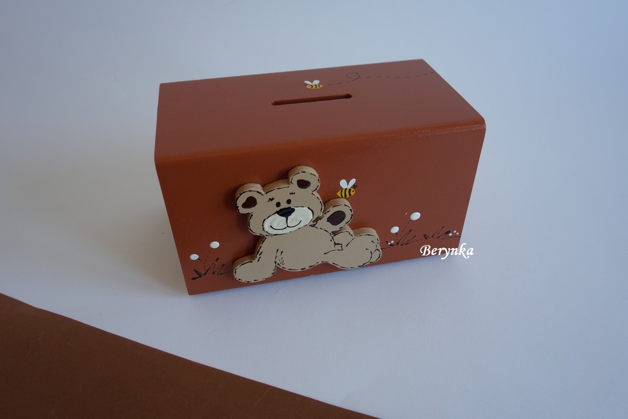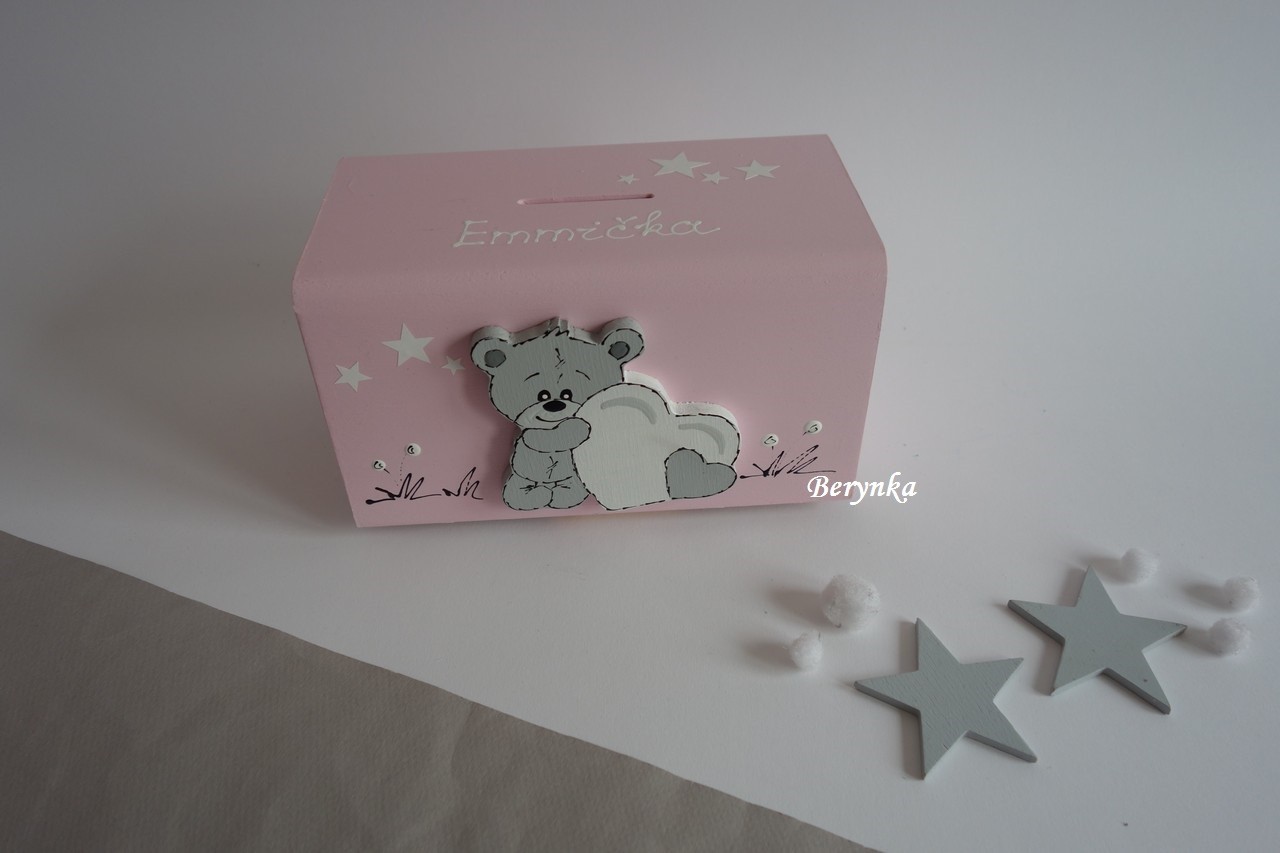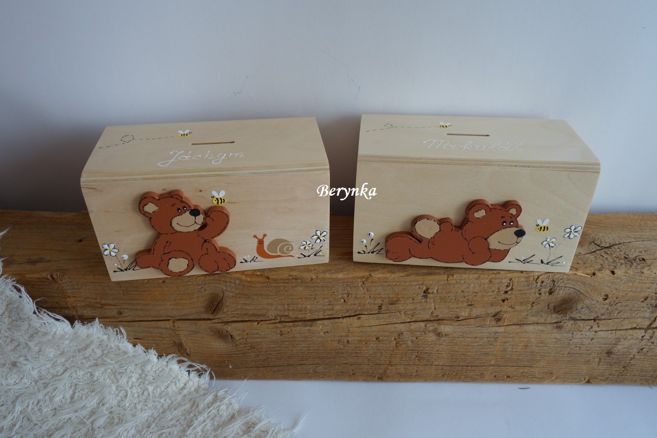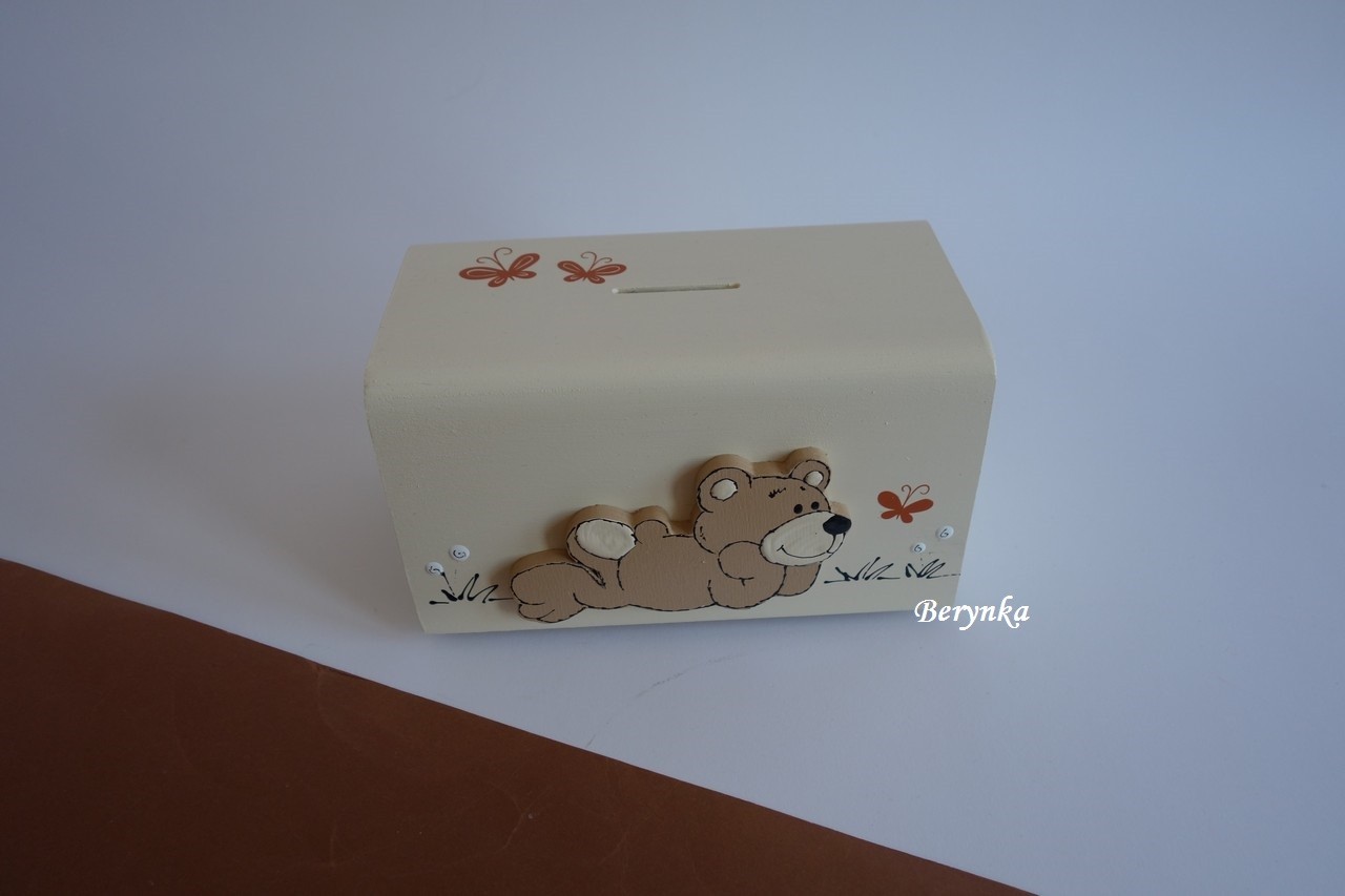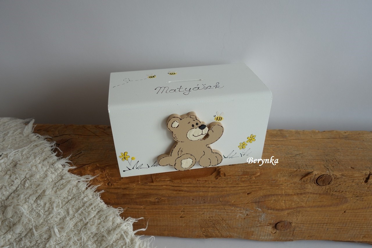 Dřevěná pokladnička s medvídkem