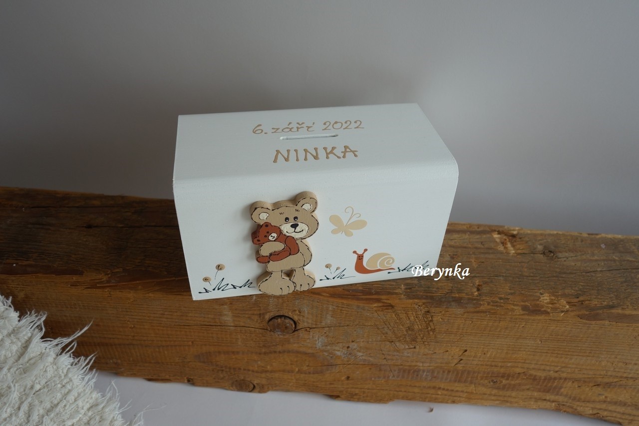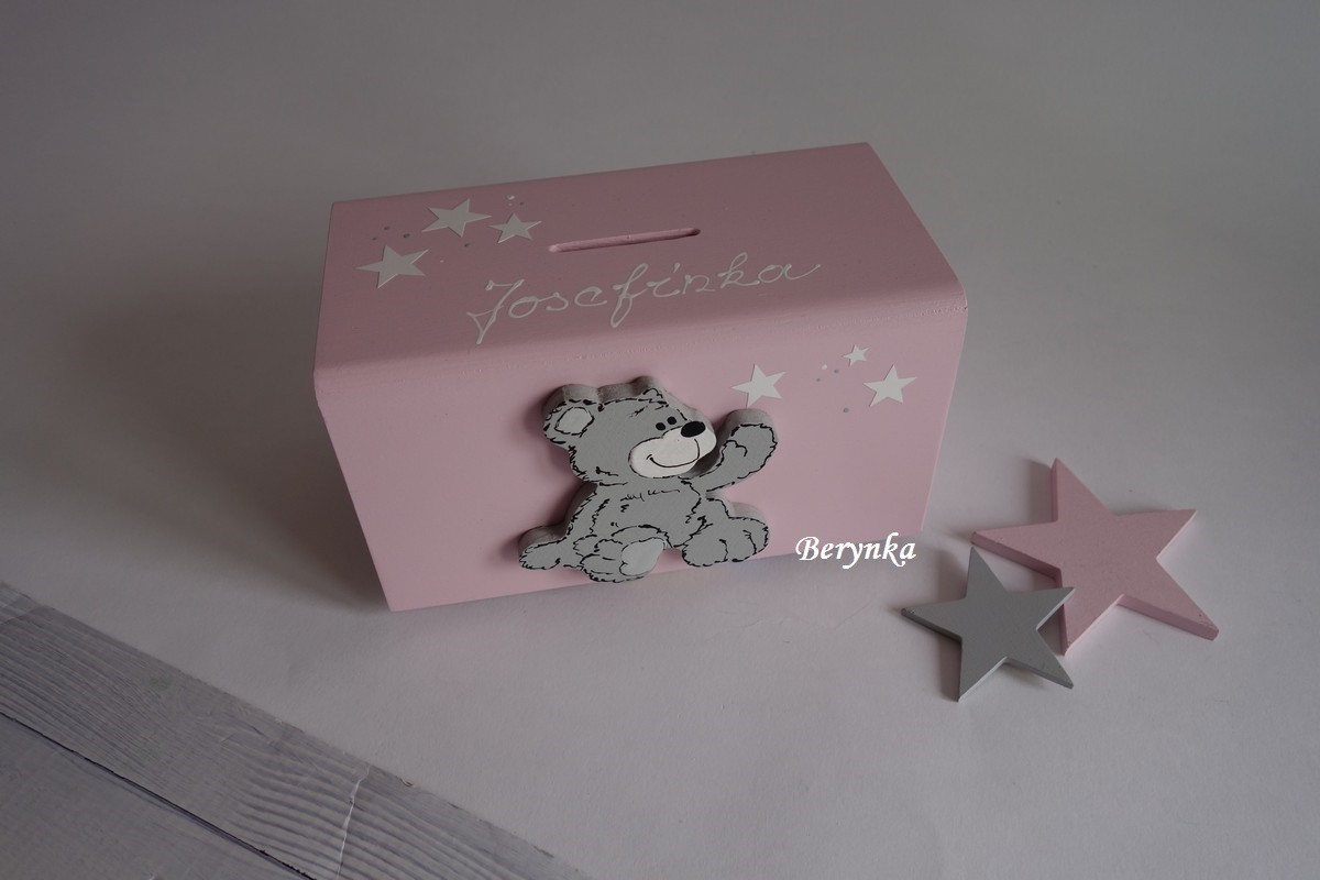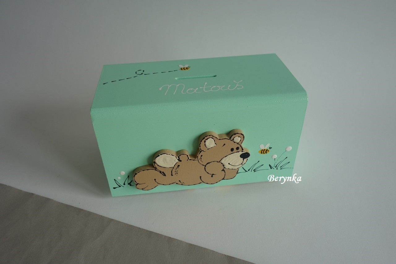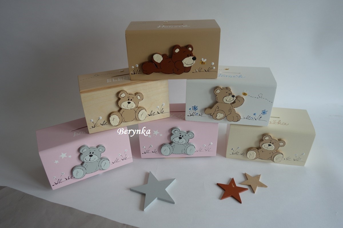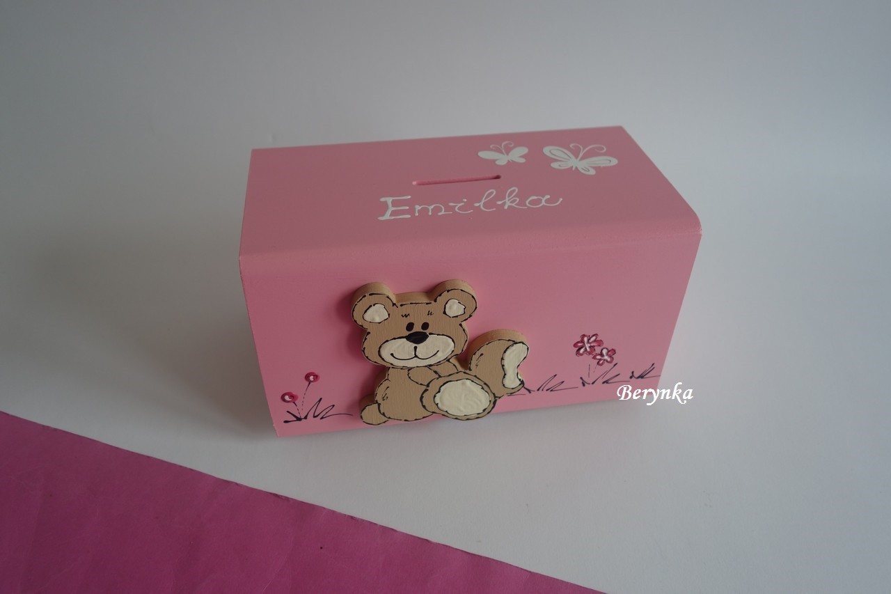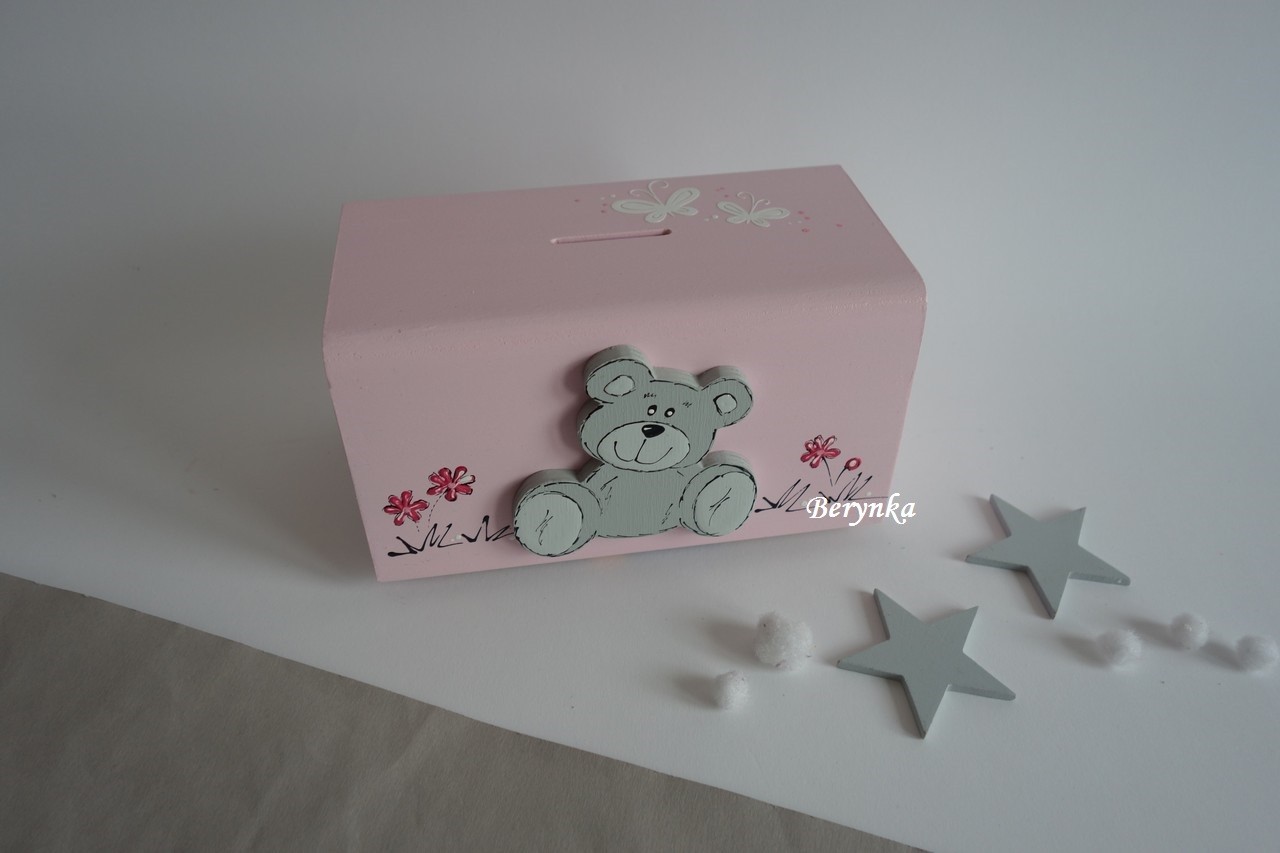 Dřevěná pokladnička s medvídkem