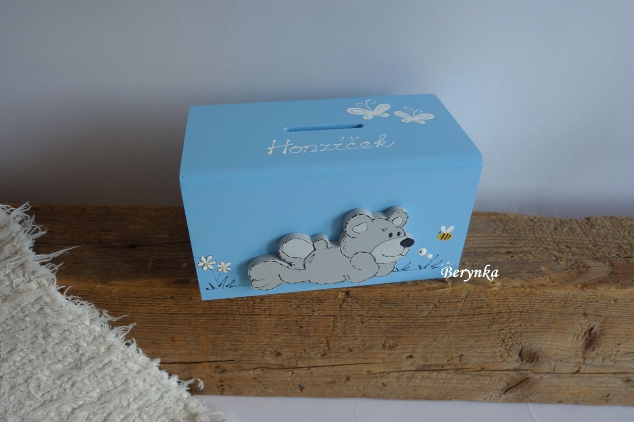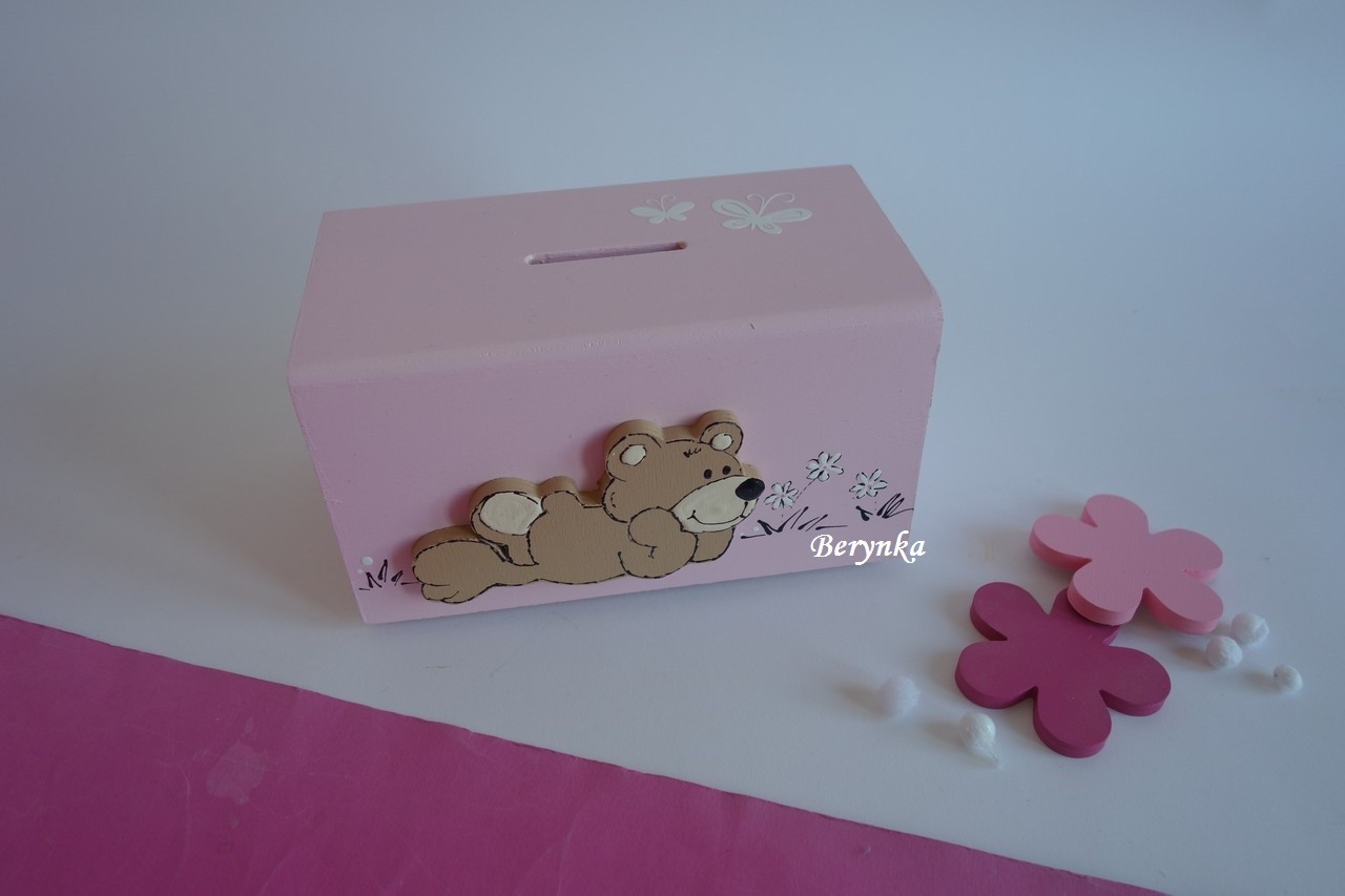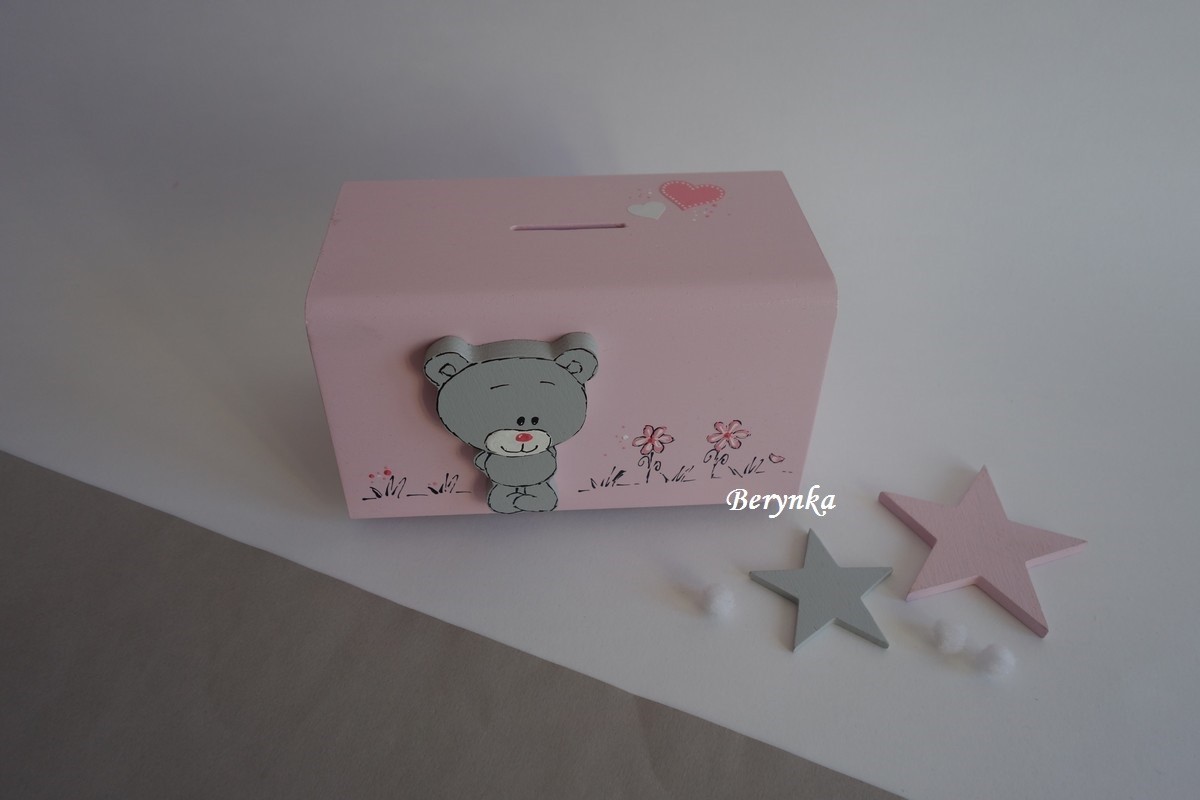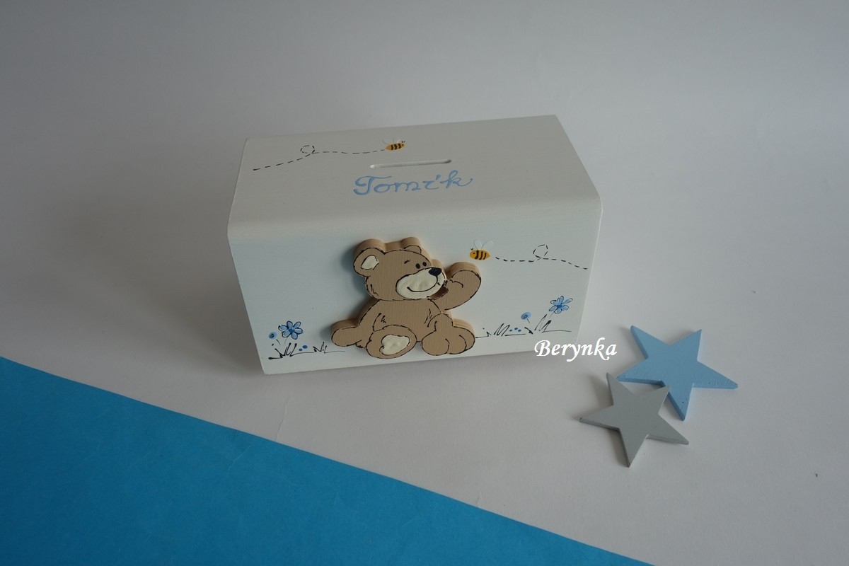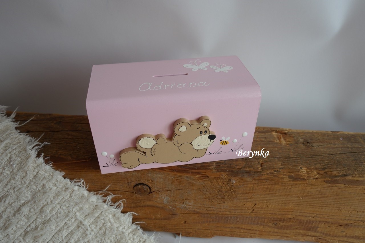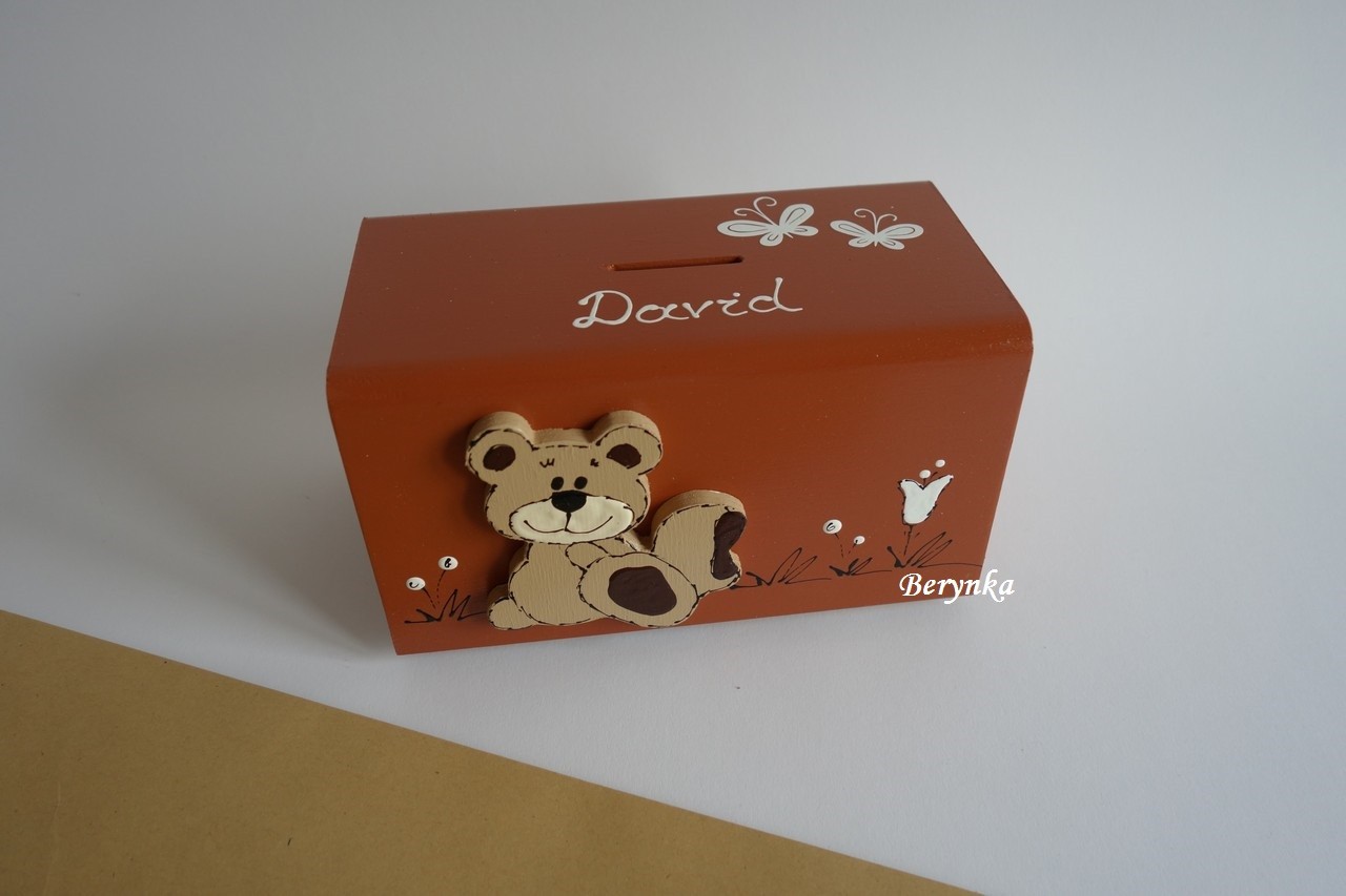 Dřevěná pokladnička s medvídkem
