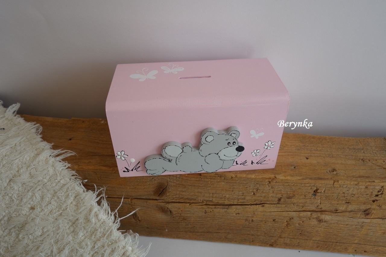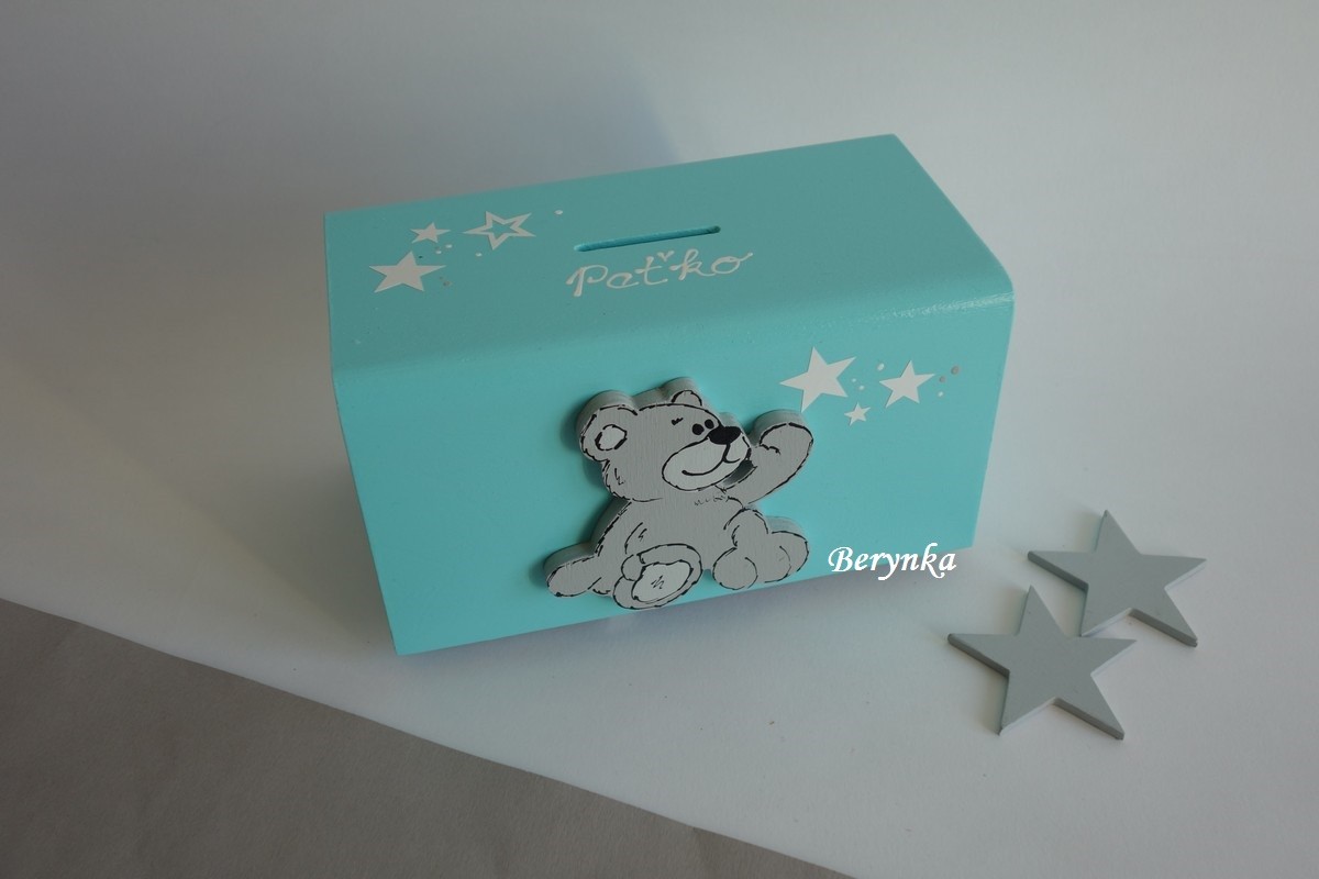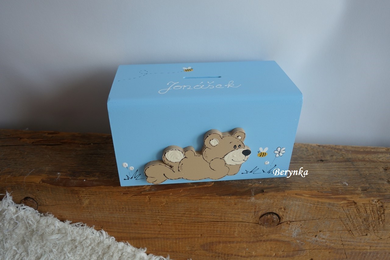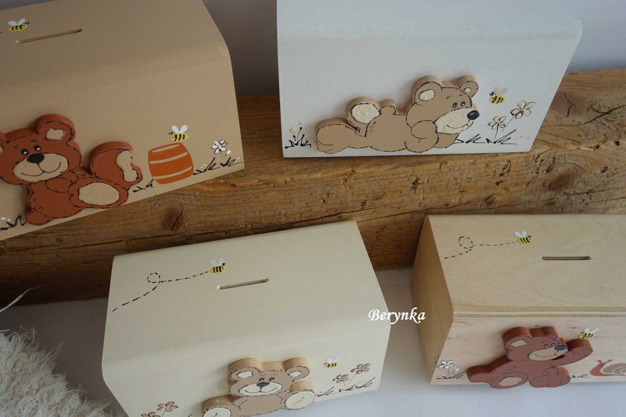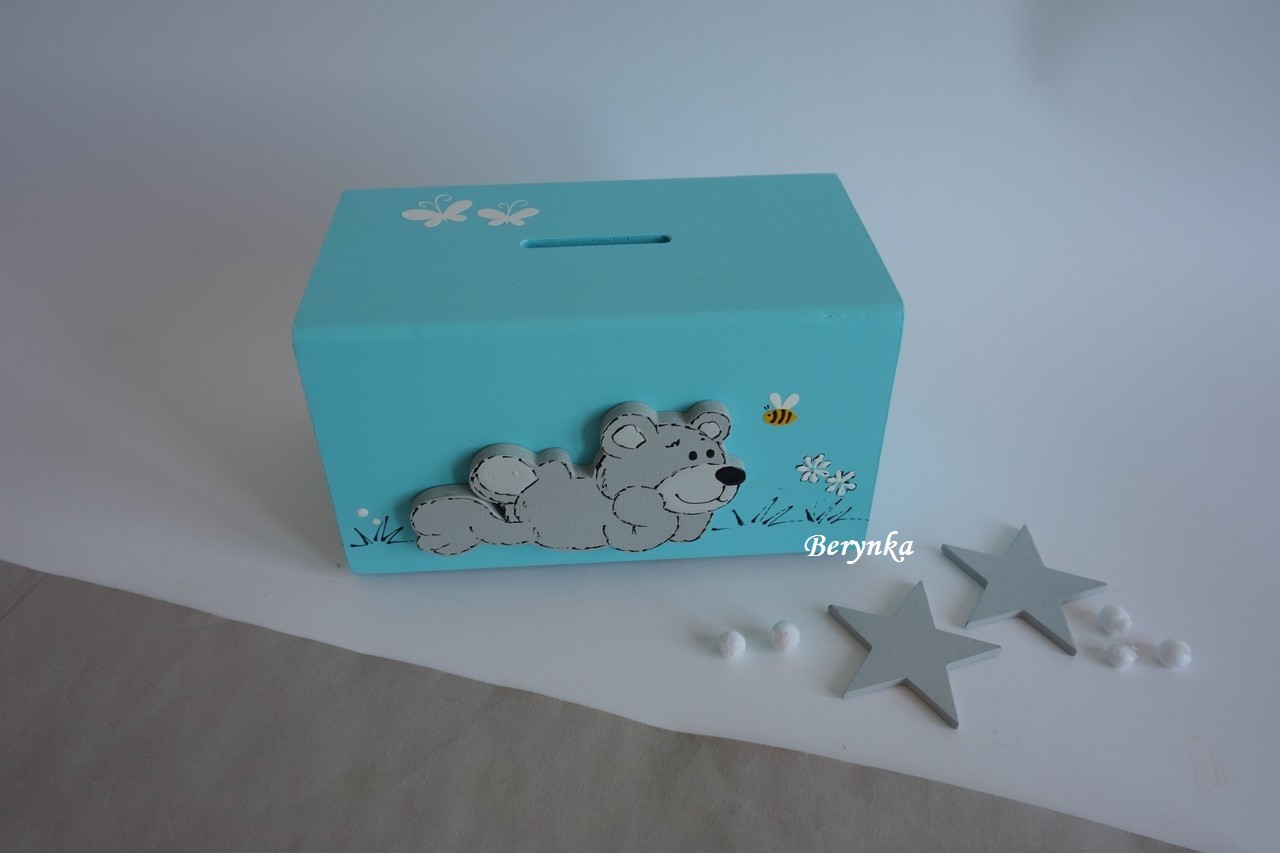Dřevěná pokladnička s medvídkem