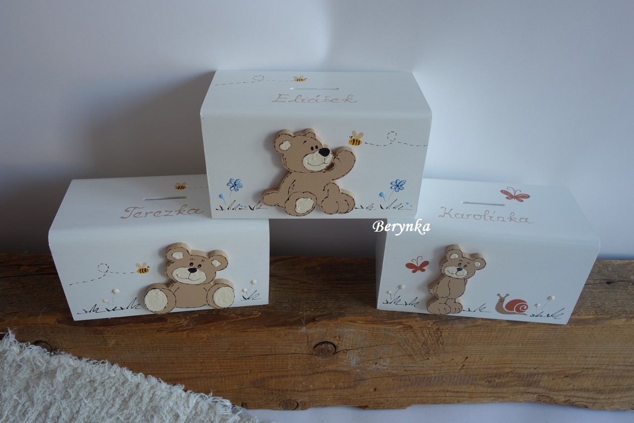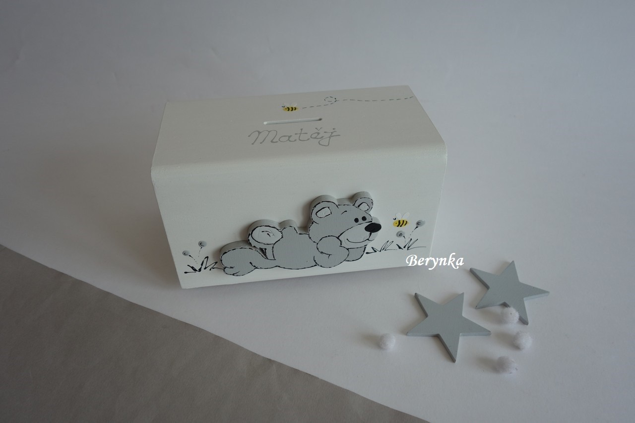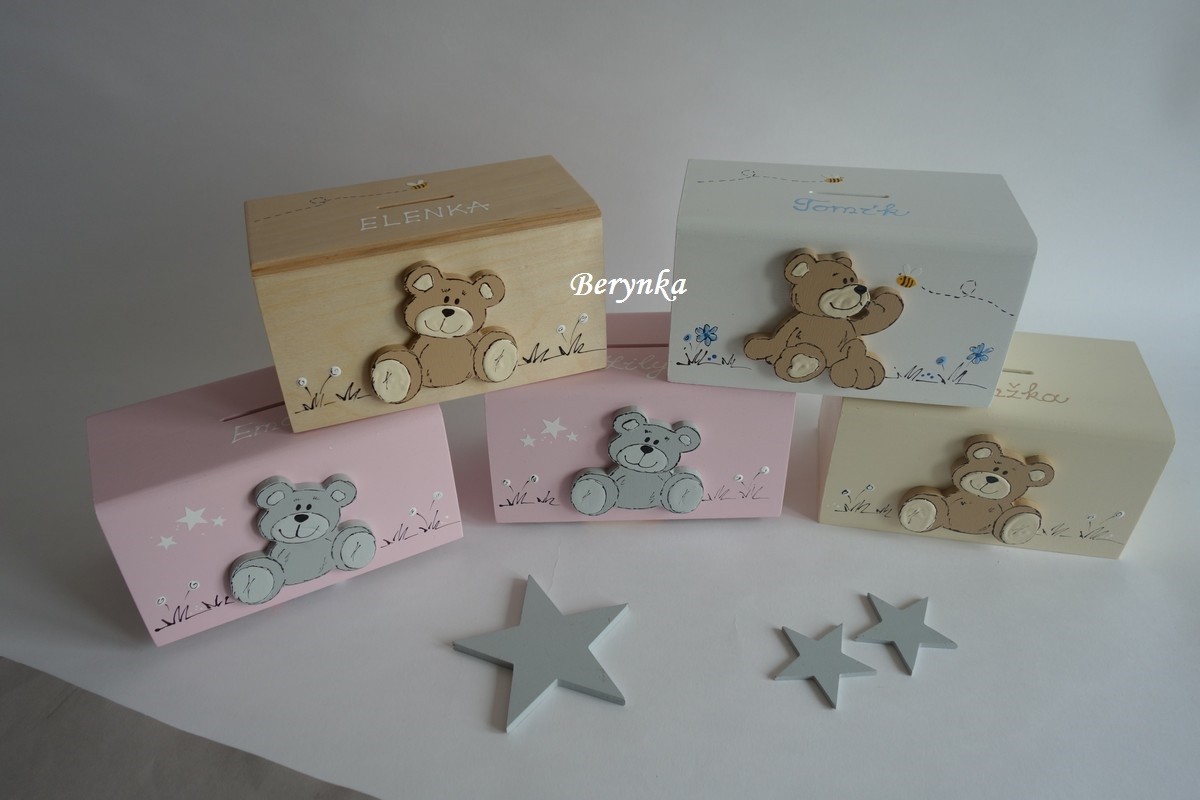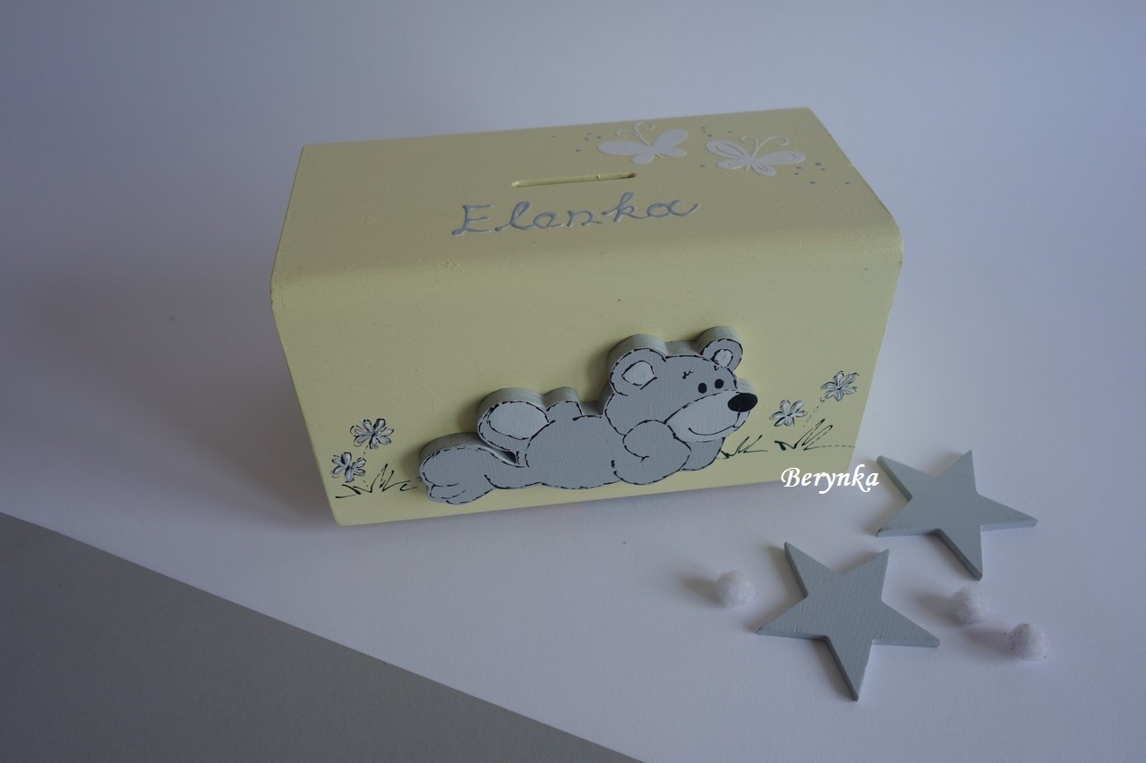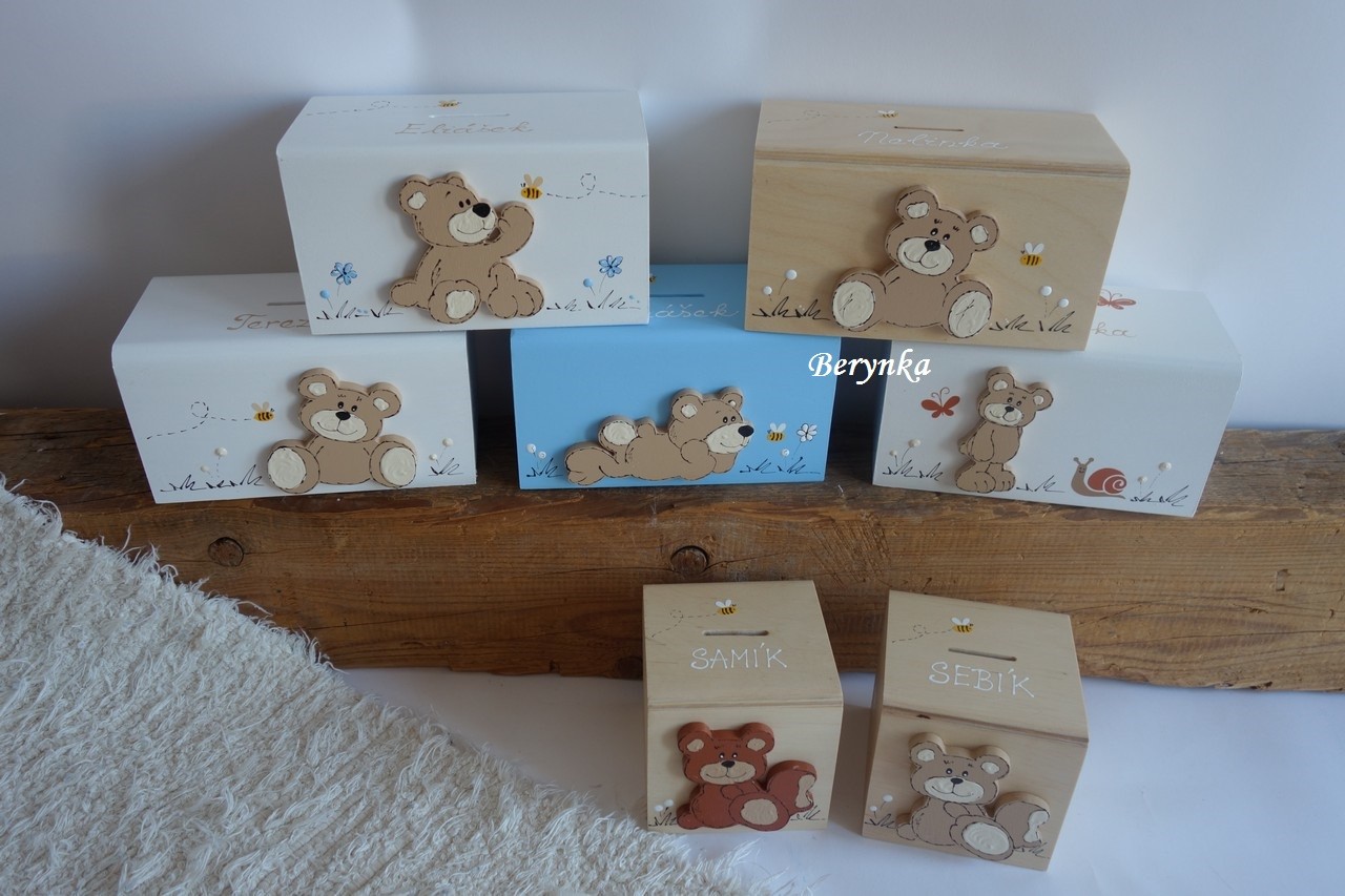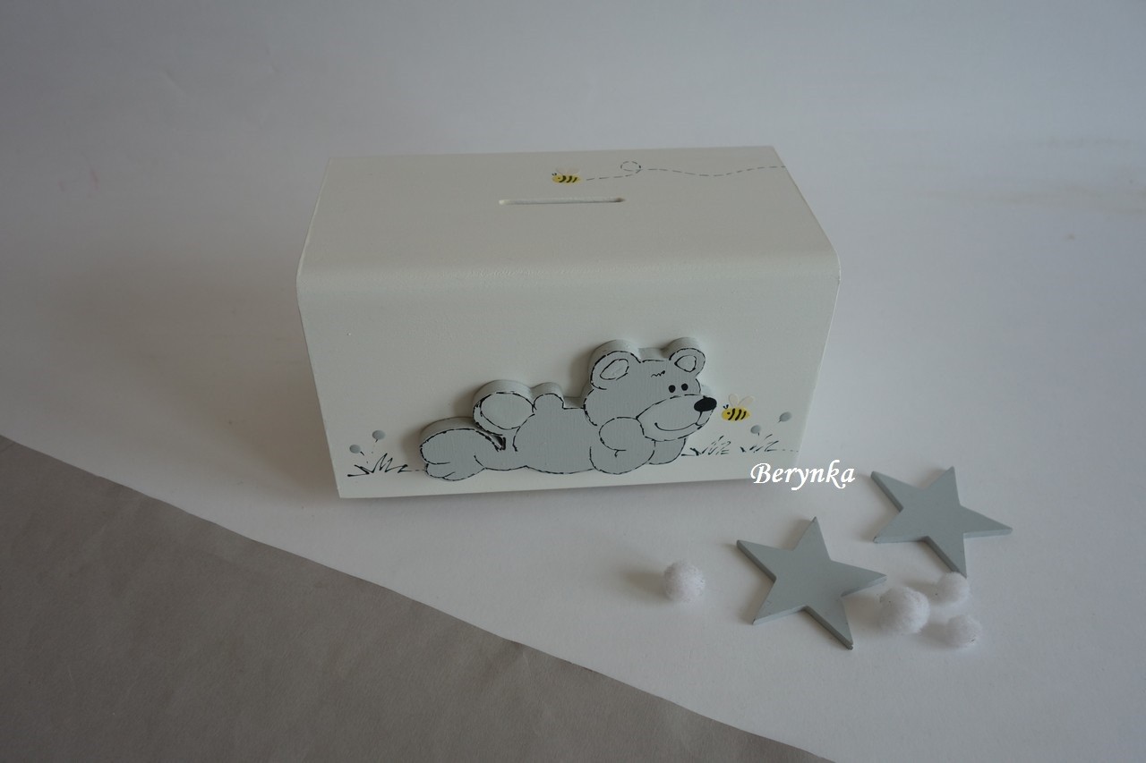 Dřevěná pokladnička s medvídkem