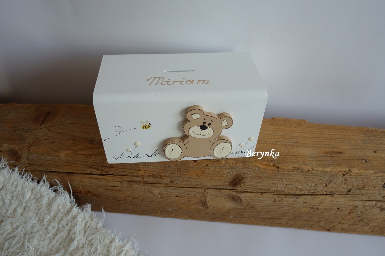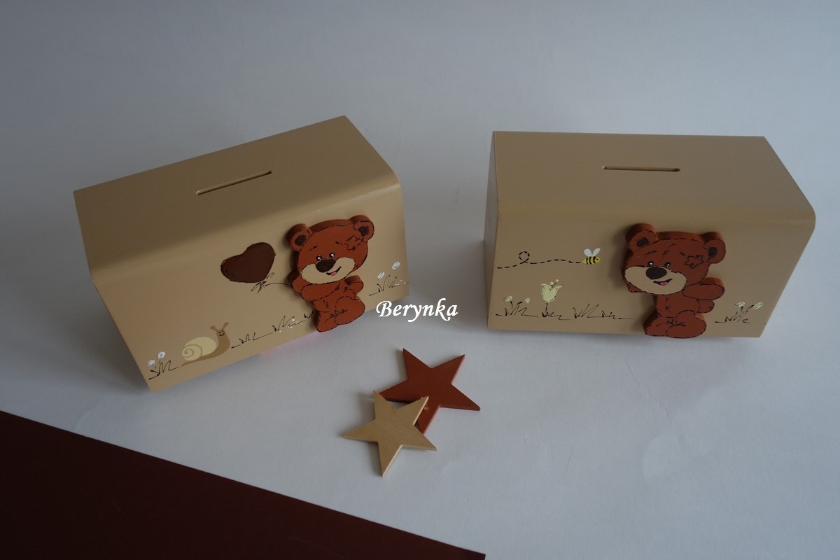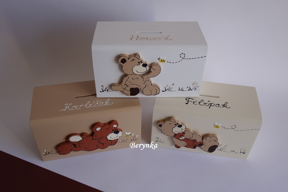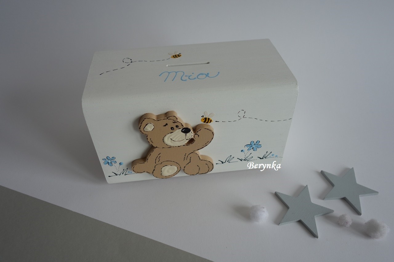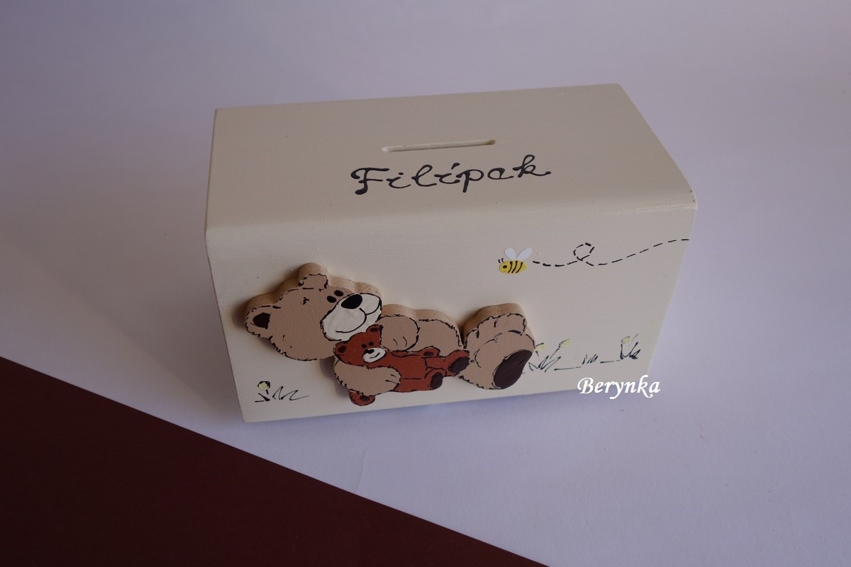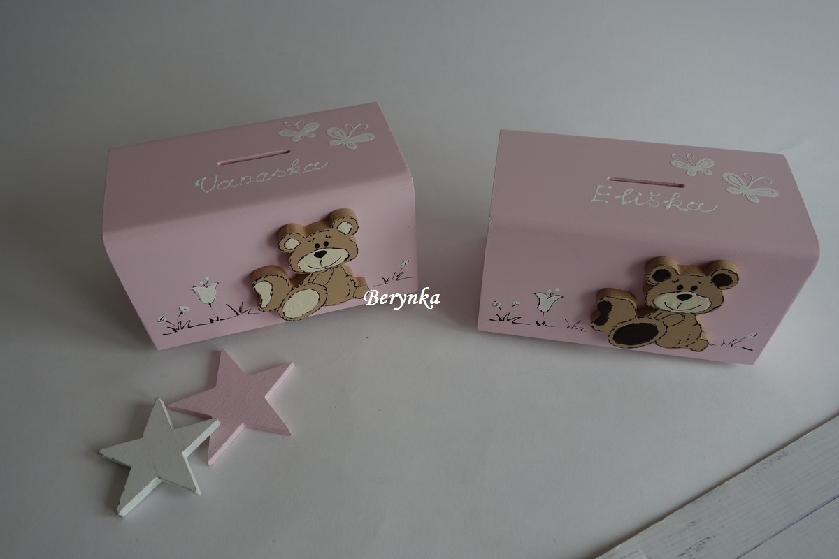 Dřevěná pokladnička s medvídkem