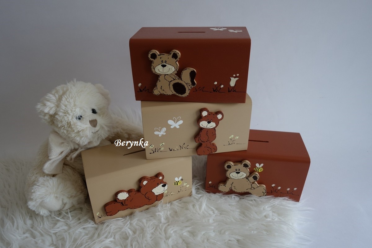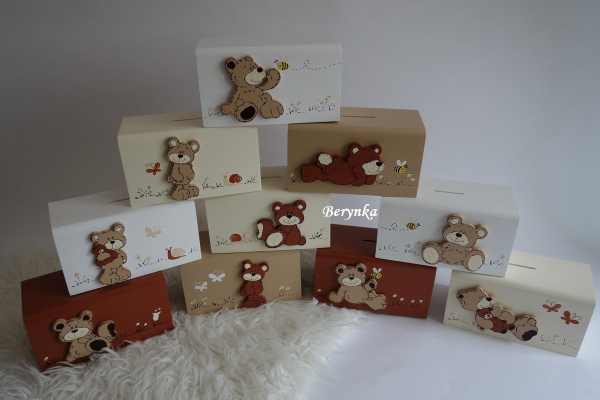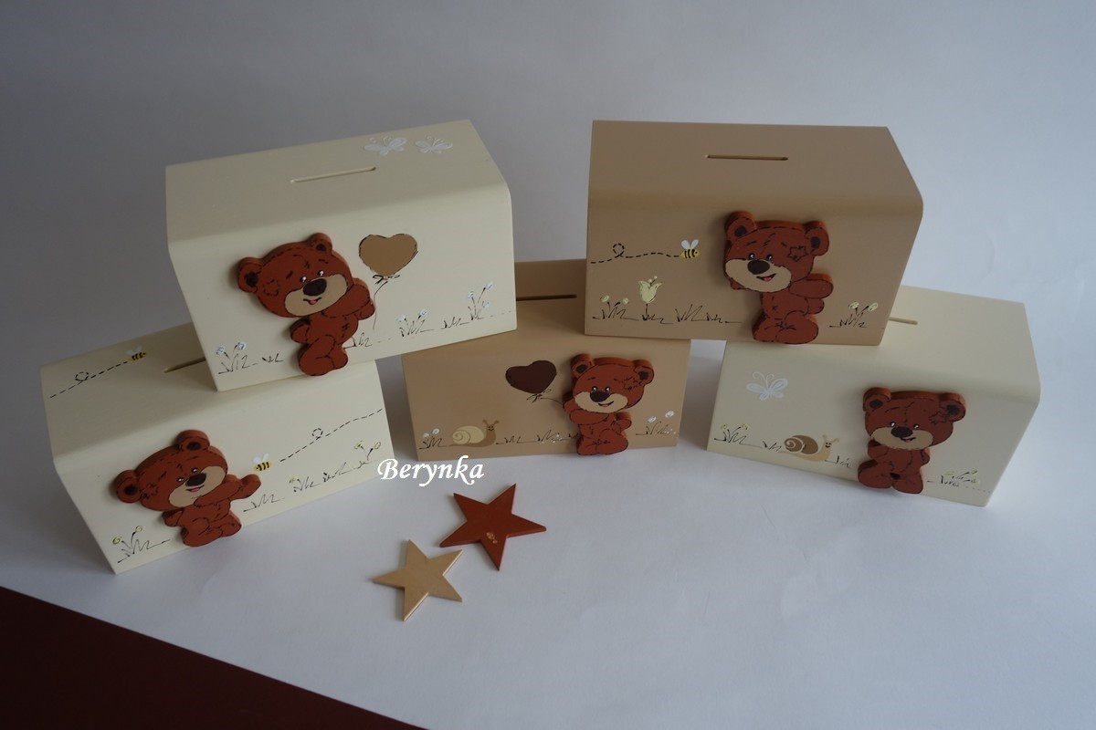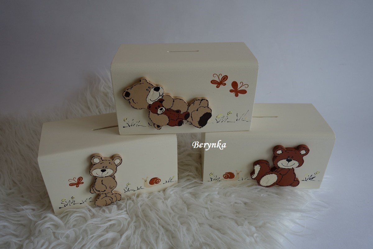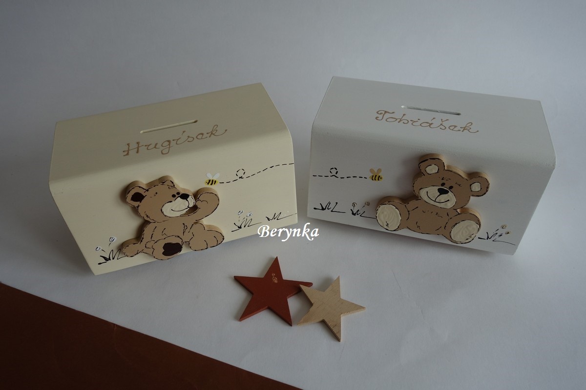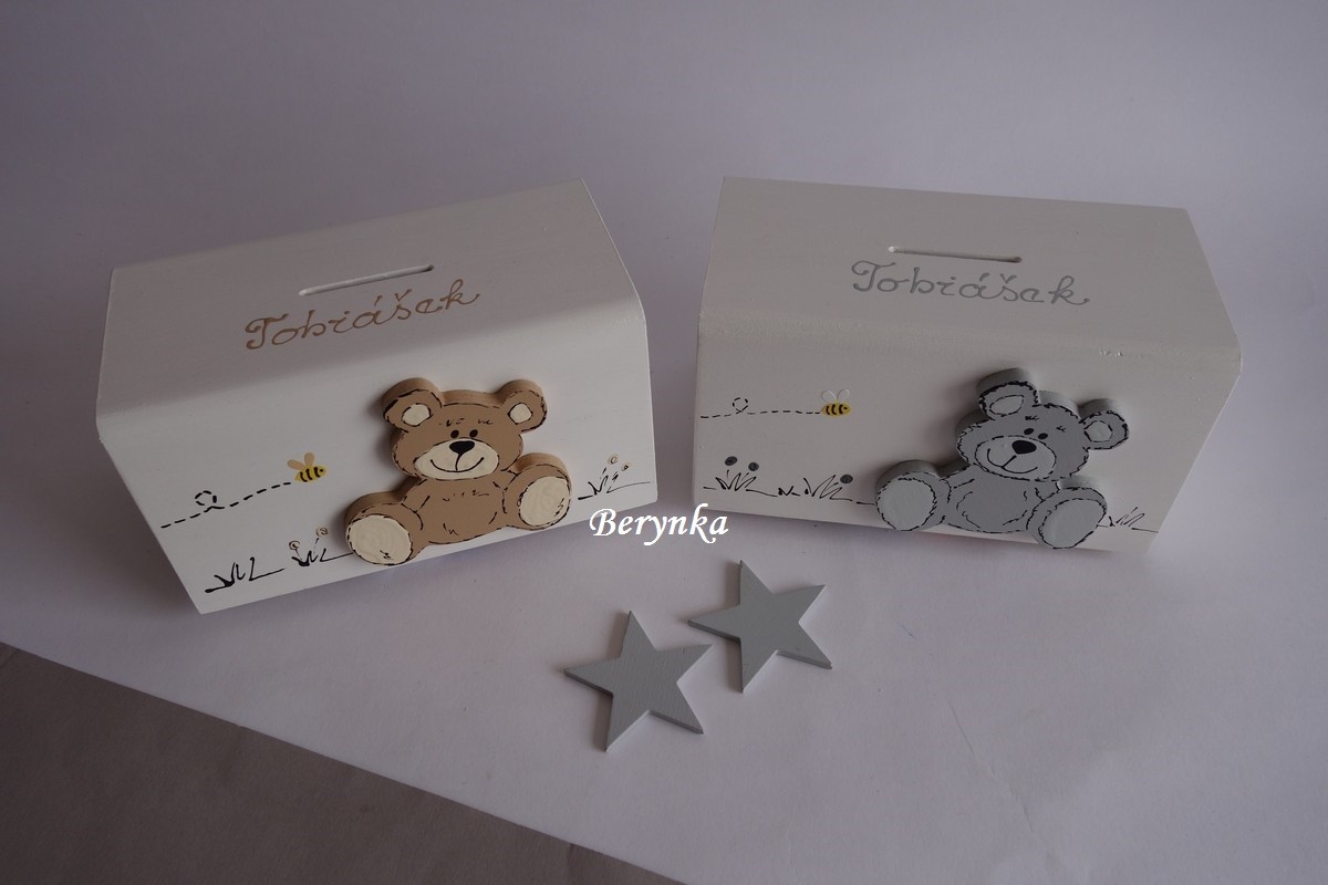 Dřevěná pokladnička s medvídkem