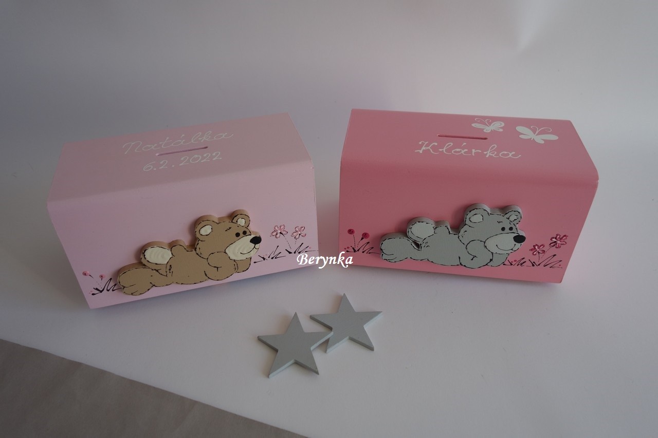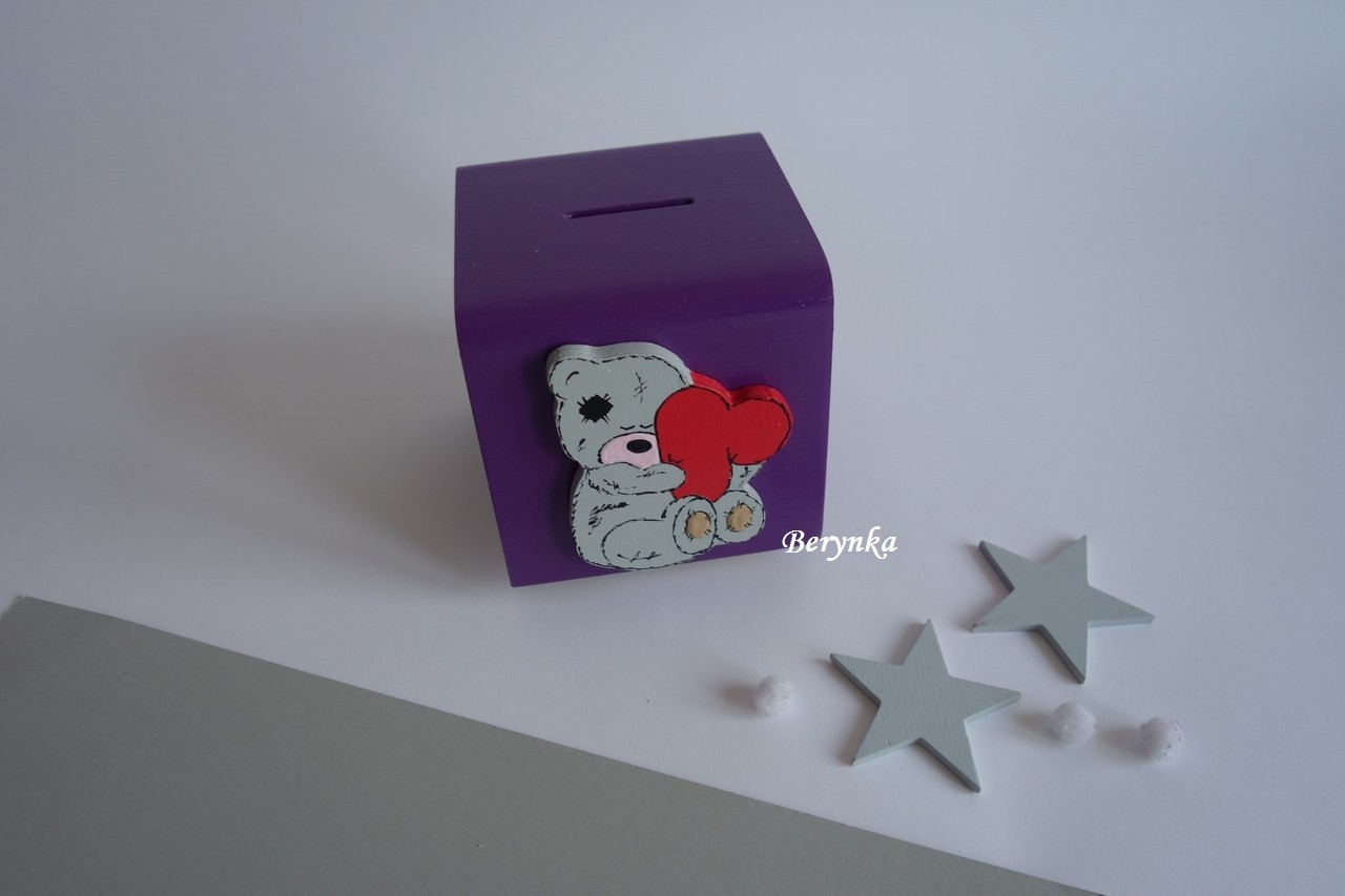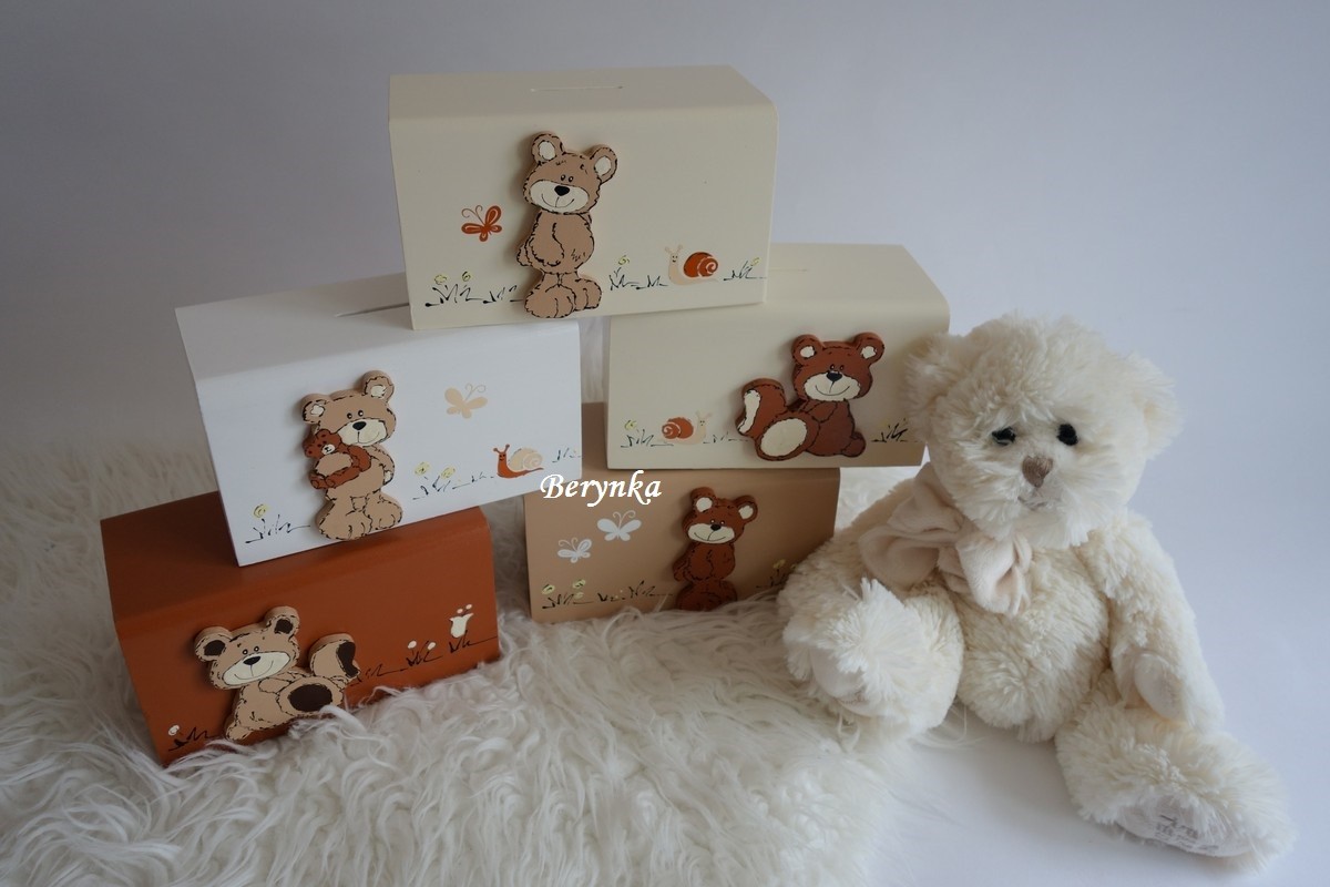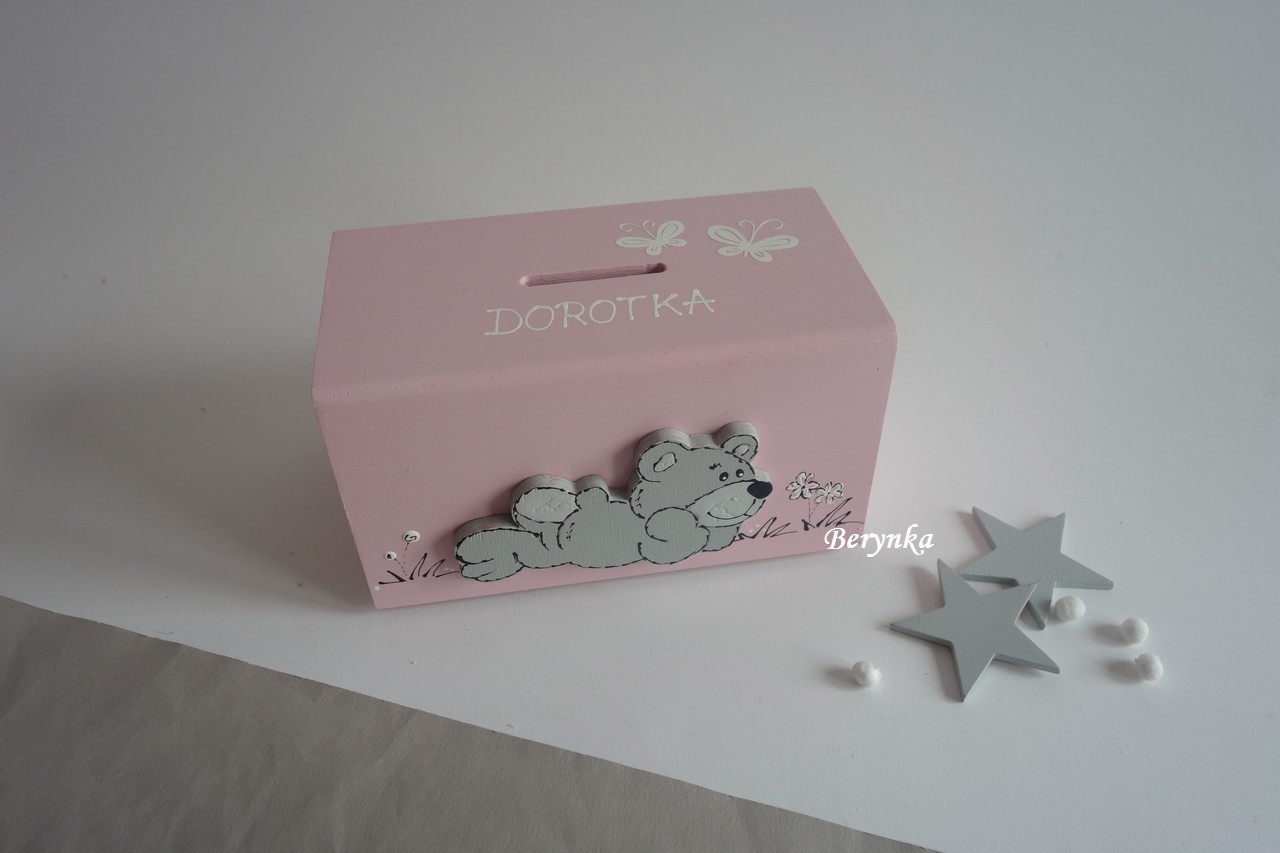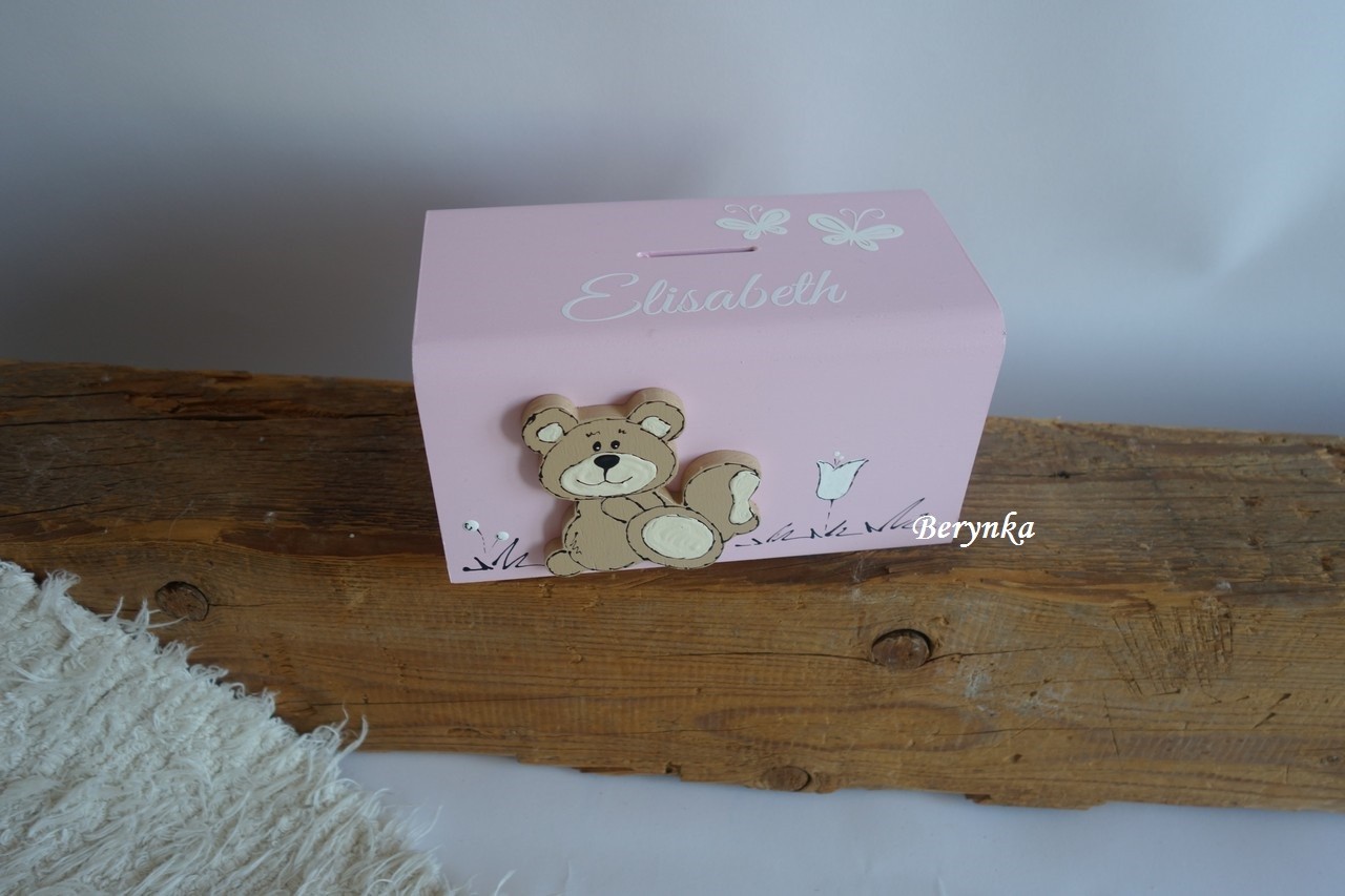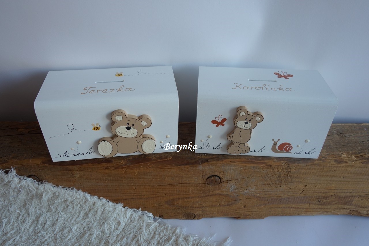 Dřevěná pokladnička s medvídkem
