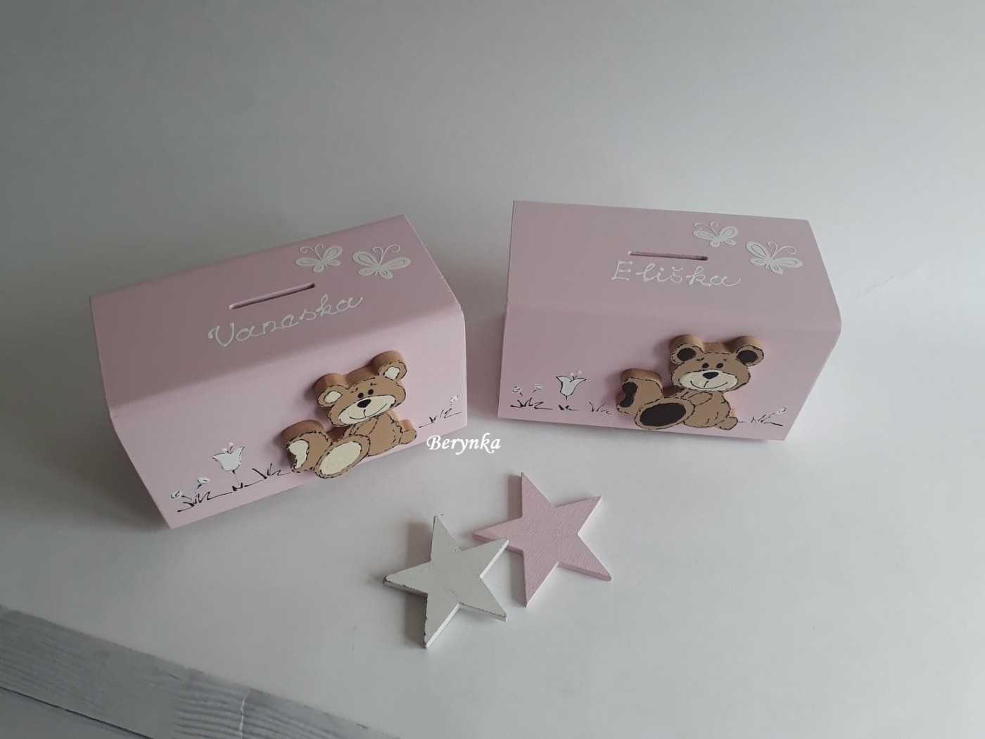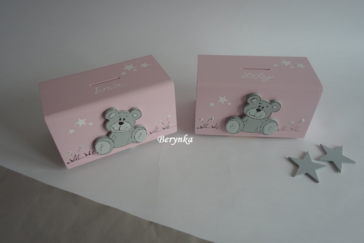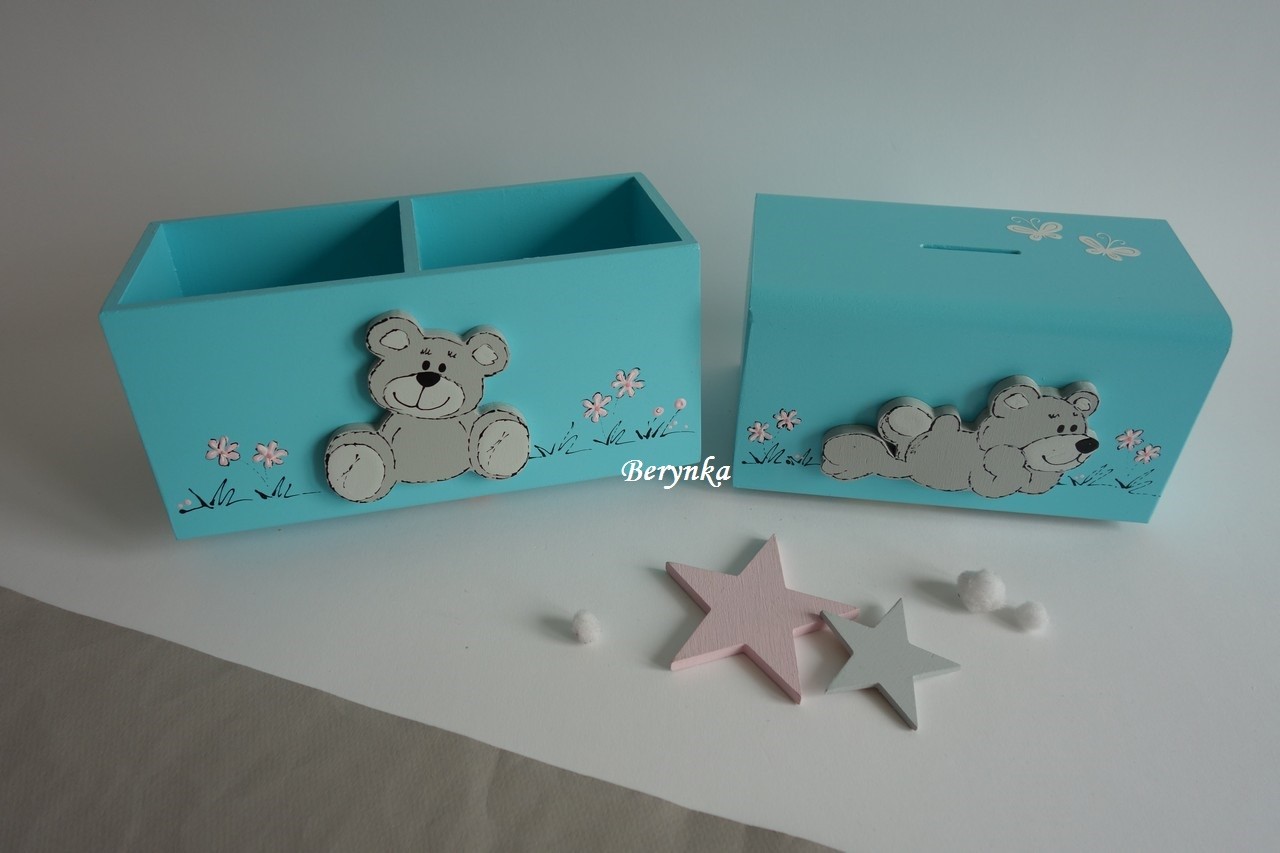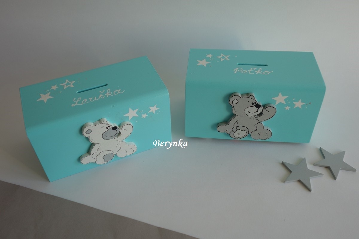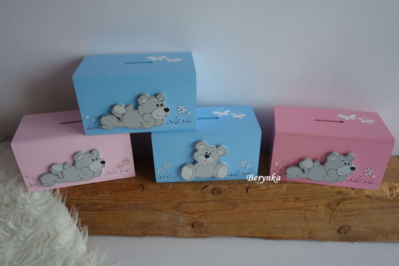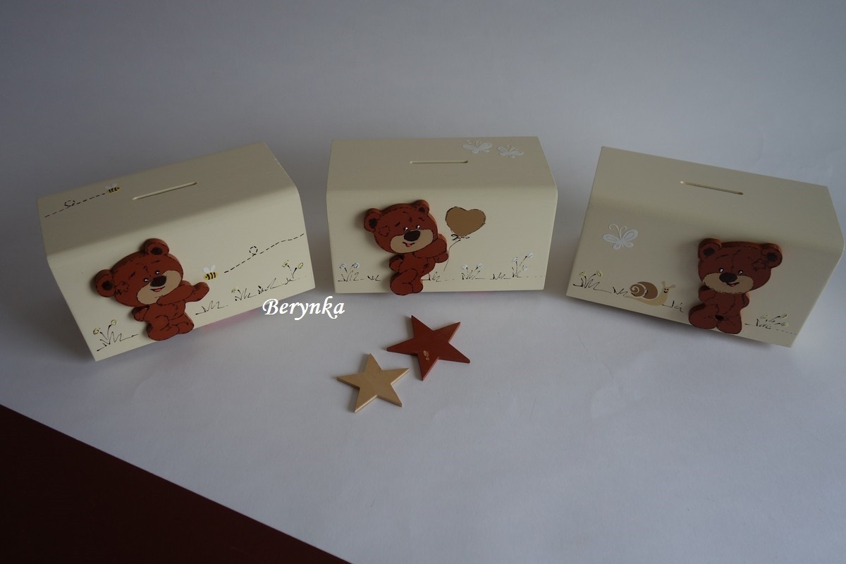 Dřevěná pokladnička s medvídkem