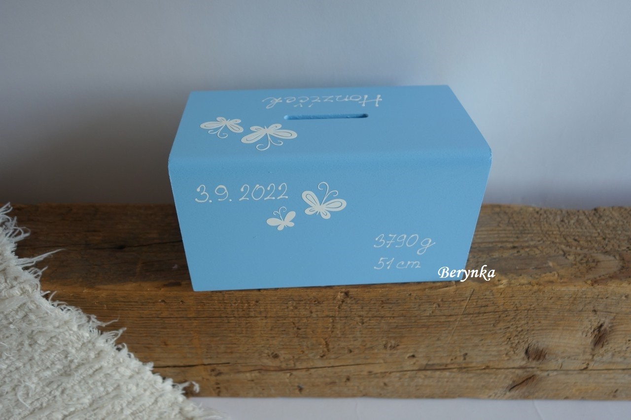 - pokladnička je ručně malovaná, zdobená a přelakovaná - je možné jí snadno otřít