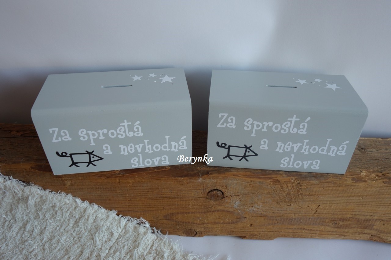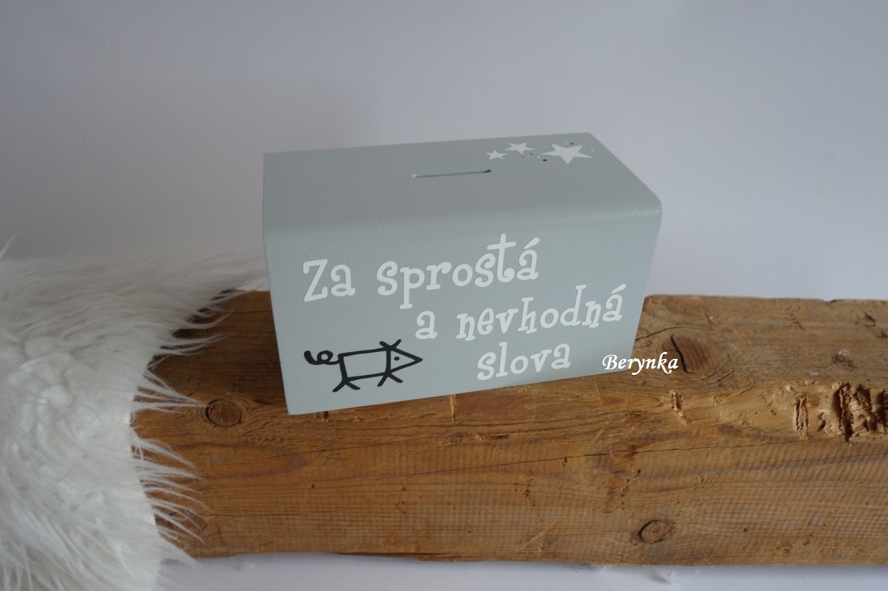 Dřevěná pokladnička s nápisem