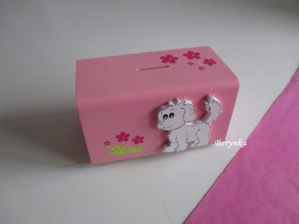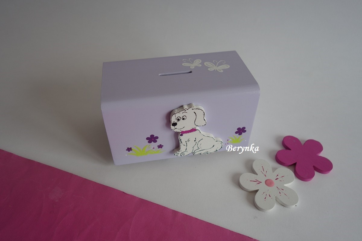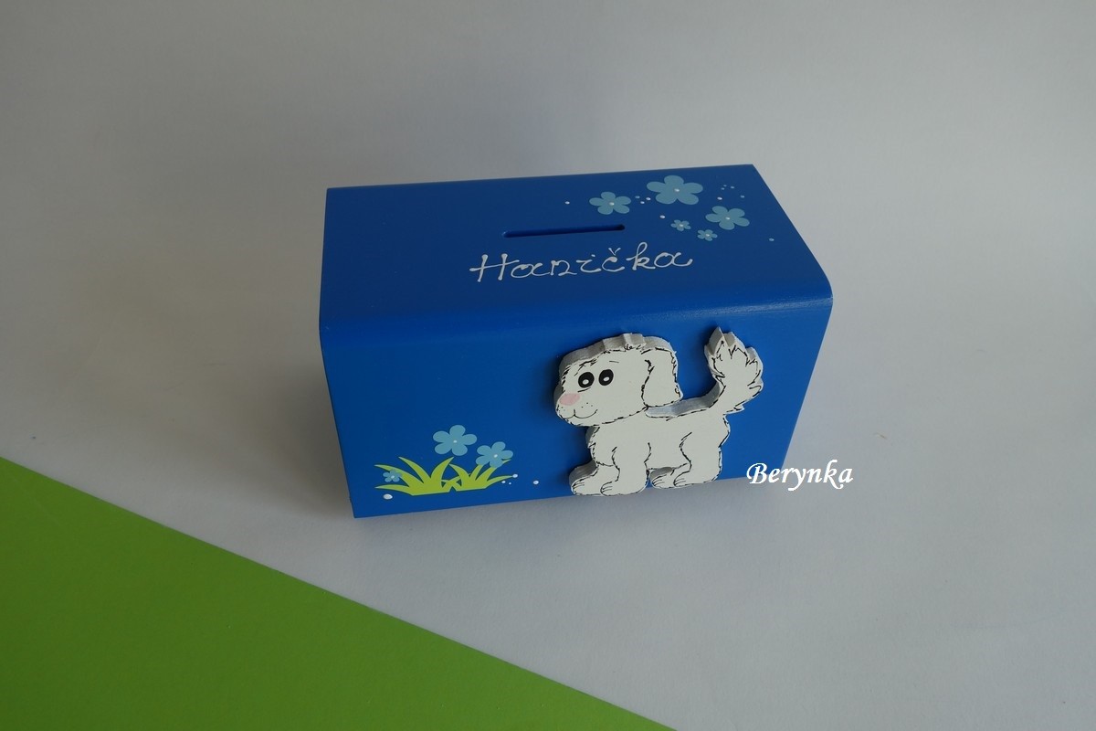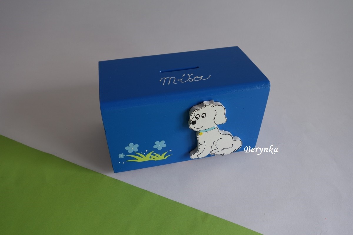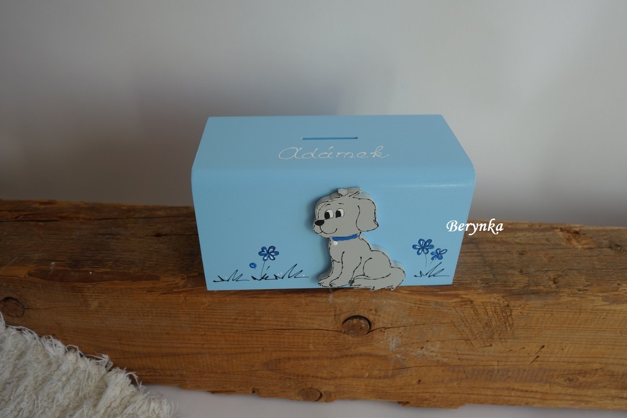 Dřevěná pokladnička s pejskem