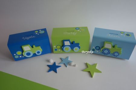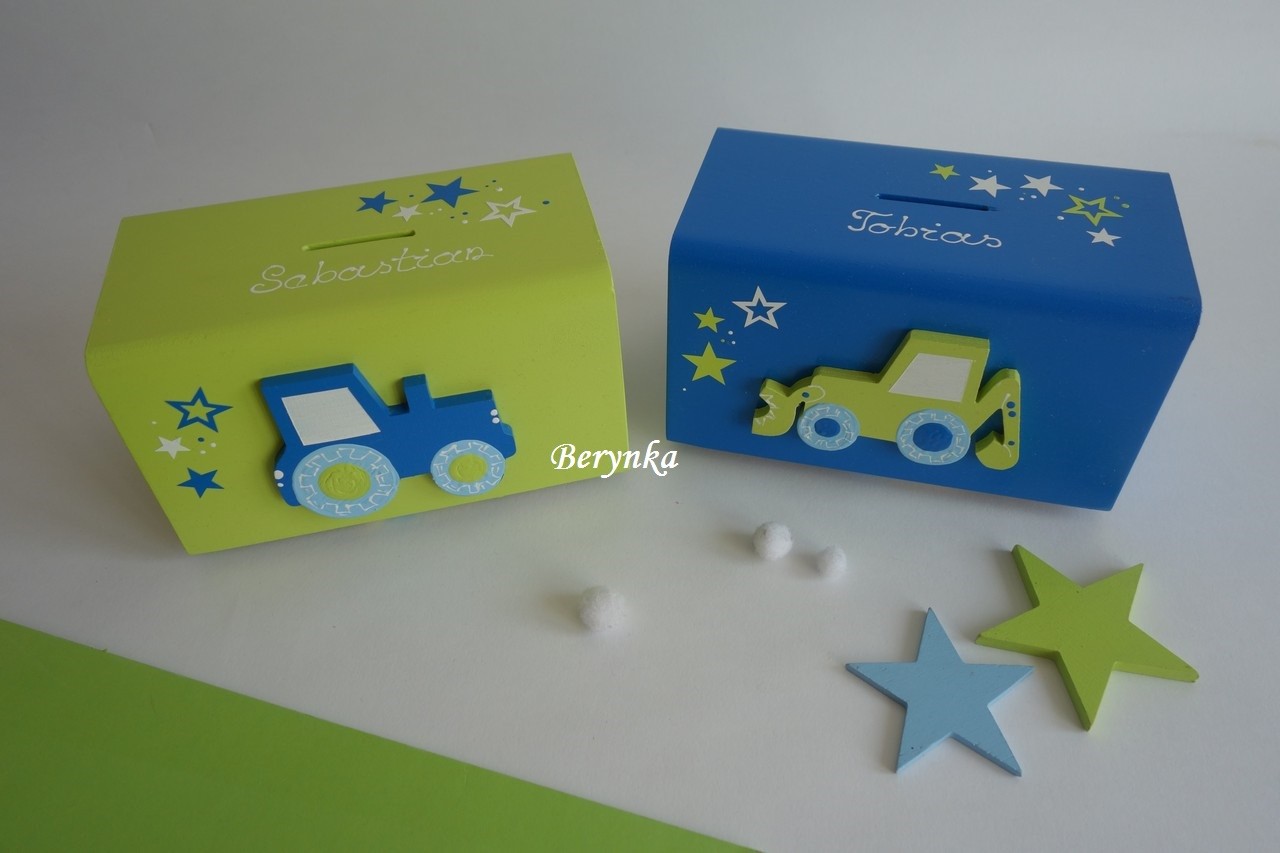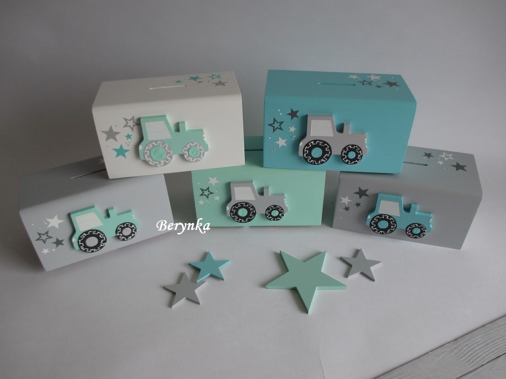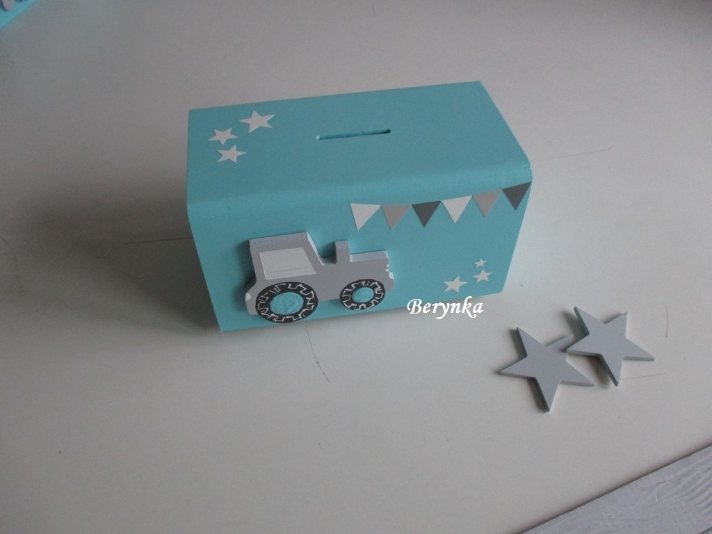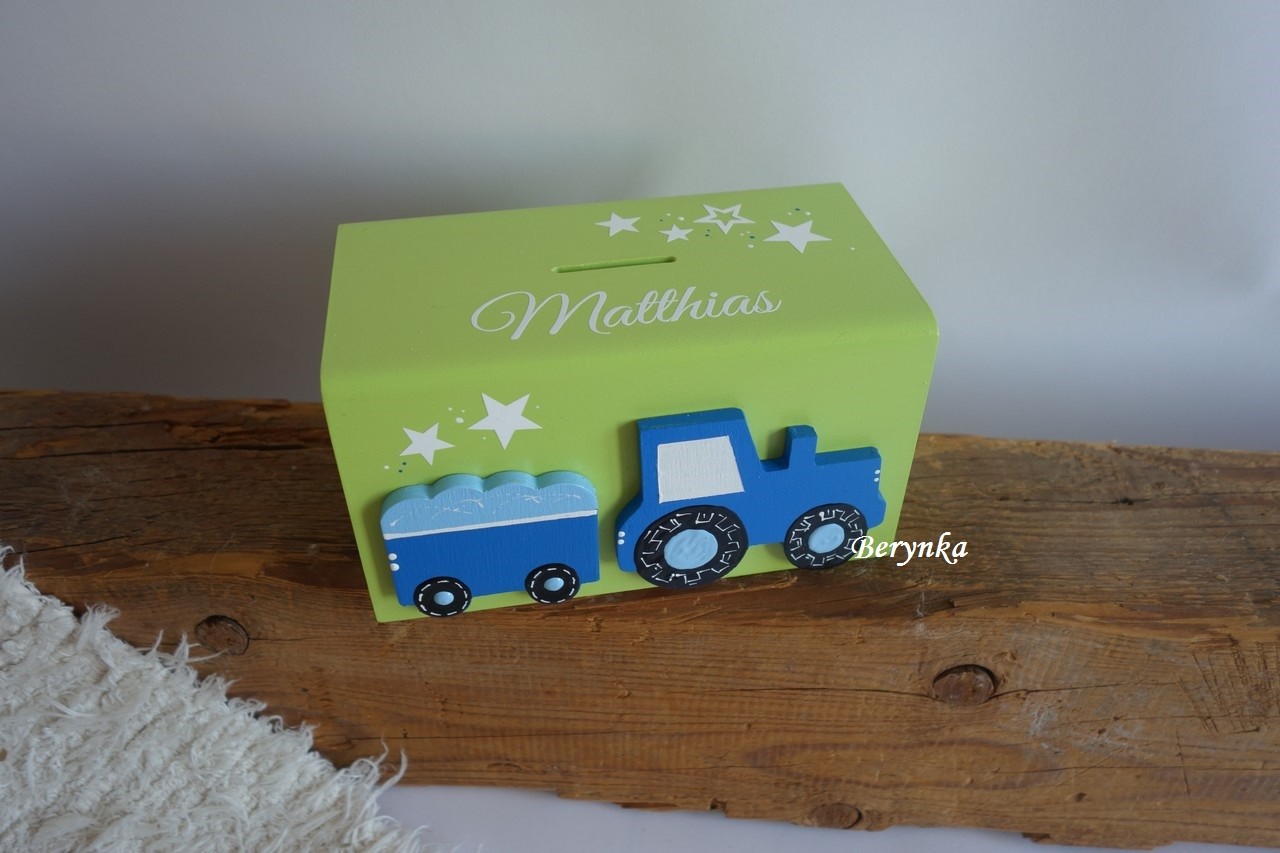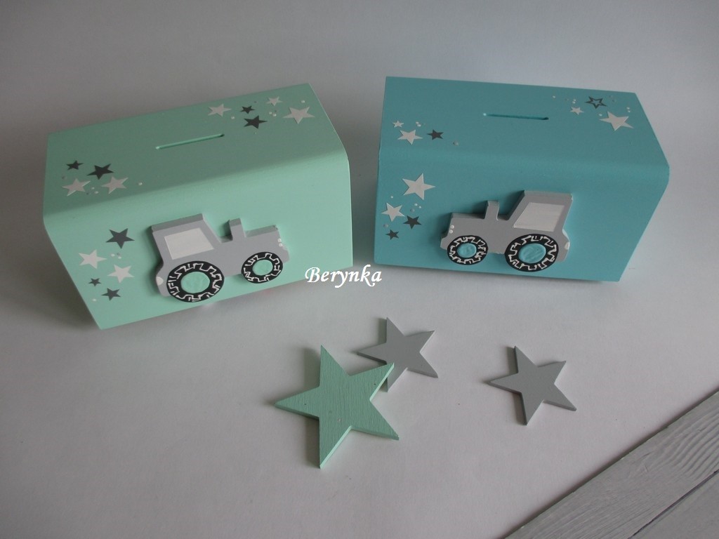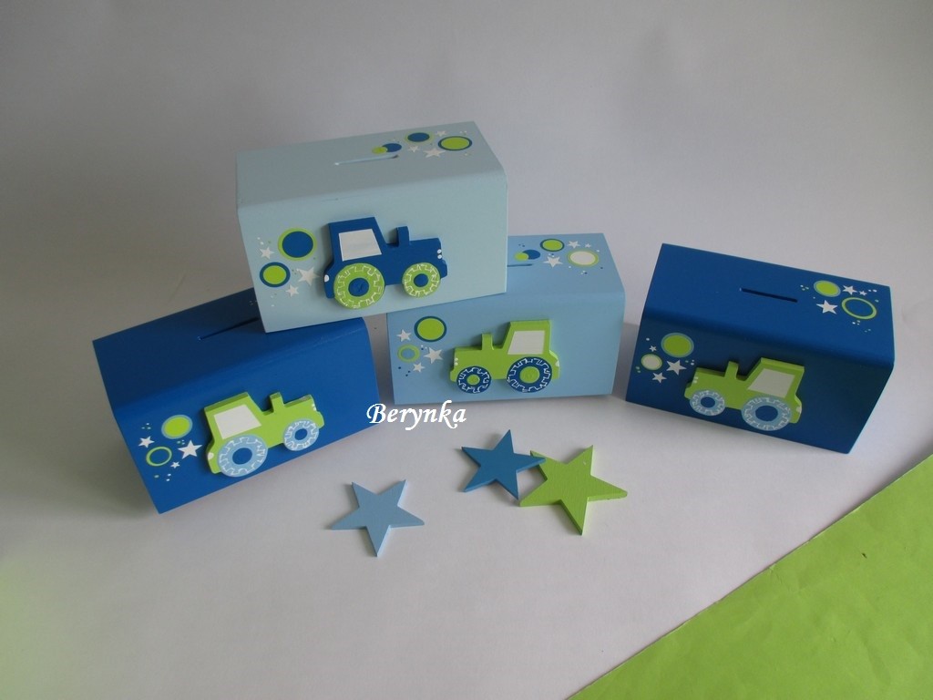 Dřevěná pokladnička s traktorem