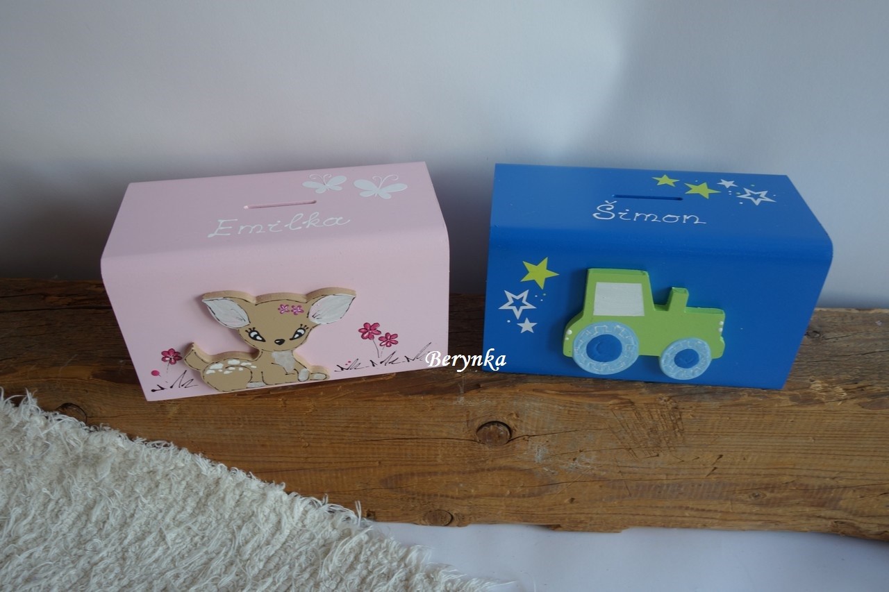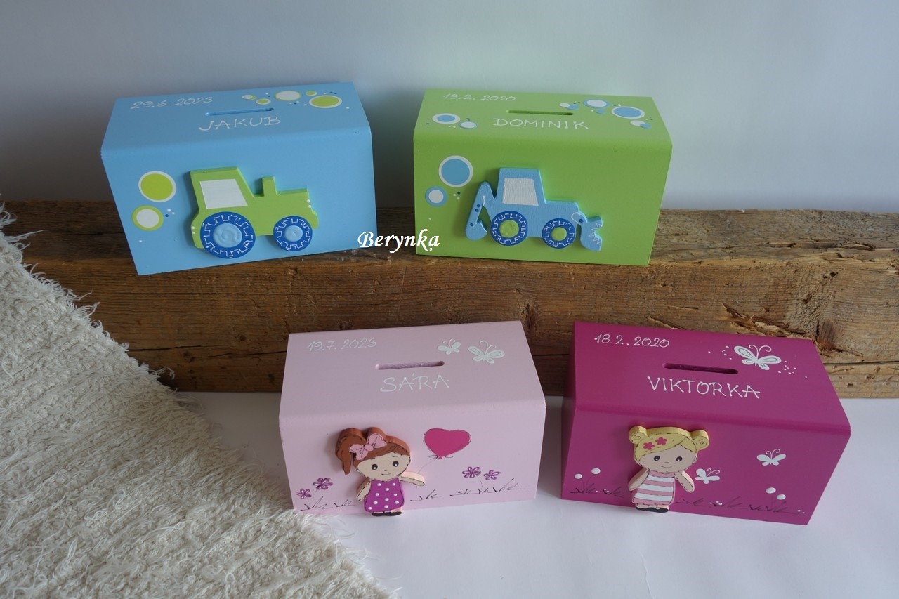 Dětská dřevěná kasička pro holky i kluky