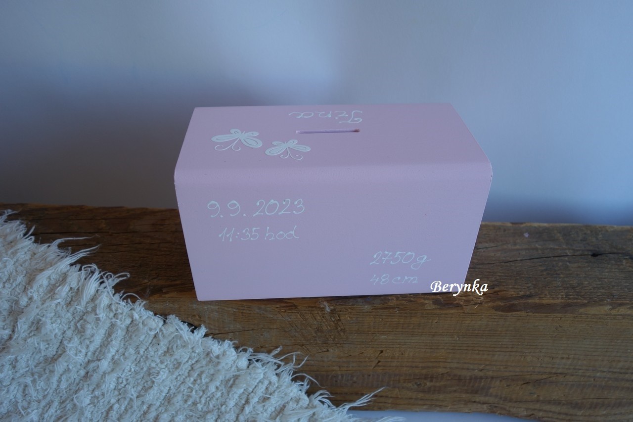 - pokladnička je ručně malovaná, zdobená a přelakovaná - je možné jí snadno otřít