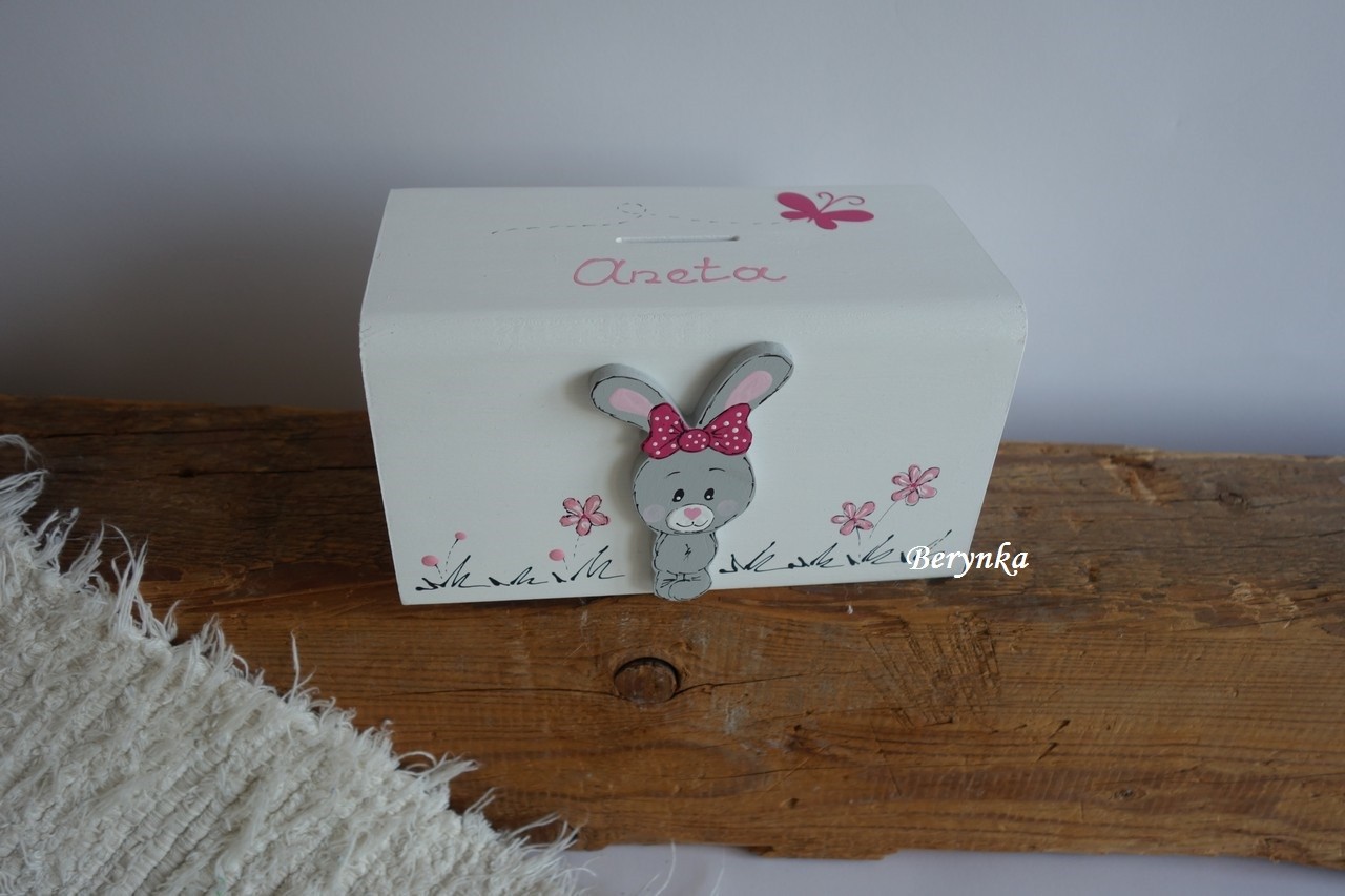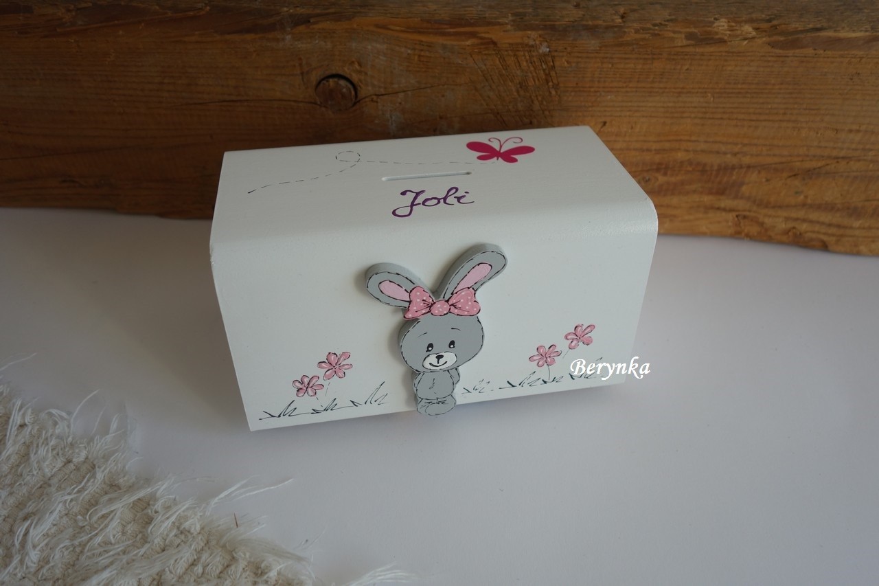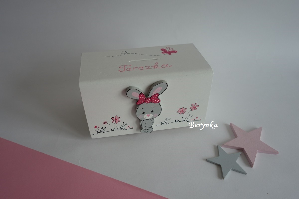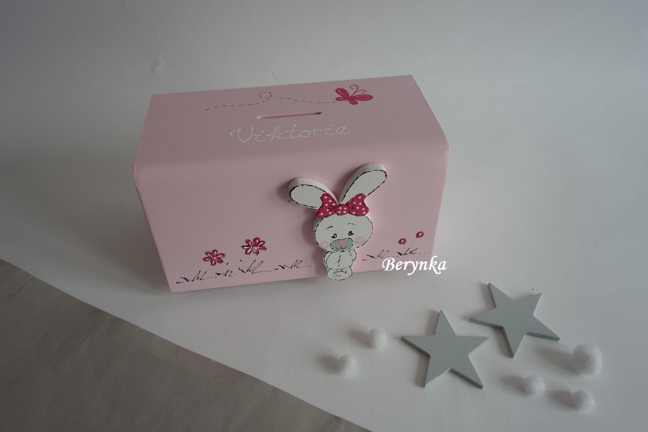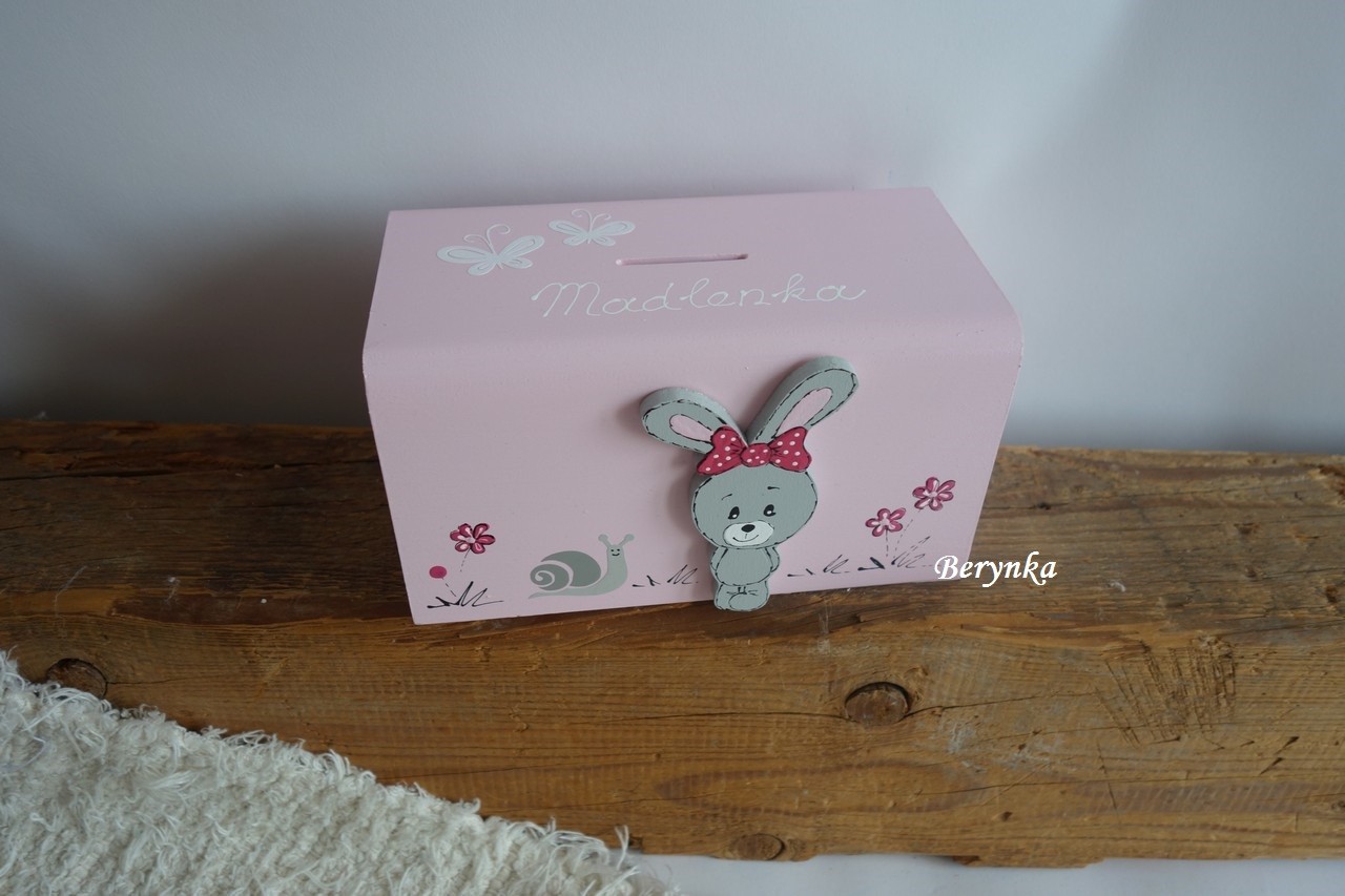 Dřevěná pokladnička se zajíčkem