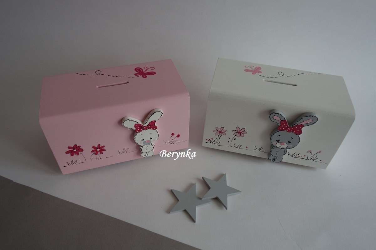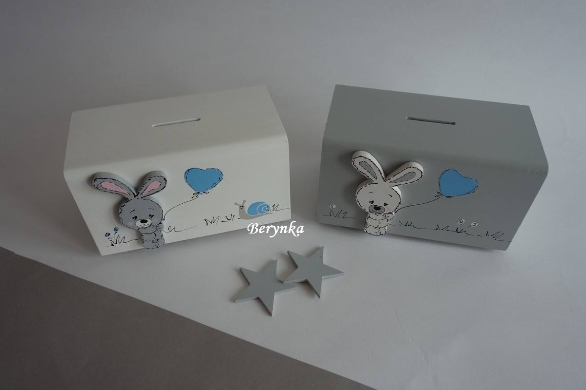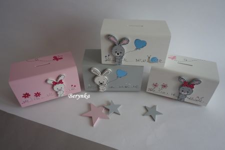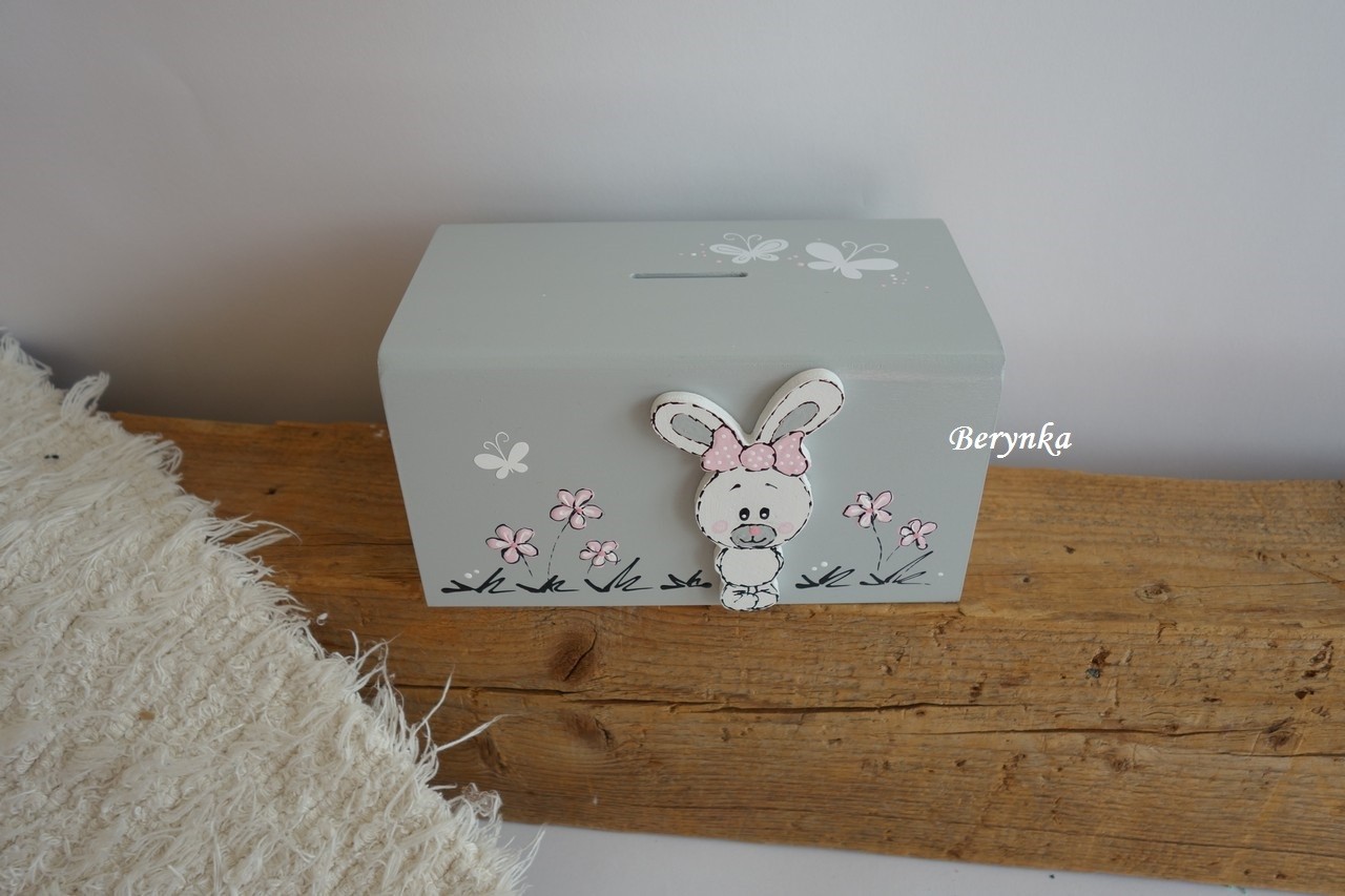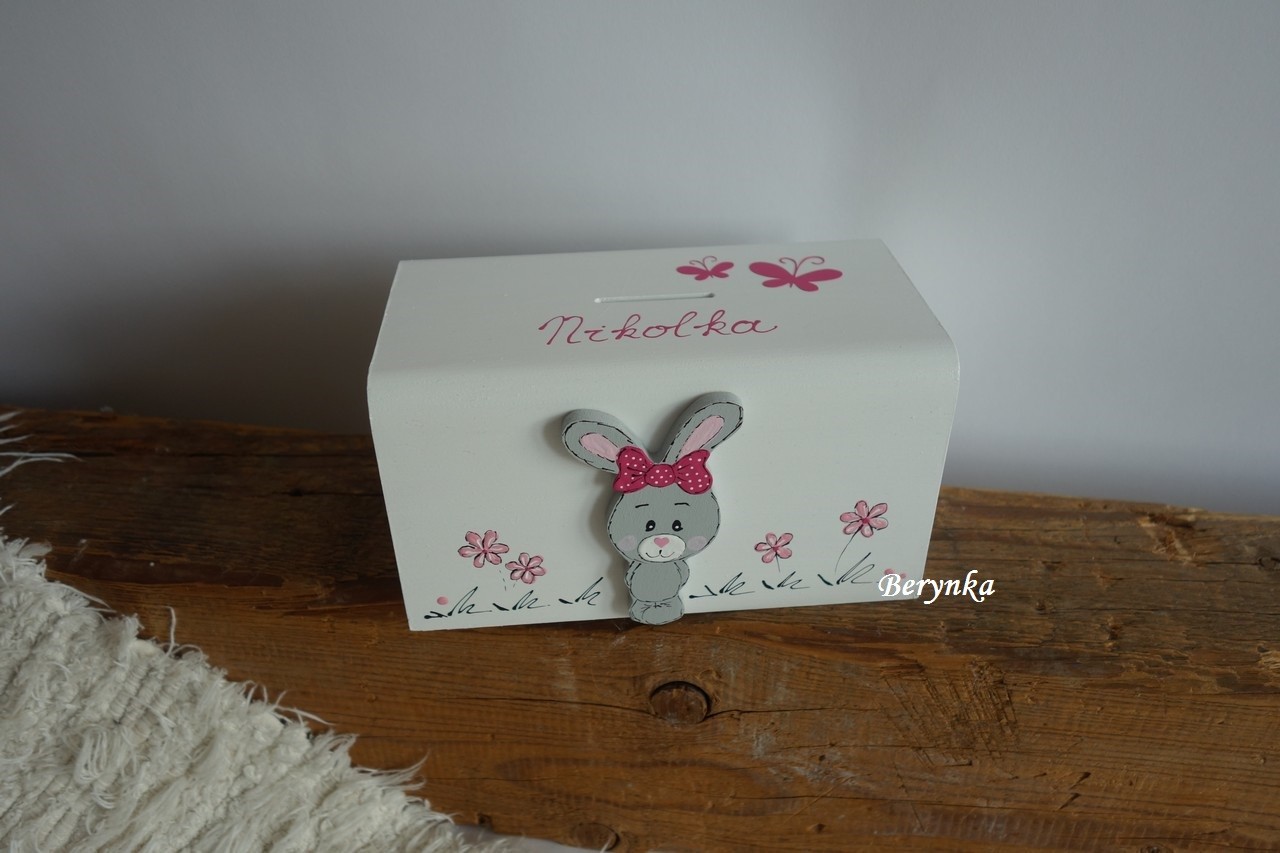 Dřevěná pokladnička se zajíčkem