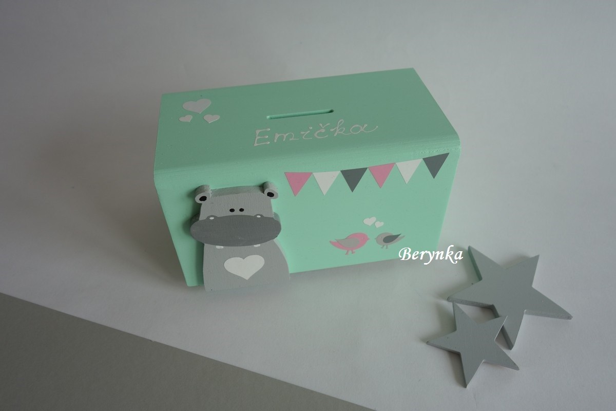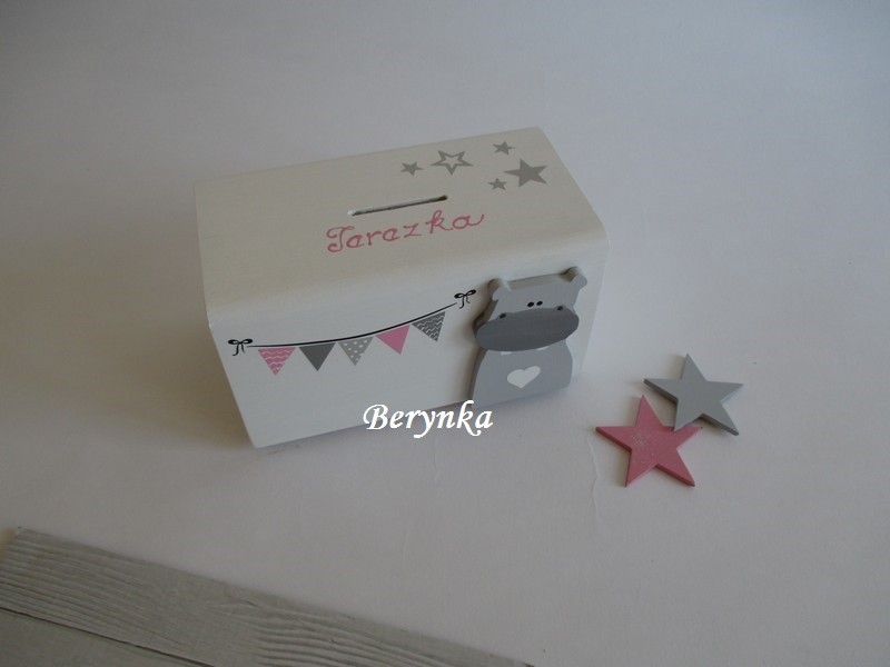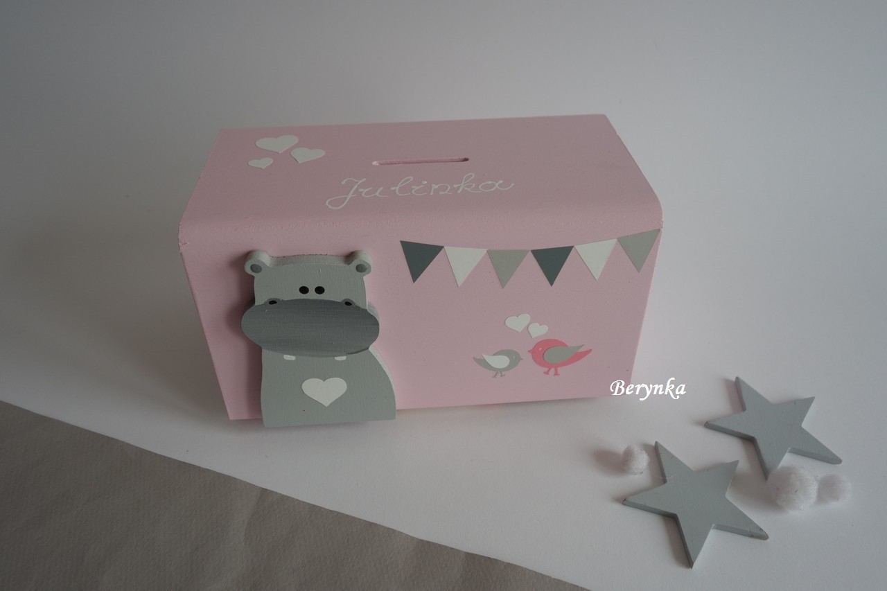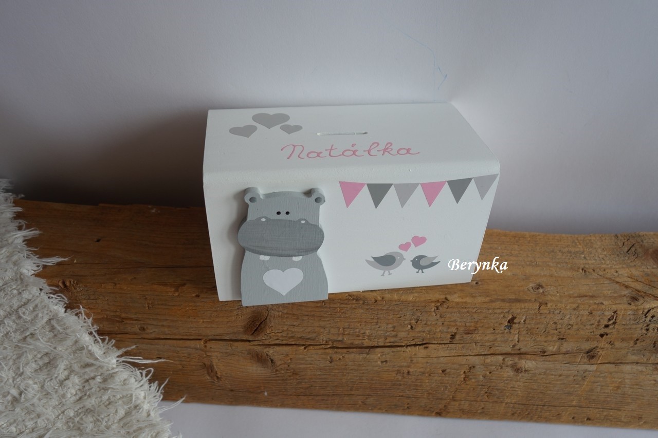Dřevěná pokladnička v nordic stylu - s hrochem