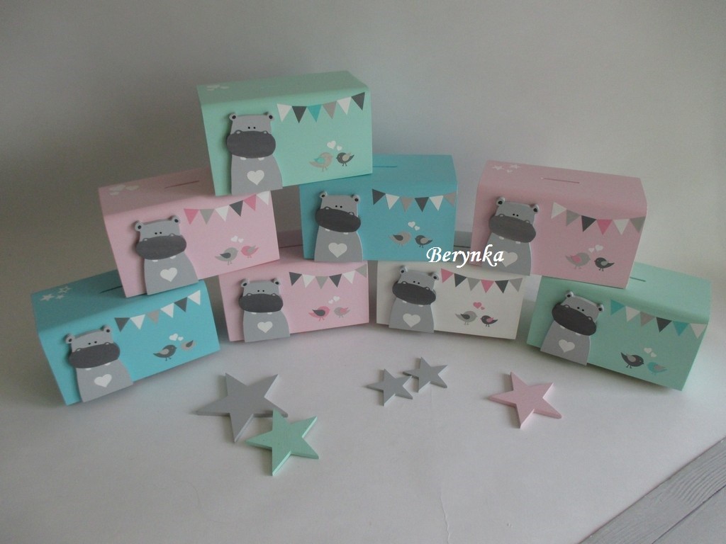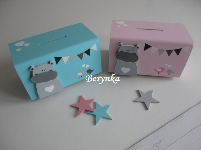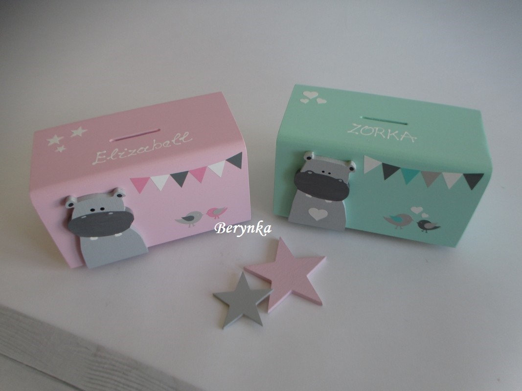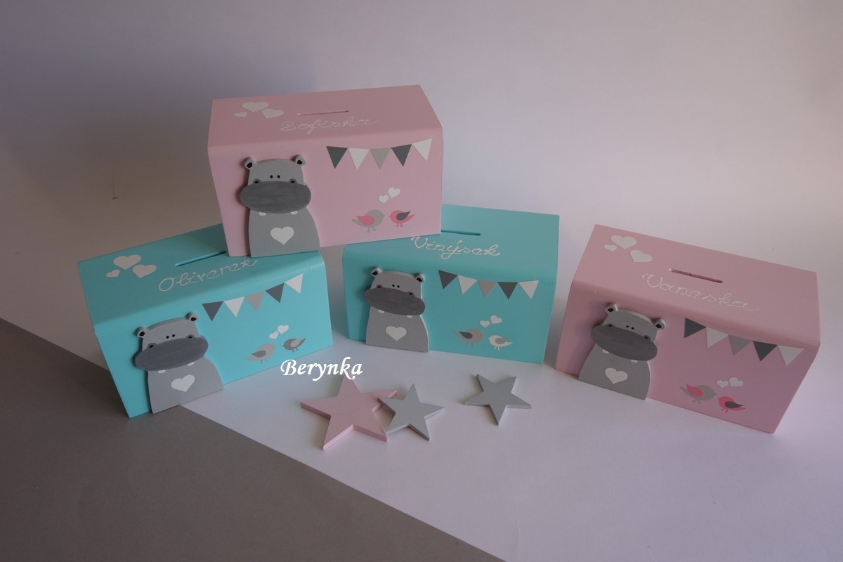 Dřevěná pokladnička v nordic stylu - s hrochem