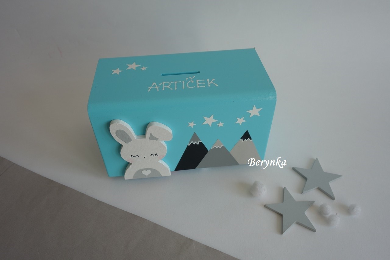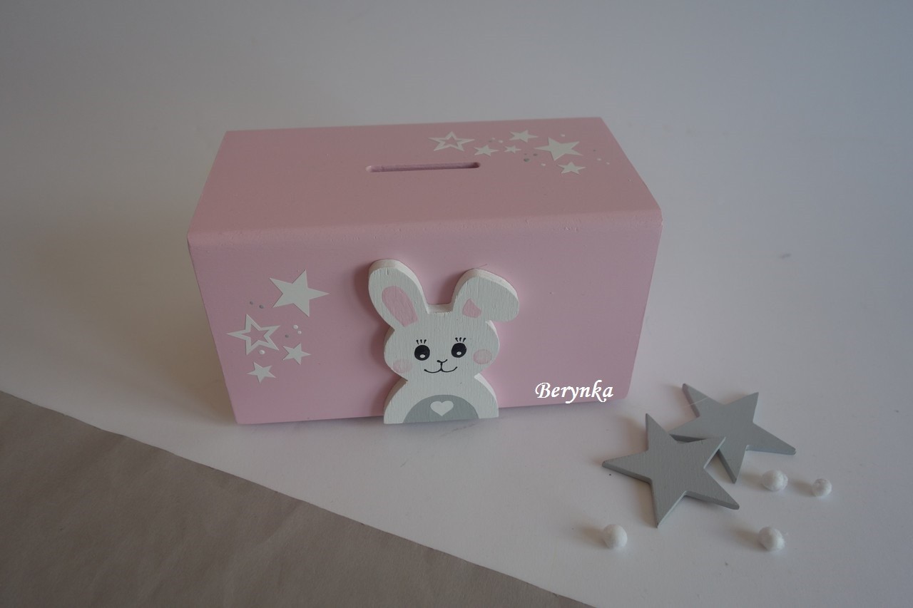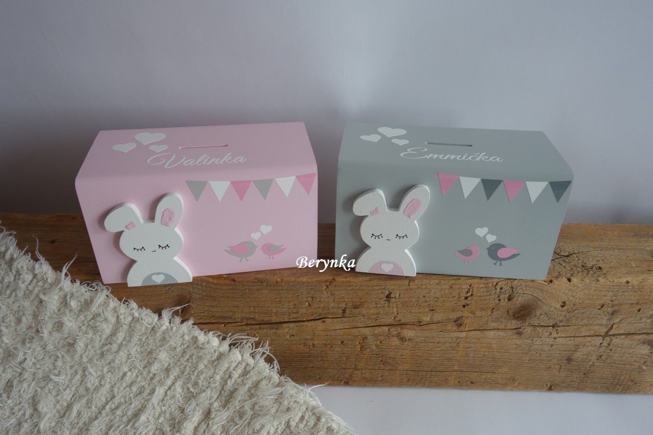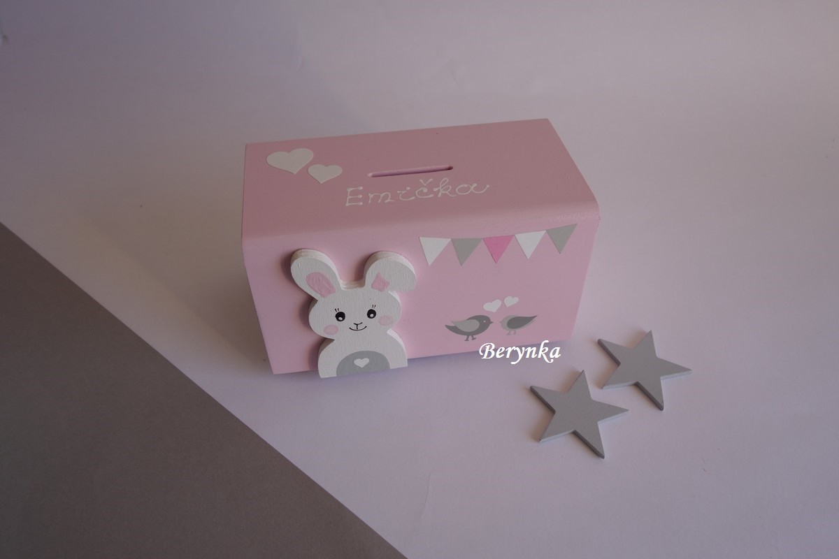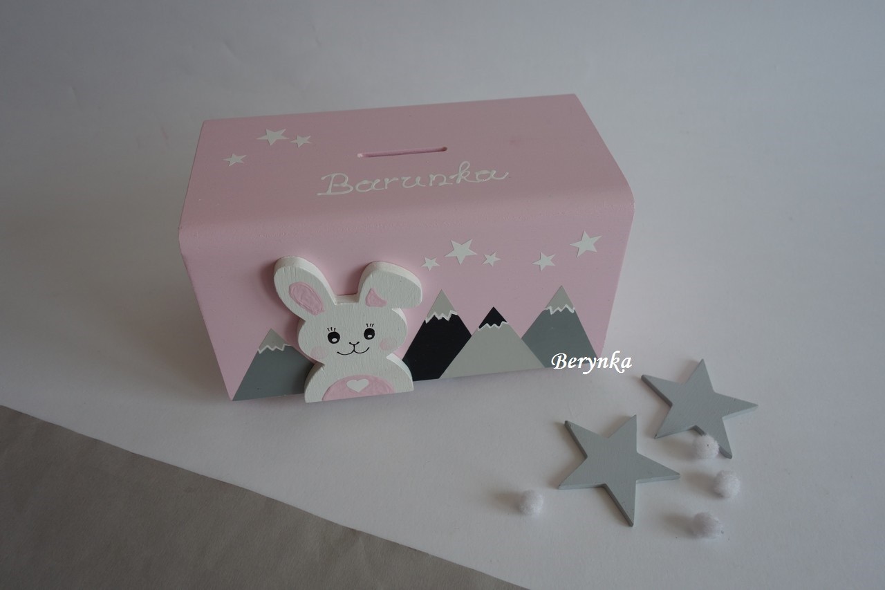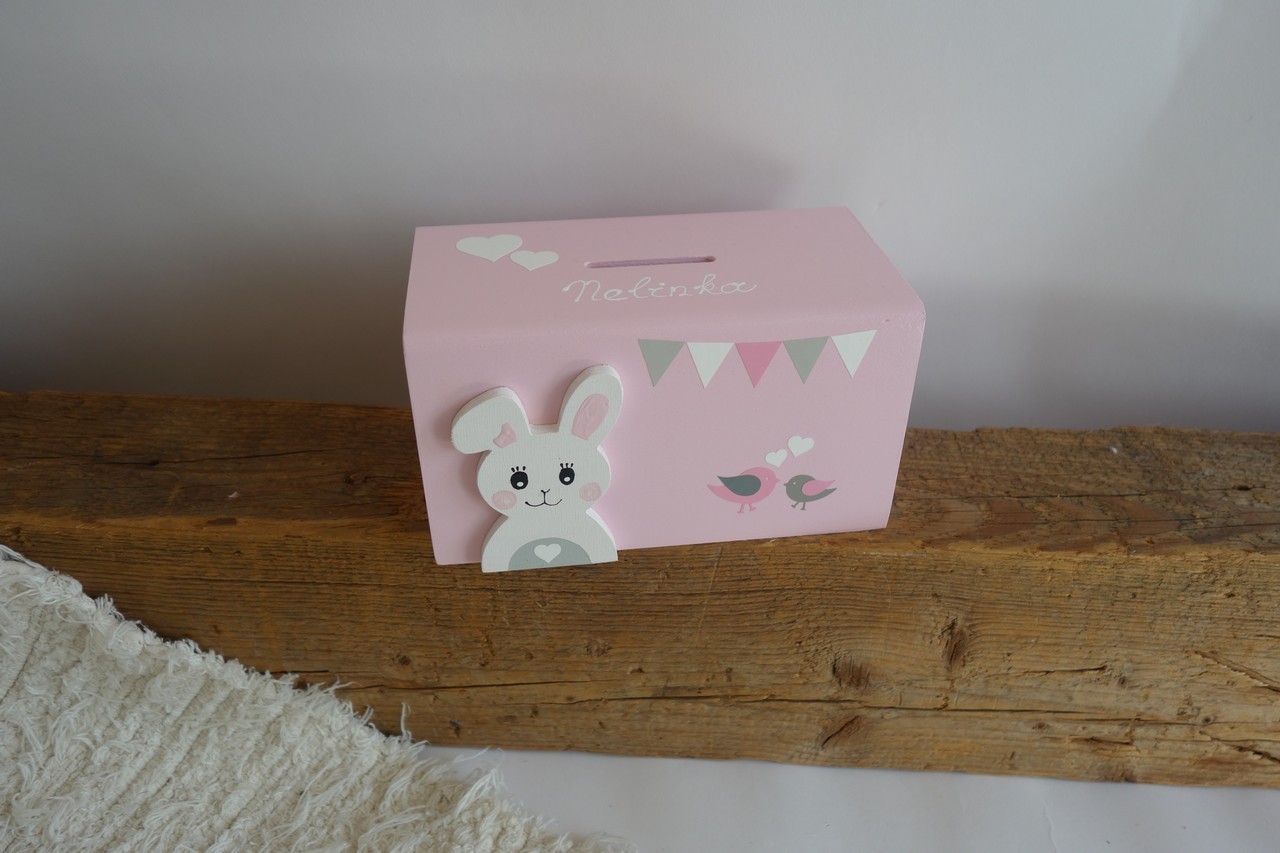 Dřevěná pokladnička v nordic stylu - se zajíčkem