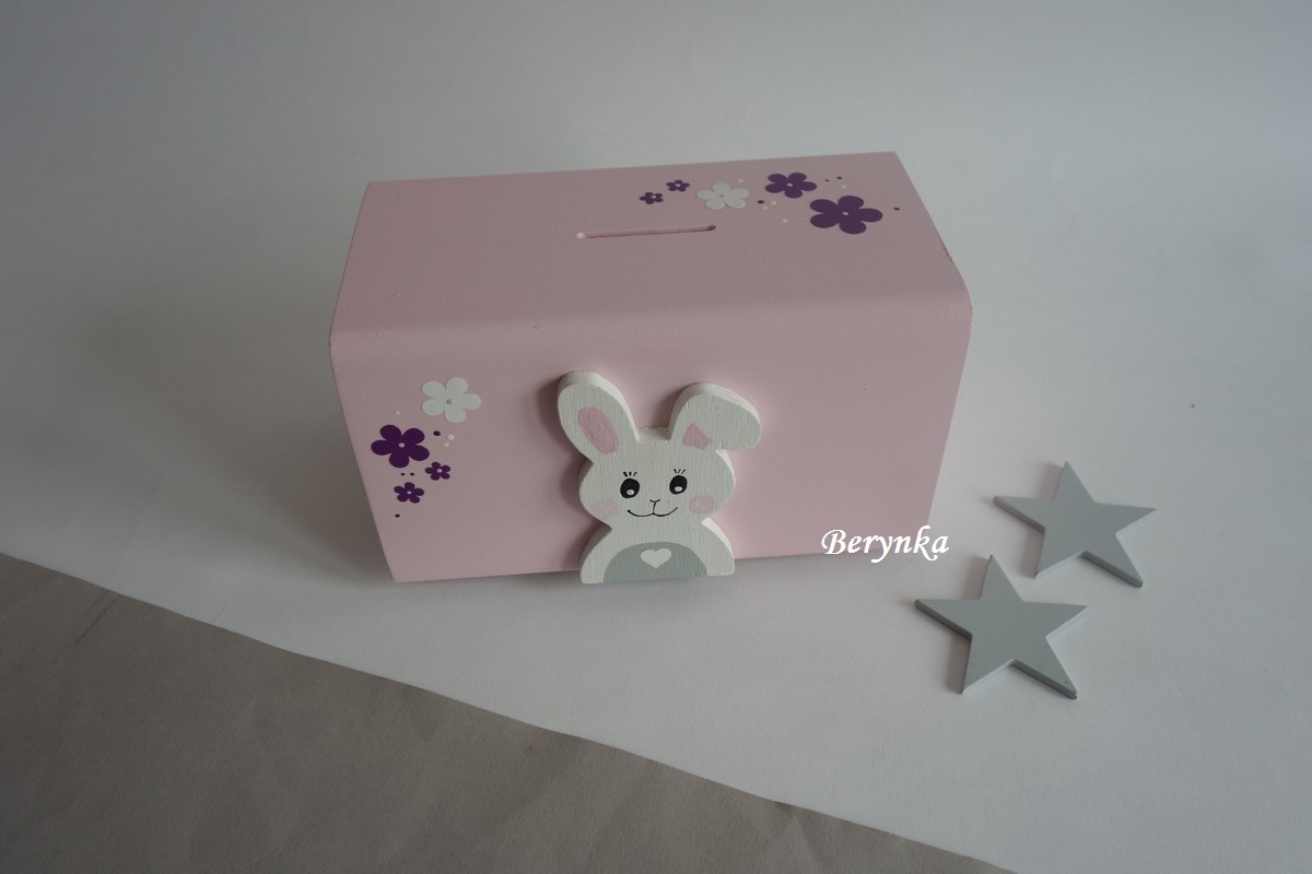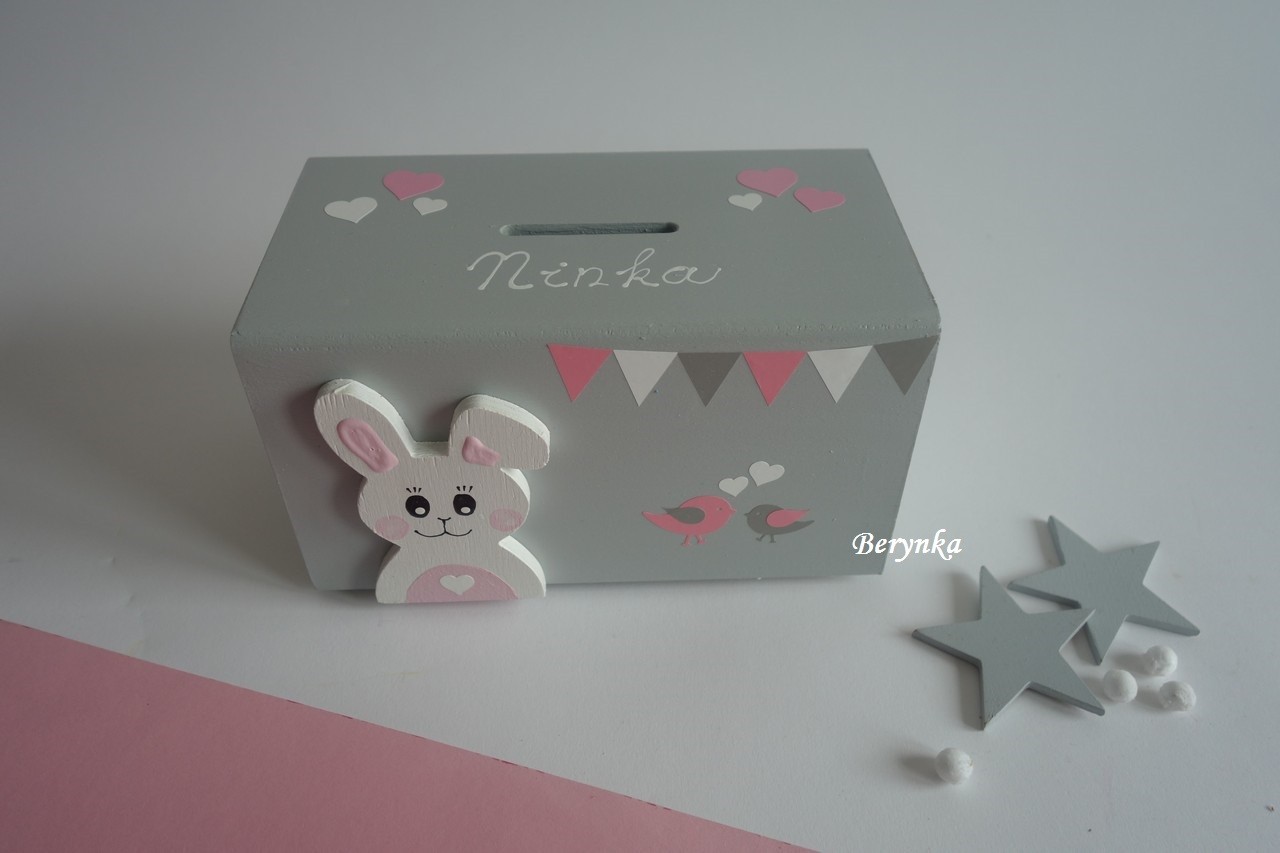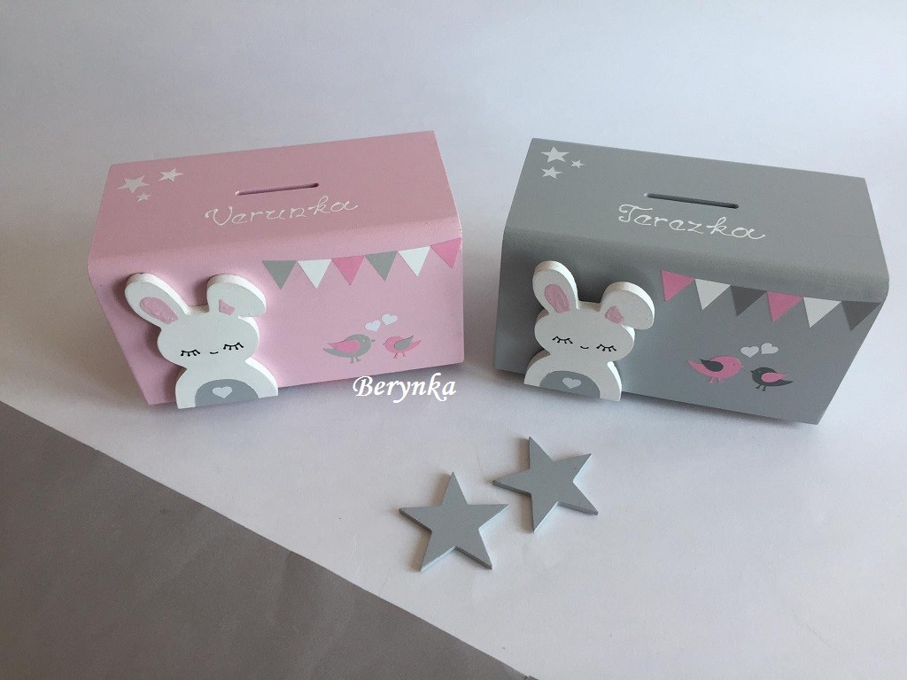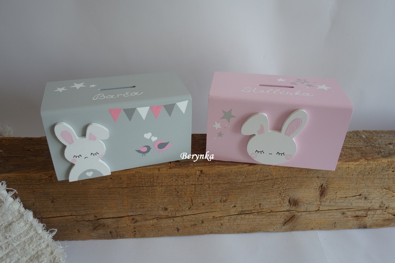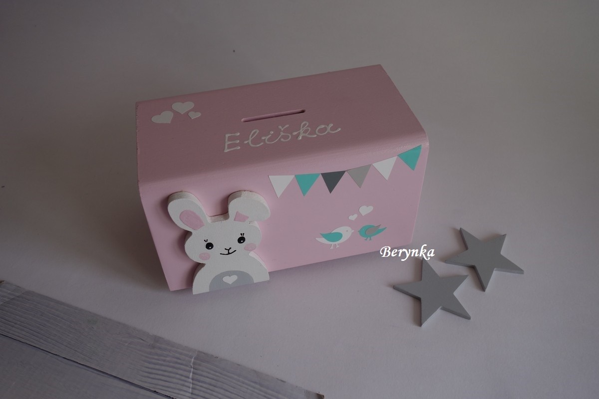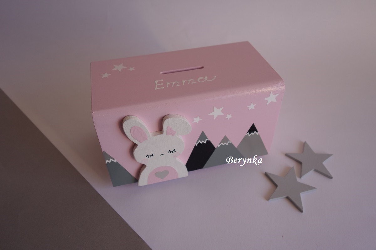 Dřevěná pokladnička v nordic stylu - se zajíčkem