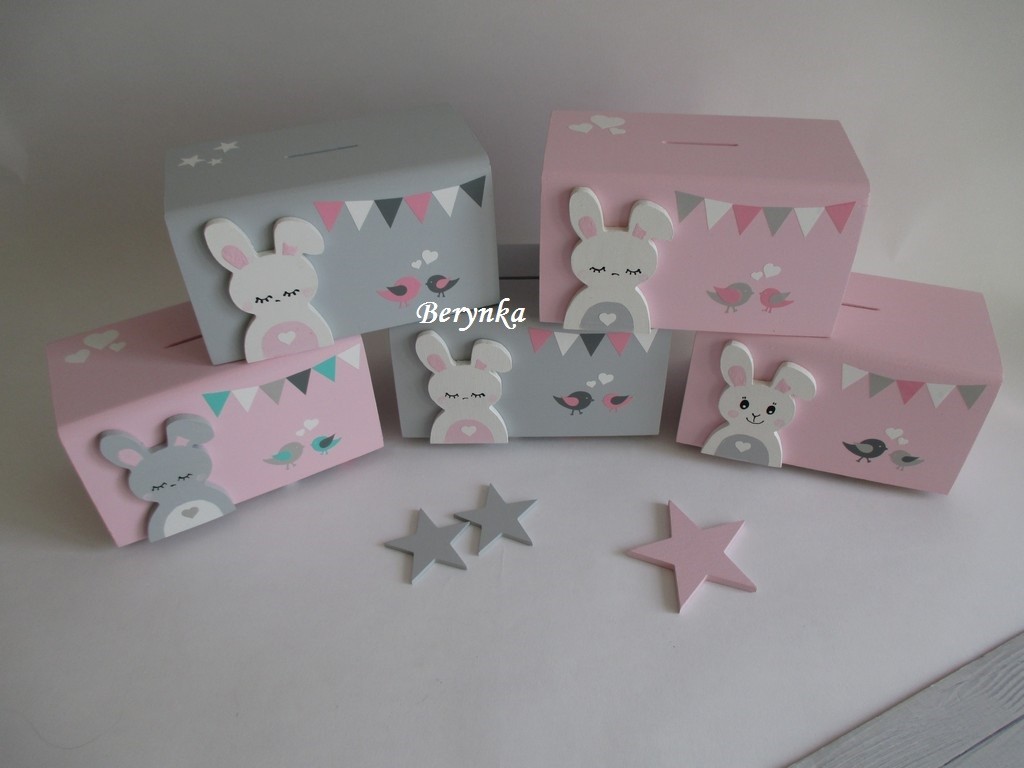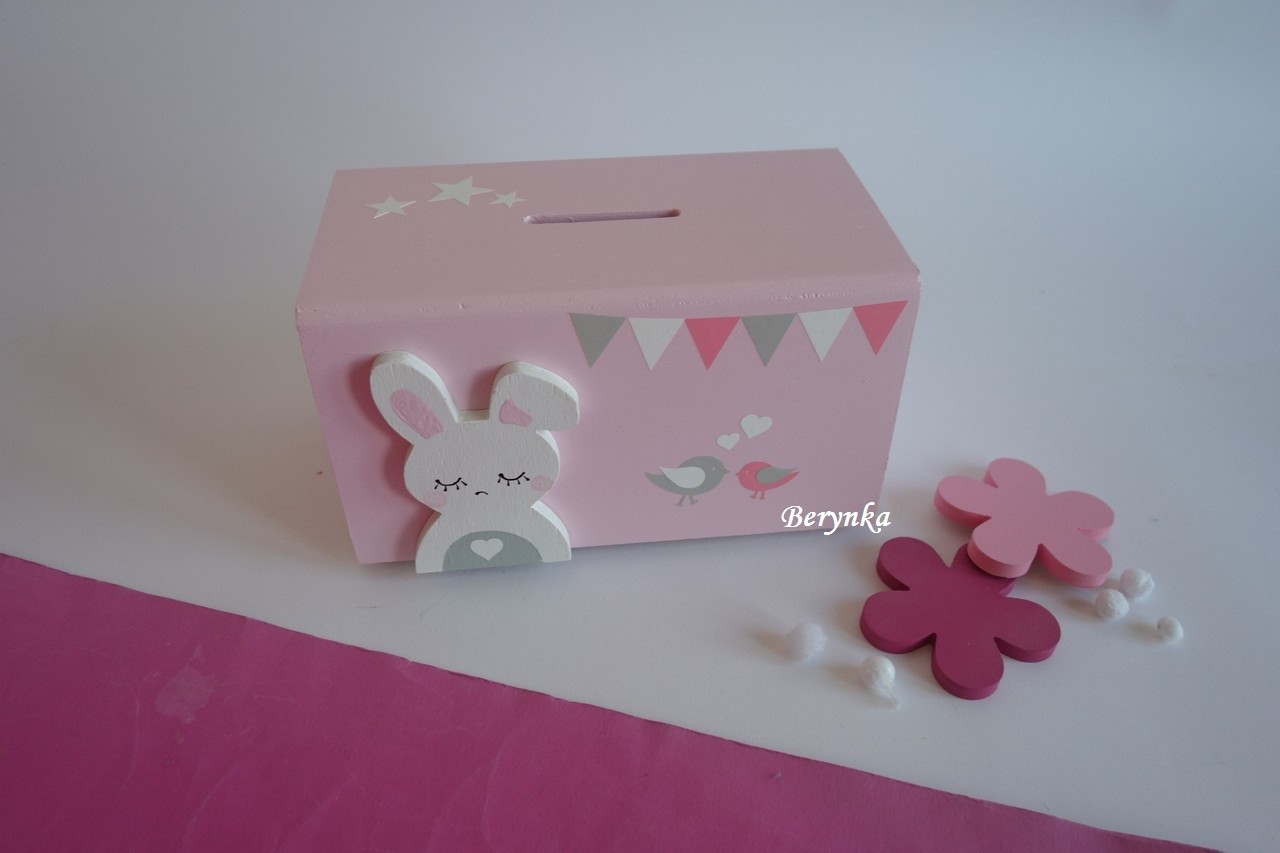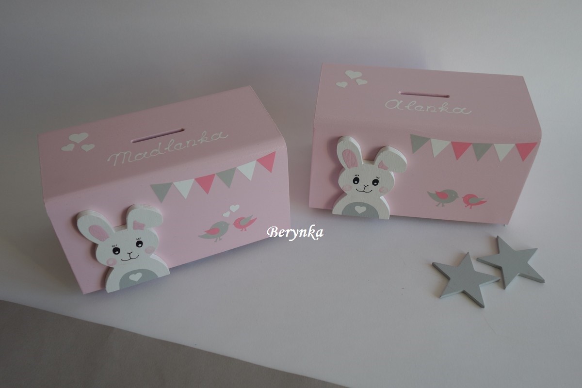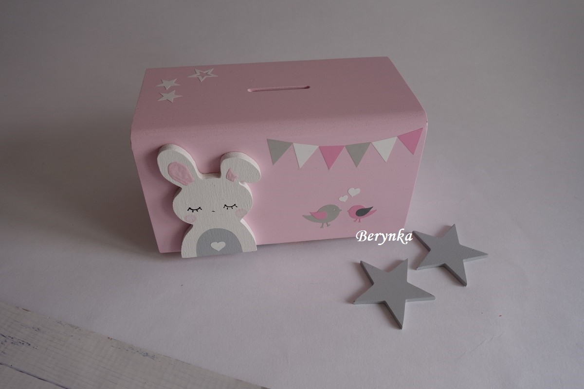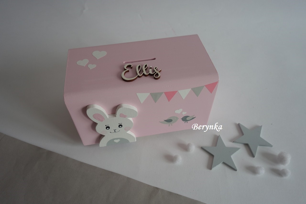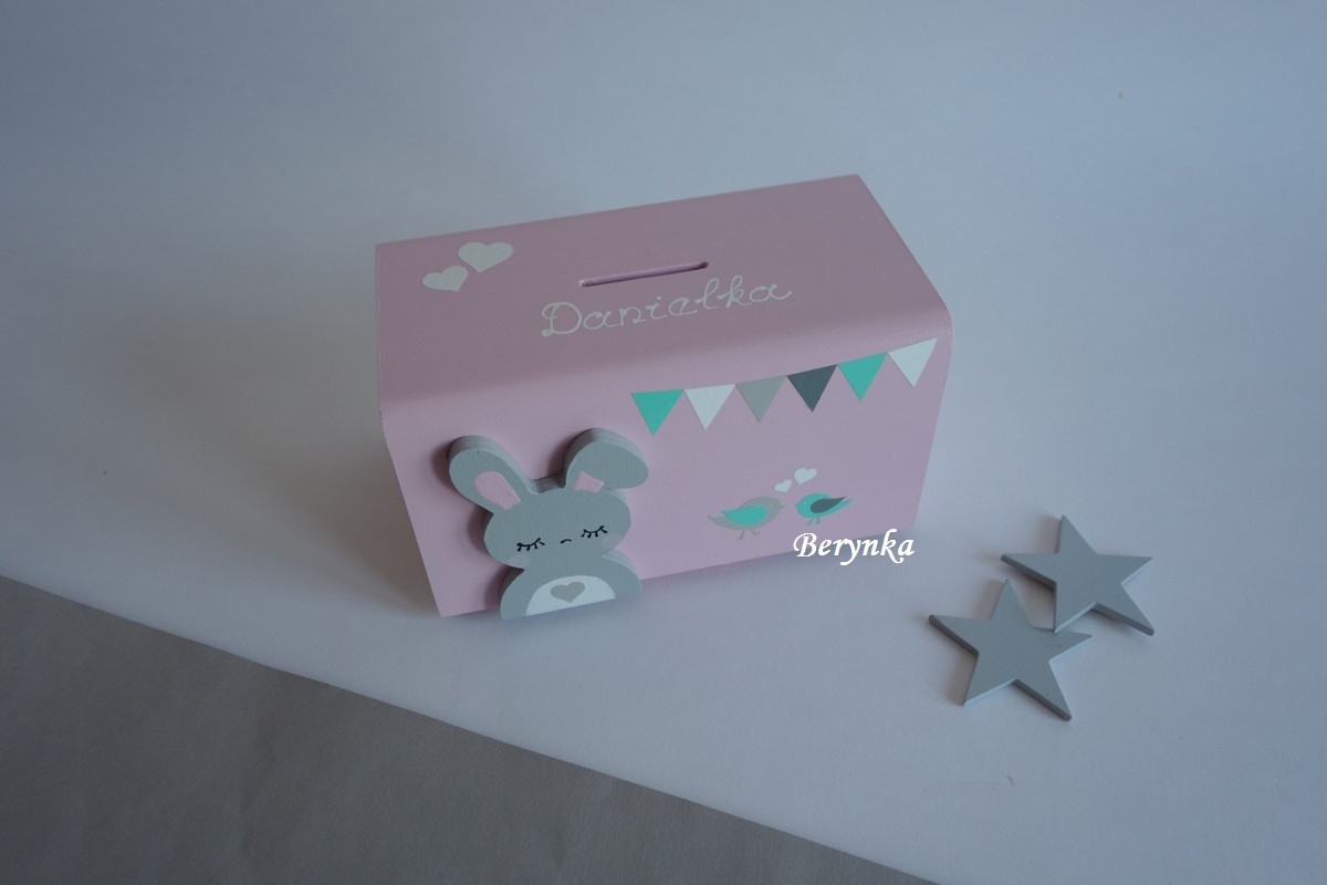 Dřevěná pokladnička v nordic stylu - se zajíčkem