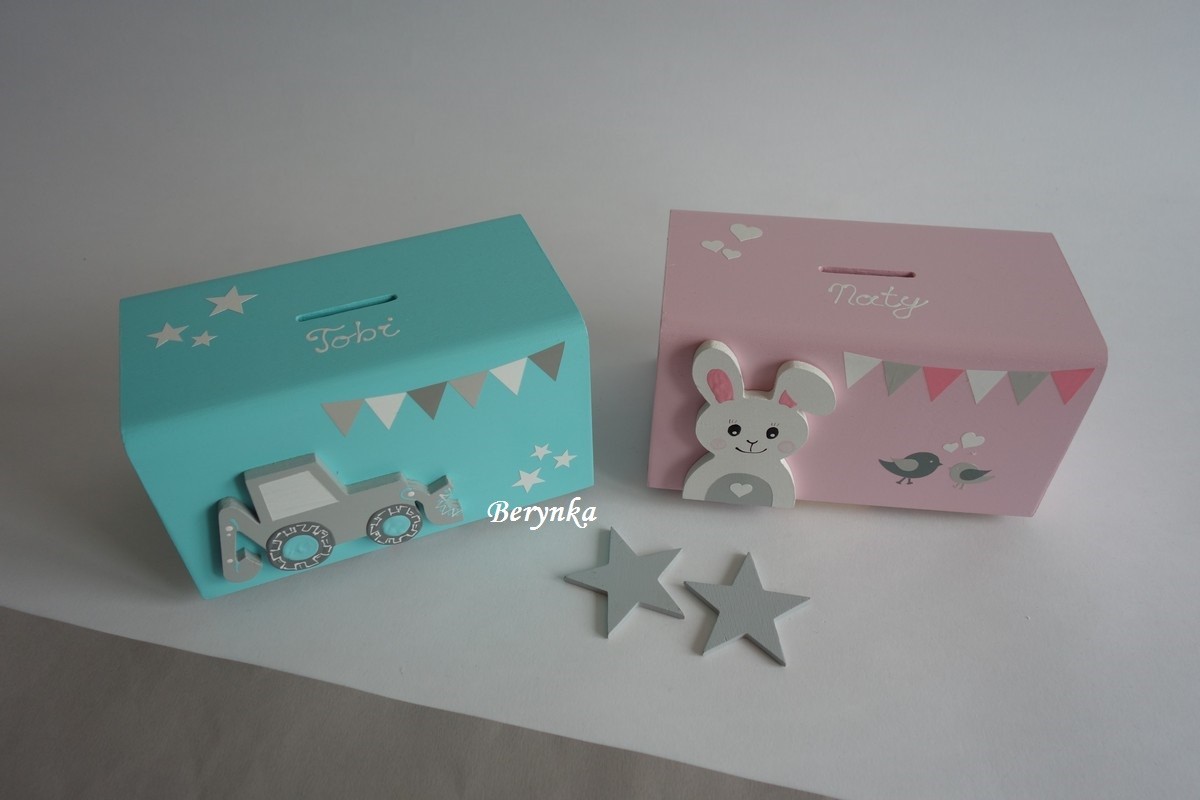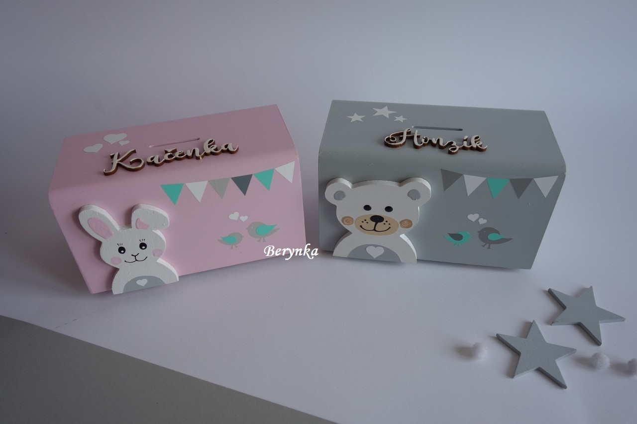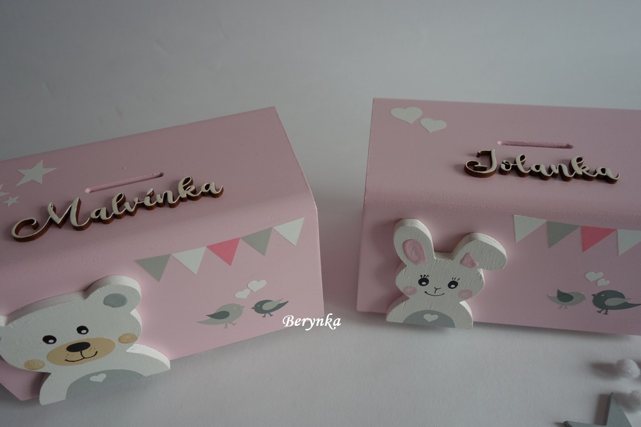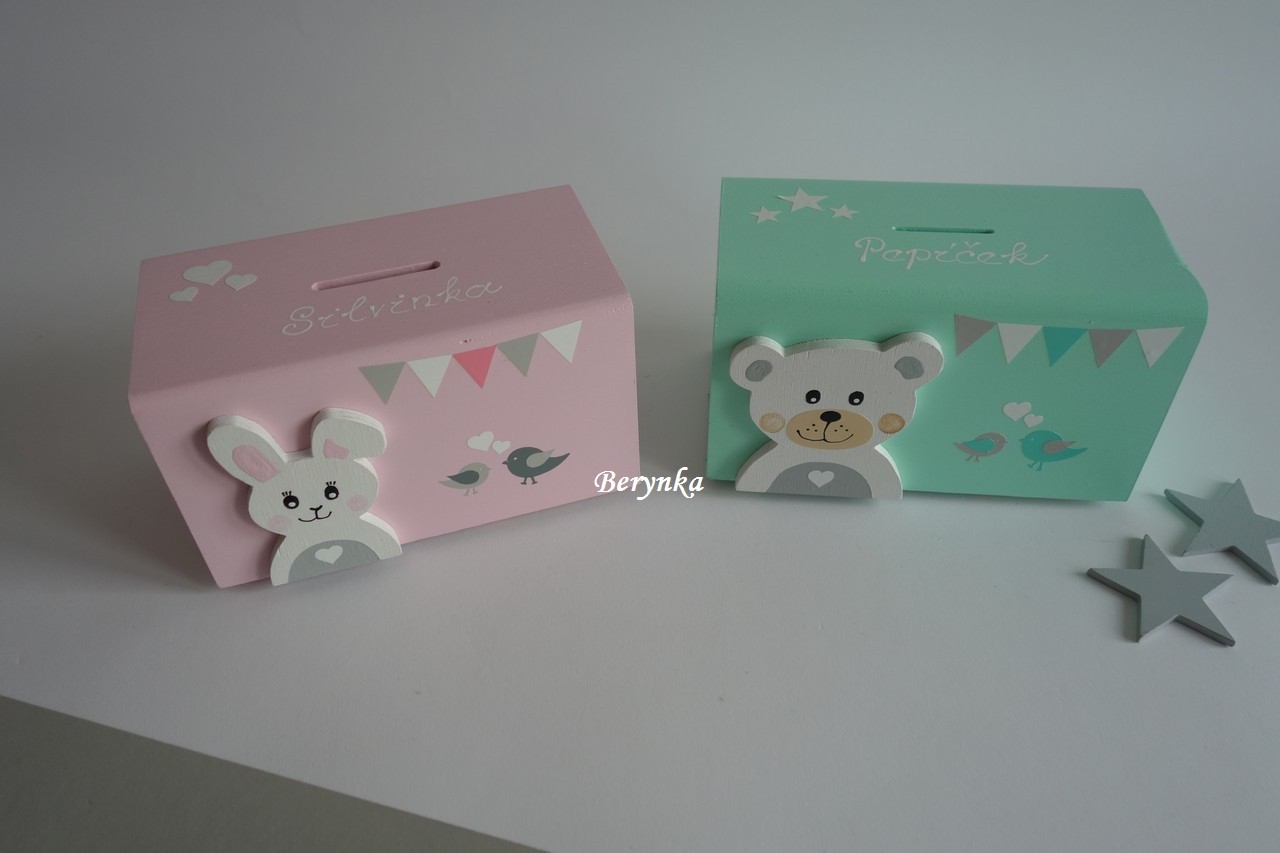 Dětská dřevěná kasička v nordic stylu pro kluky i holky
