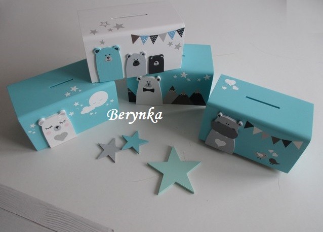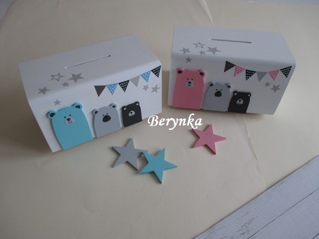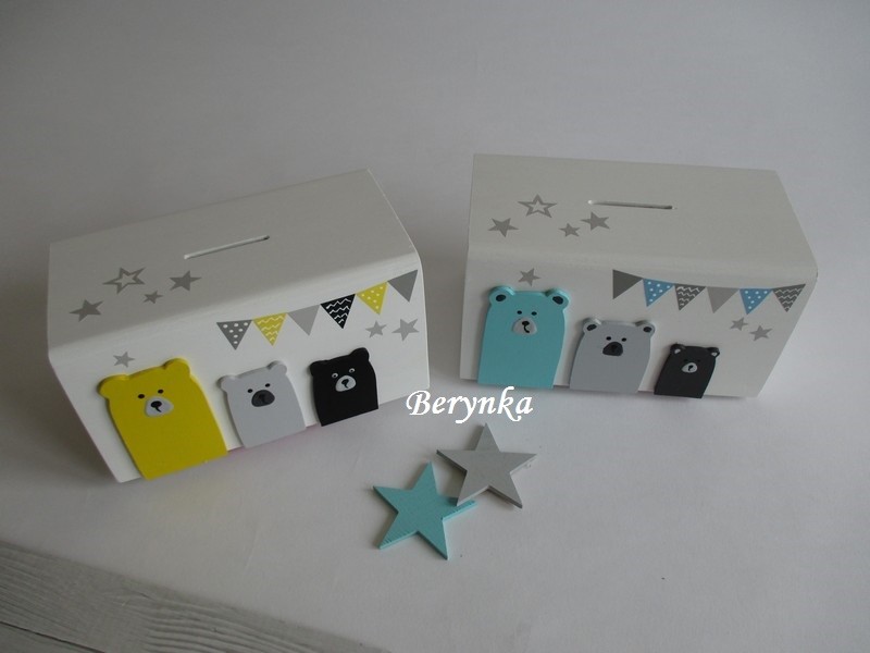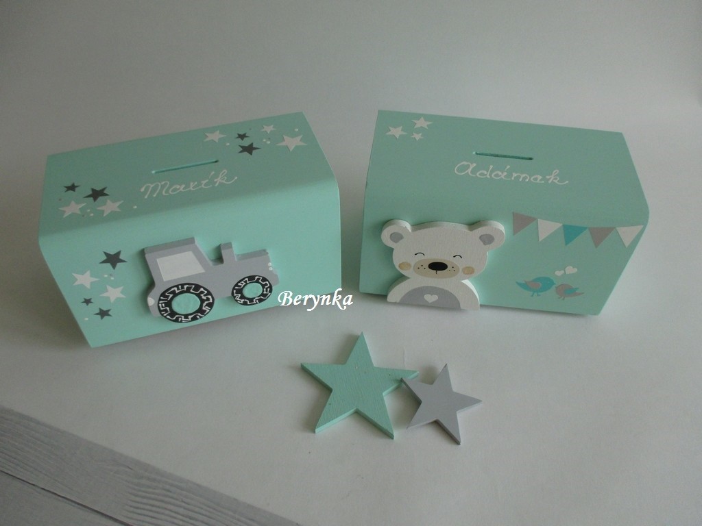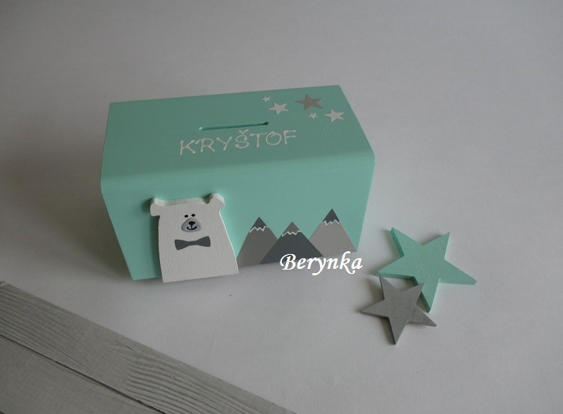 Dětská dřevěná kasička v nordic stylu pro kluky i holky