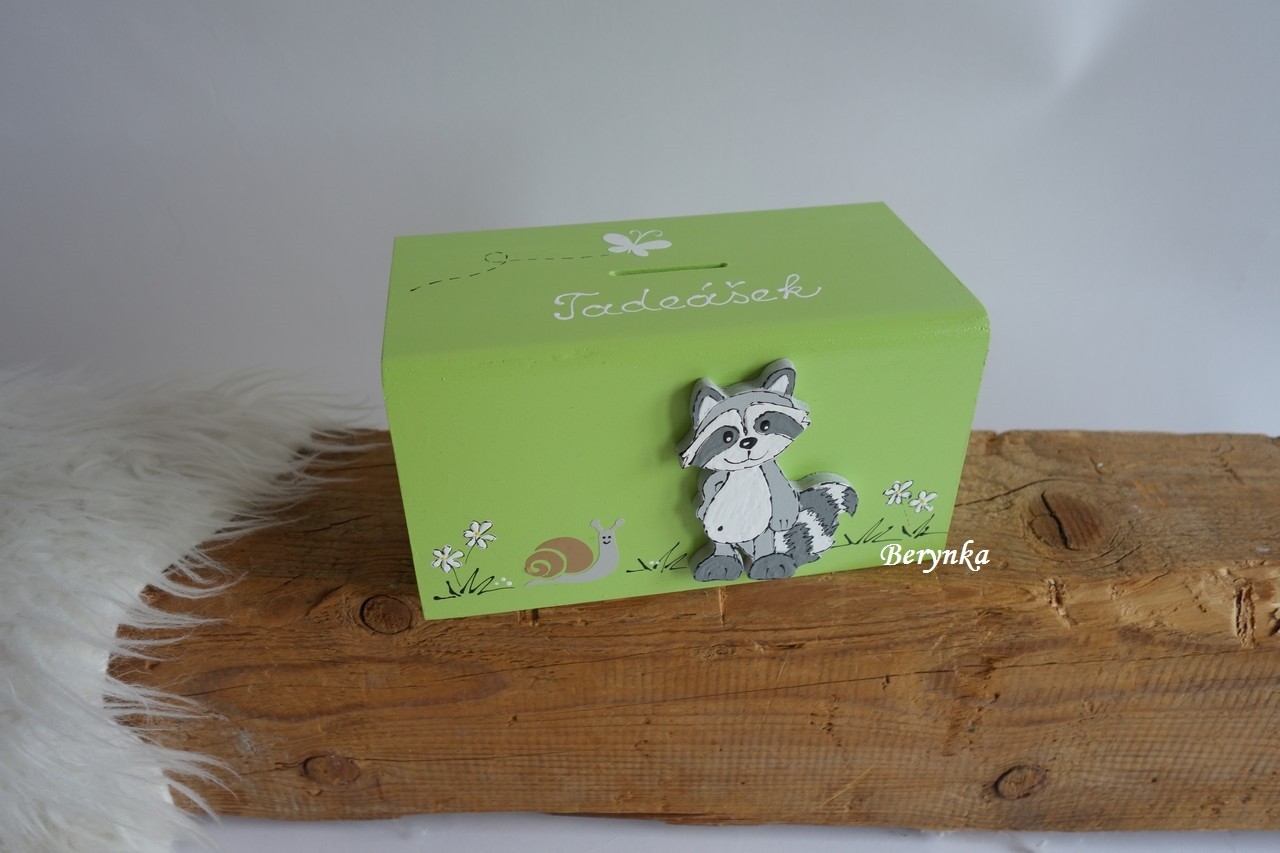 - pokladnička je ručně malovaná, zdobená a přelakovaná - je možné jí snadno otřít