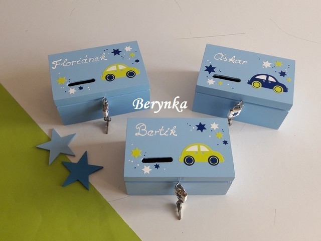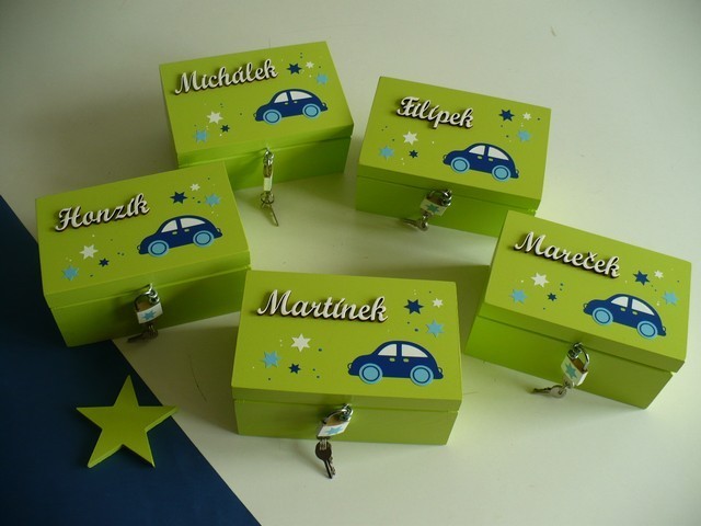 Je možné udělat i jiné provedení pokladničky a doplnit další dekorace do sady pro holky i kluky.