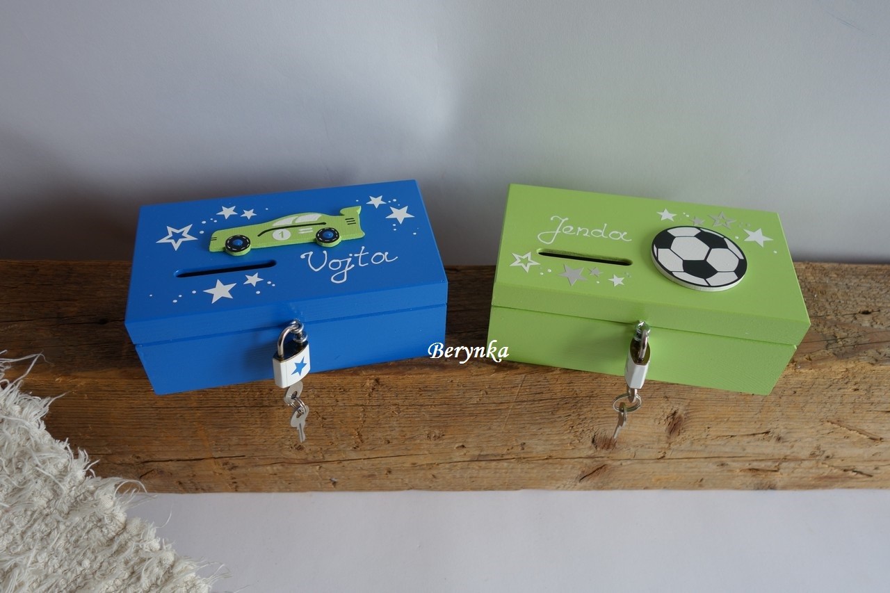 Je možné udělat i jiné provedení pokladničky a doplnit další dekorace do sady pro holky i kluky.