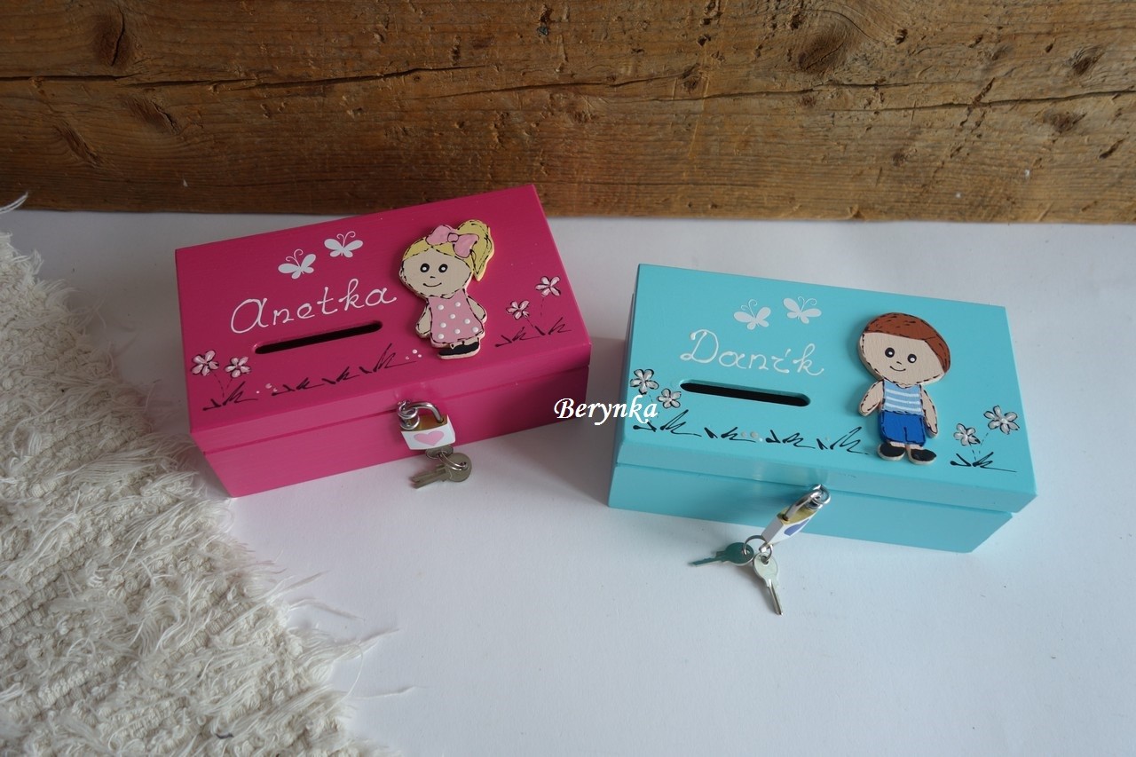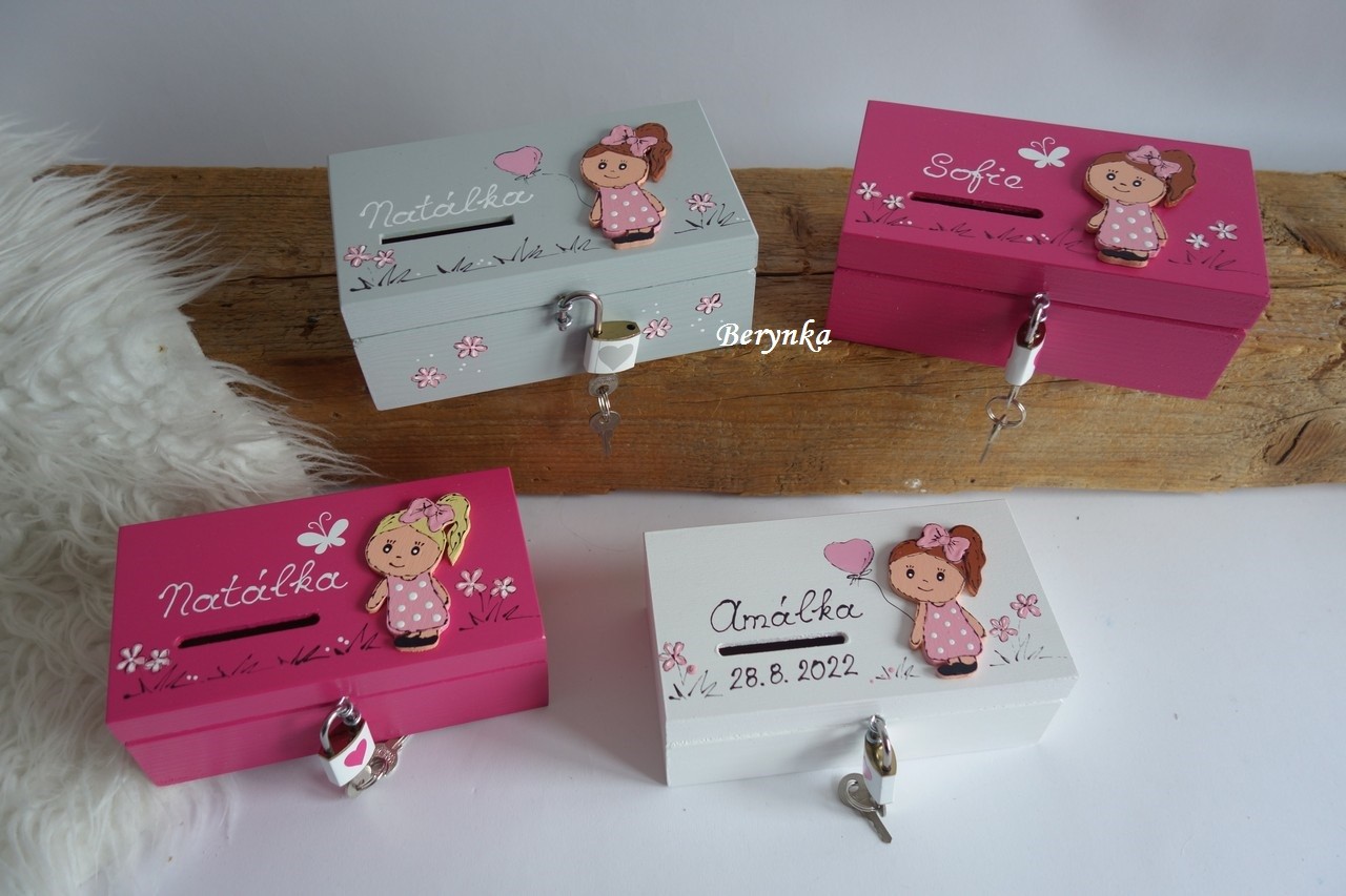 Je možné udělat i jiné provedení pokladničky a doplnit další dekorace do sady pro holky i kluky.