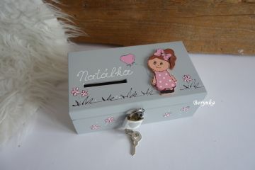 - pokladnička je ručně malovaná, zdobená a přelakovaná - je možné jí snadno otřít