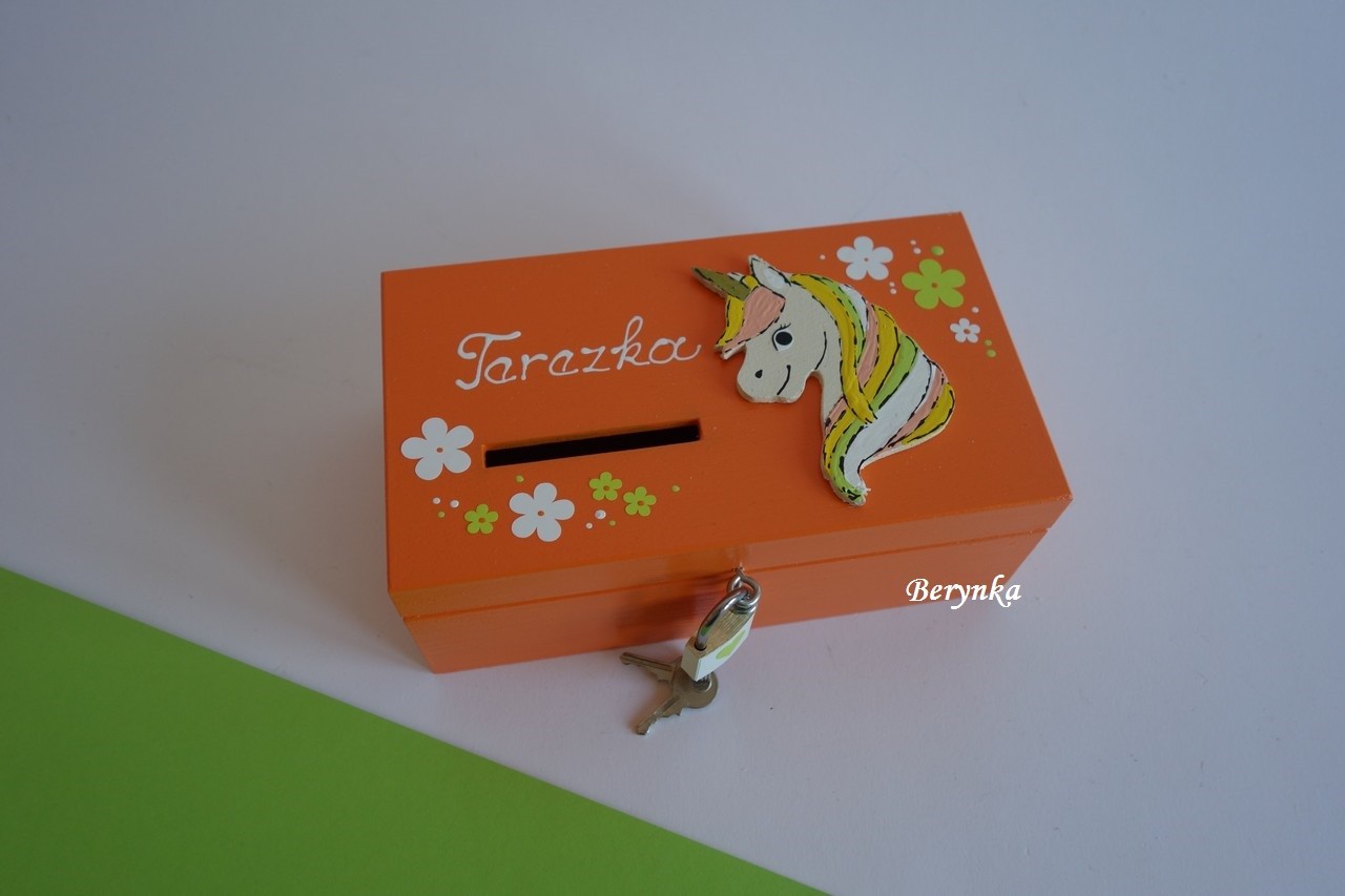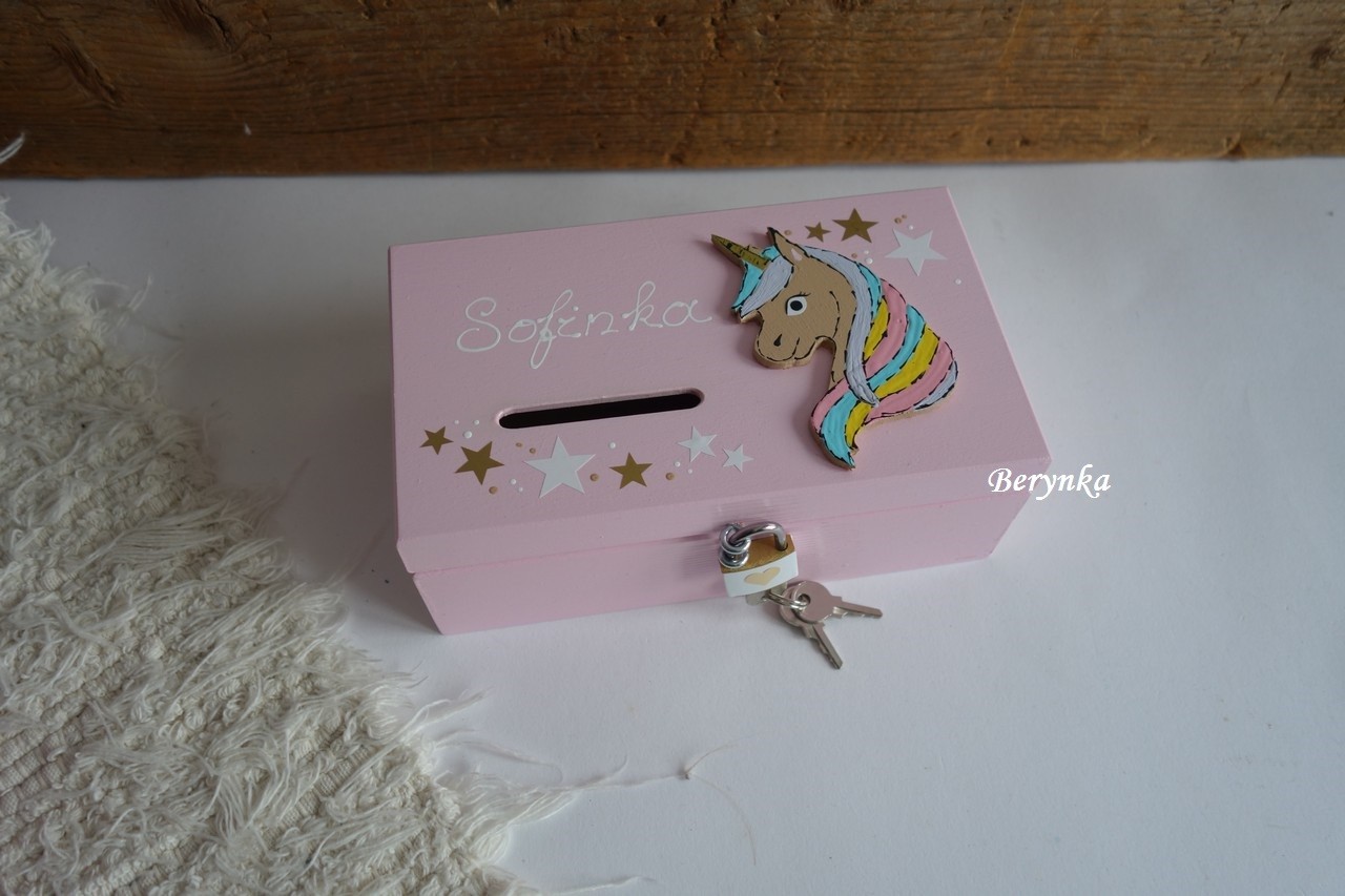 - pokladnička je ručně malovaná, zdobená a přelakovaná - je možné jí snadno otřít
