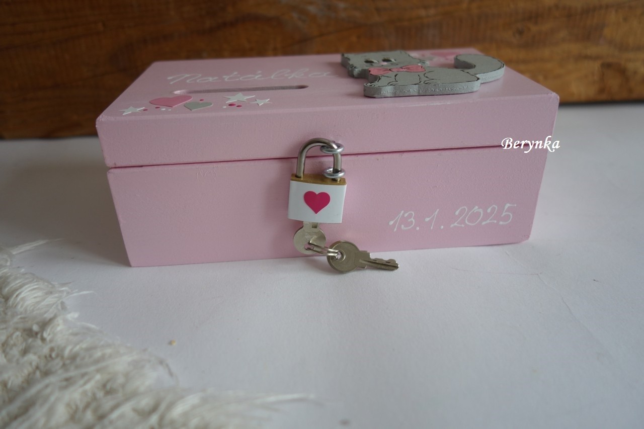 Dětská dřevěná kasička se zámečkem