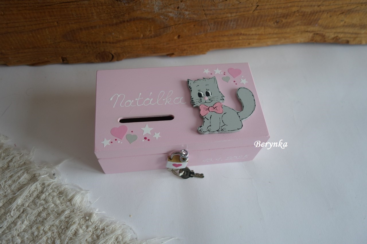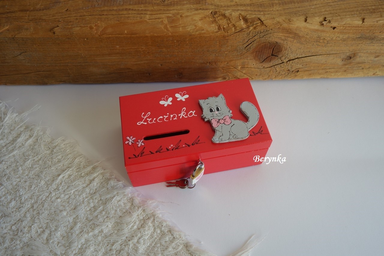 Dřevěná pokladnička s kočičkou