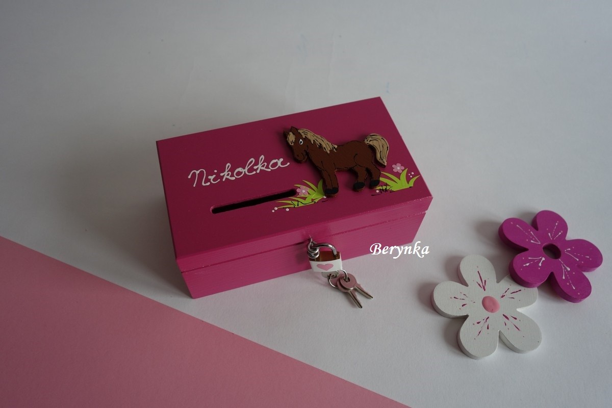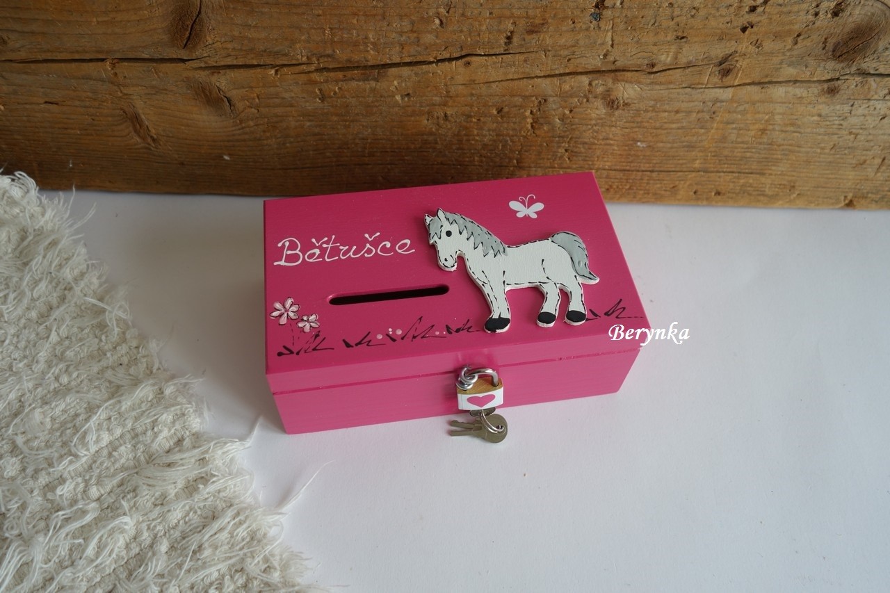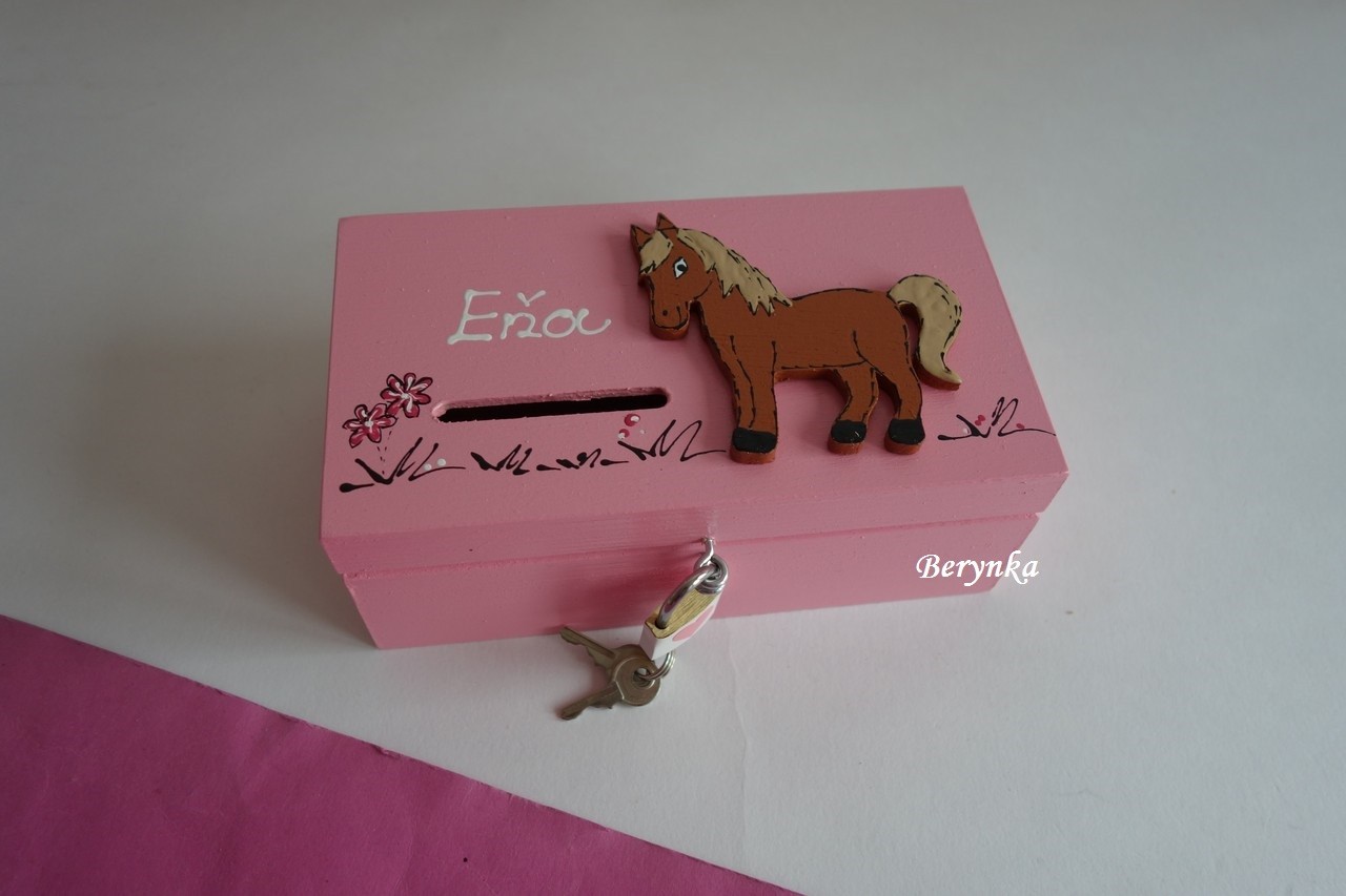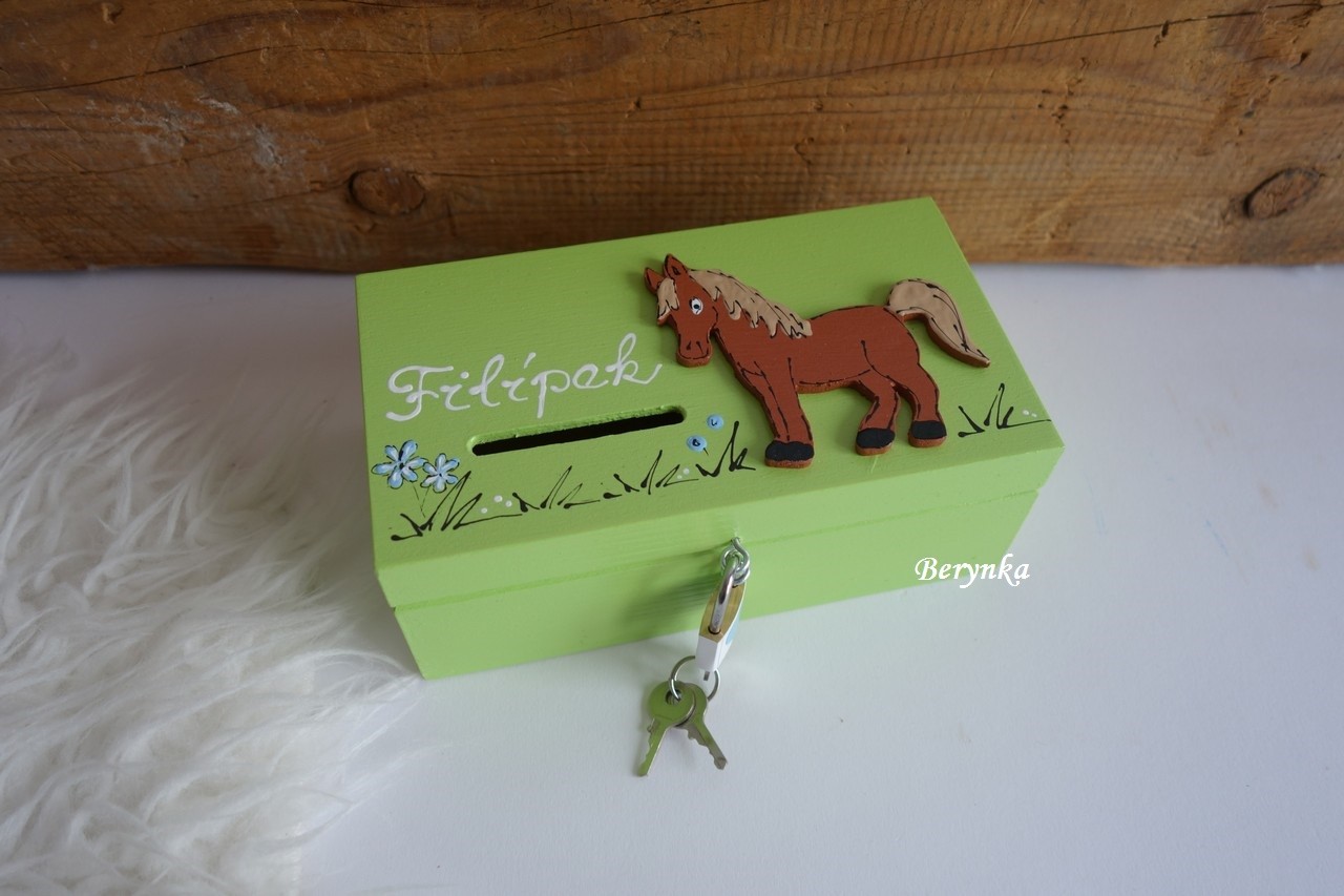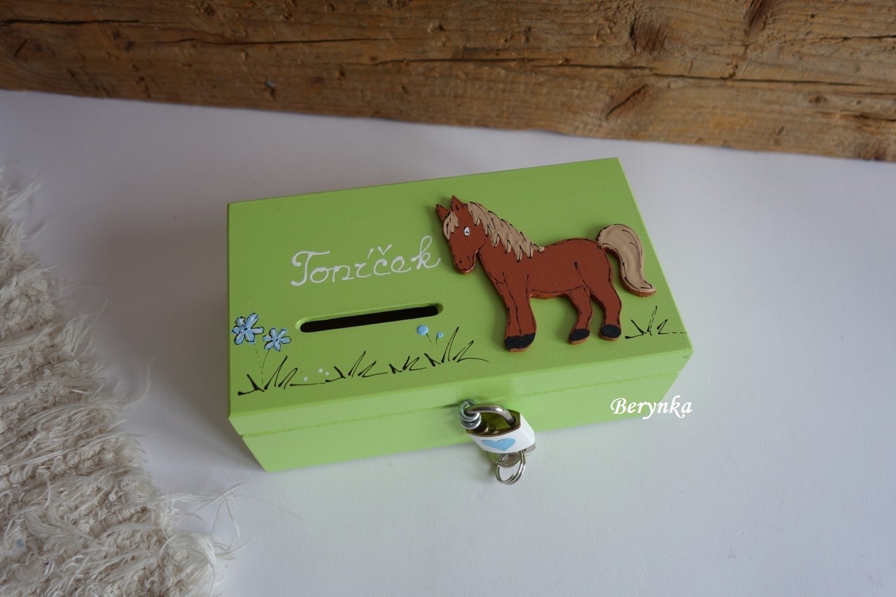 Dřevěná pokladnička s koníkem