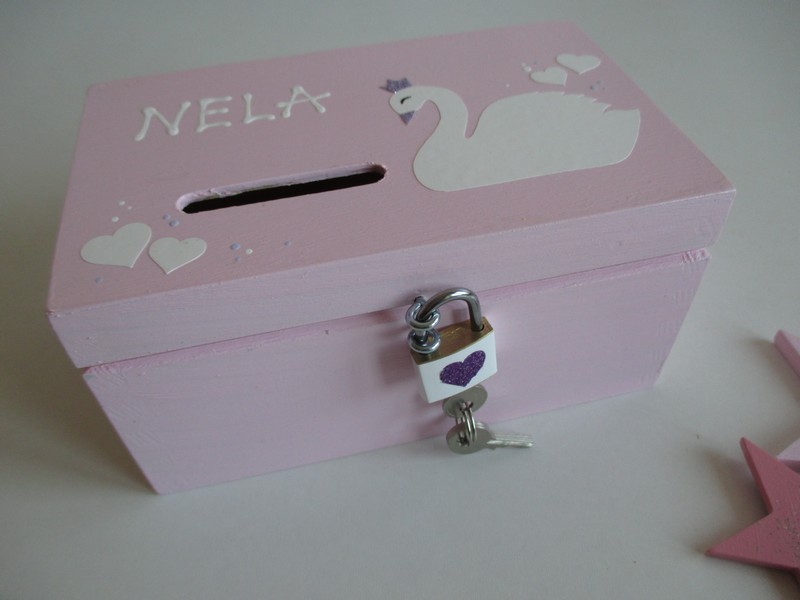 - pokladnička je ručně malovaná, zdobená a přelakovaná - je možné jí snadno otřít