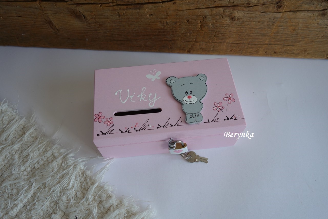- pokladnička je ručně malovaná, zdobená a přelakovaná - je možné jí snadno otřít