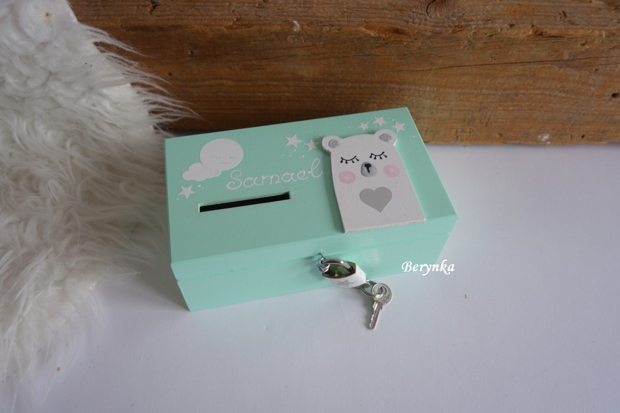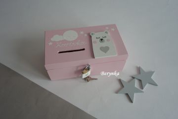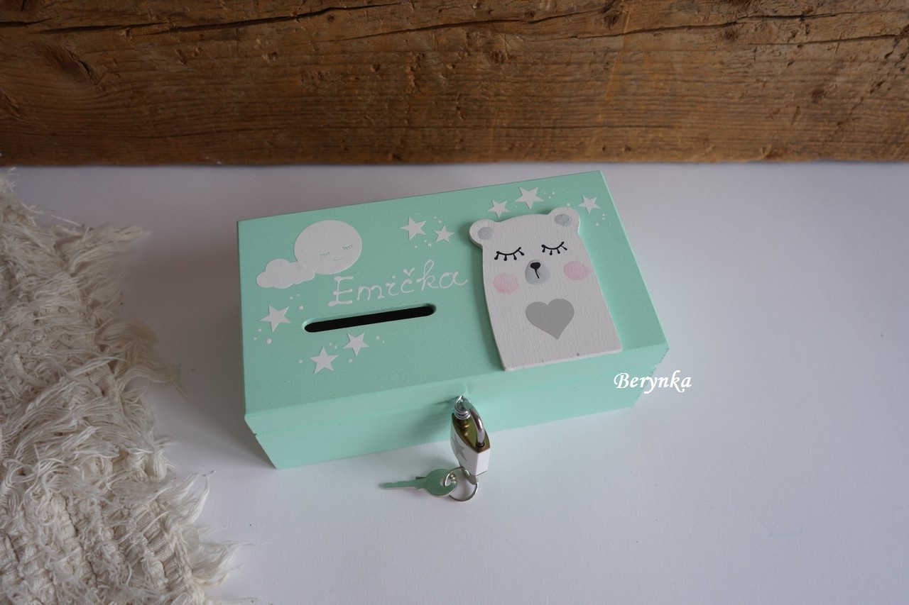 - pokladnička je ručně malovaná, zdobená a přelakovaná - je možné jí snadno otřít