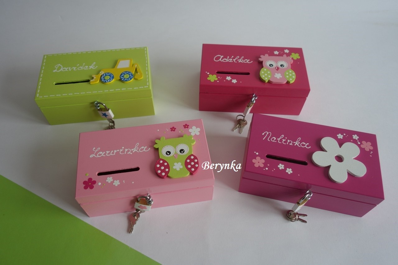 Je možné udělat i jiné provedení pokladničky a doplnit další dekorace do sady pro holky i kluky.