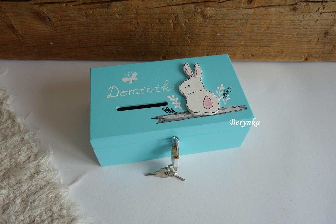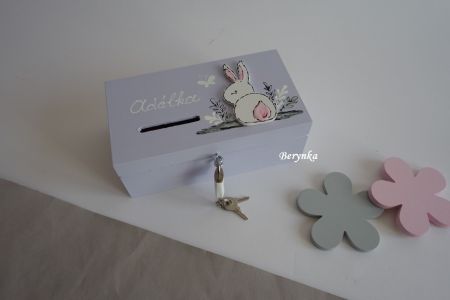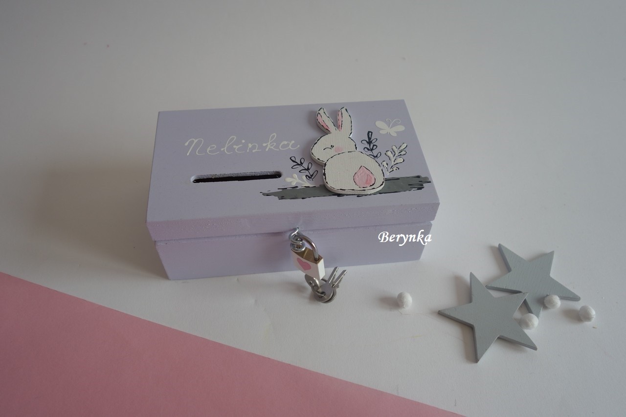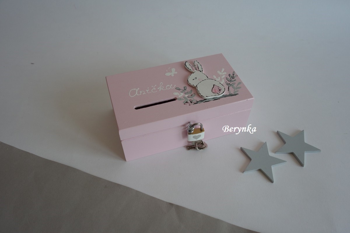 Dřevěná pokladnička se zajíčkem v trávě