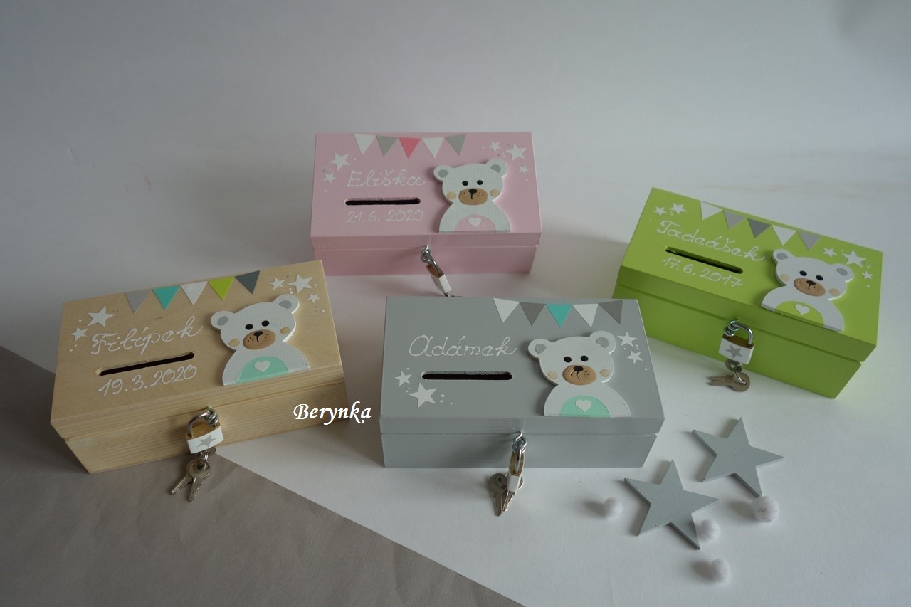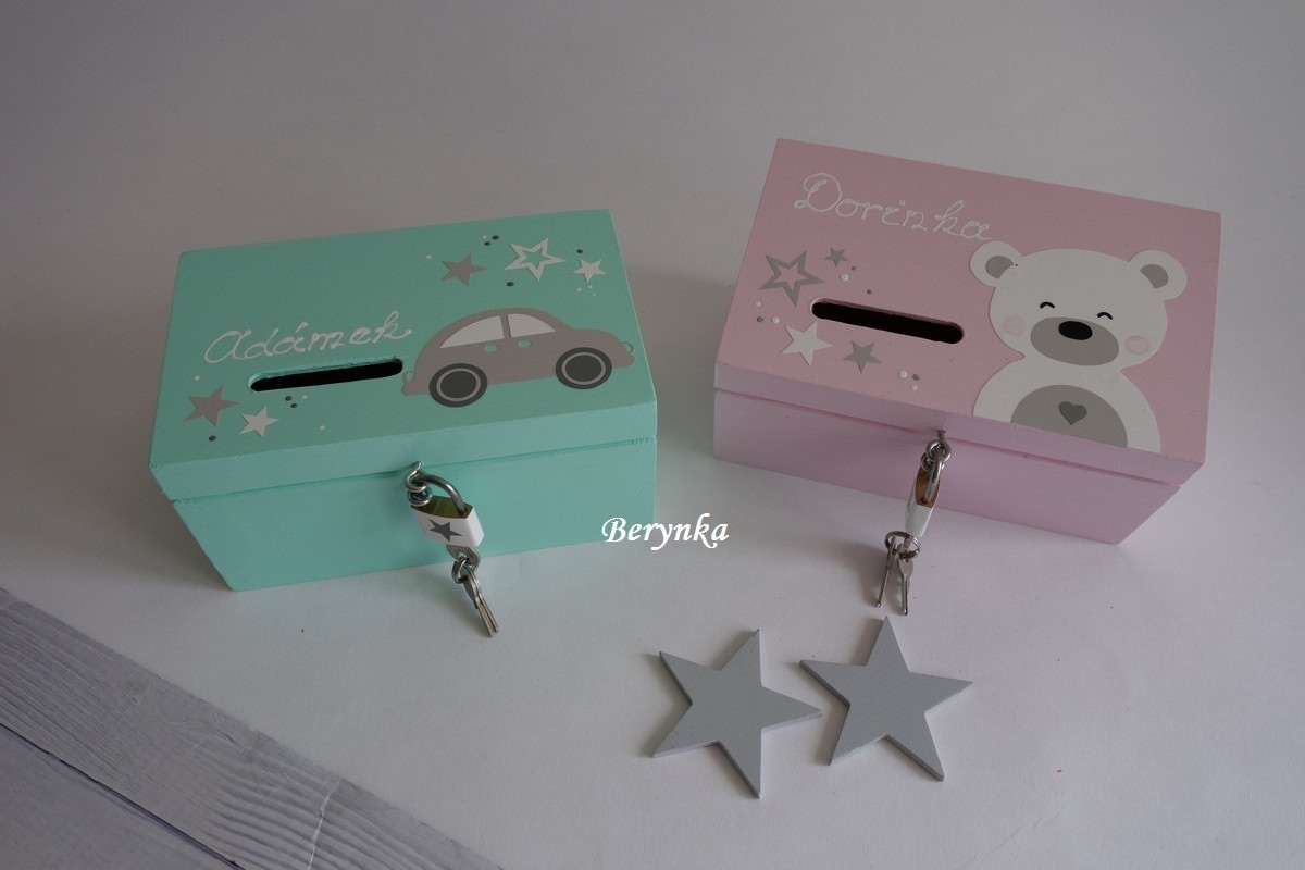 Je možné udělat i jiné provedení pokladničky a doplnit další dekorace do sady pro holky i kluky.