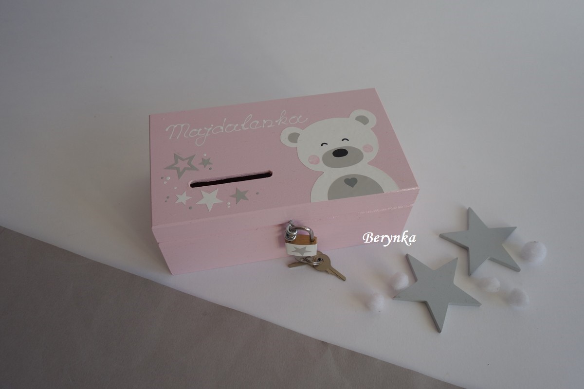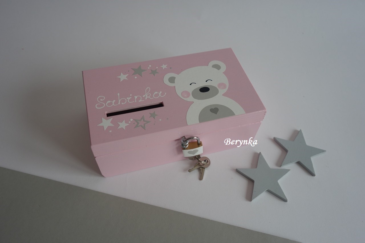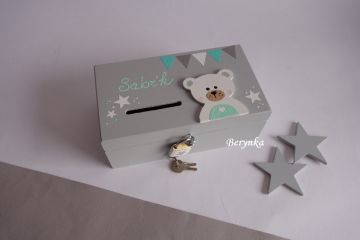 - pokladnička je ručně malovaná, zdobená a přelakovaná - je možné jí snadno otřít