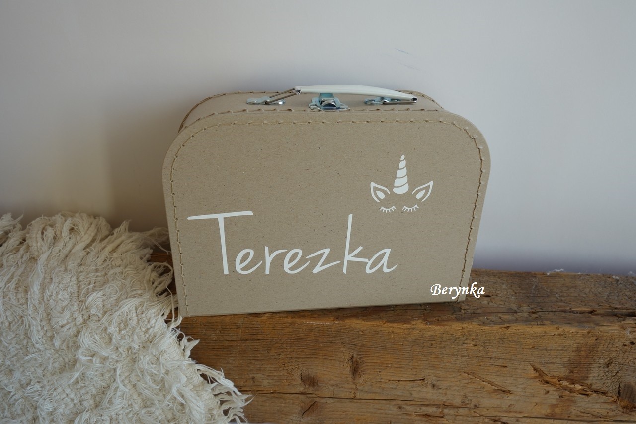 - šitý kufřík je vyrobený z lepenky (vyrobena z recyklovaného papíru)