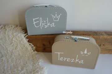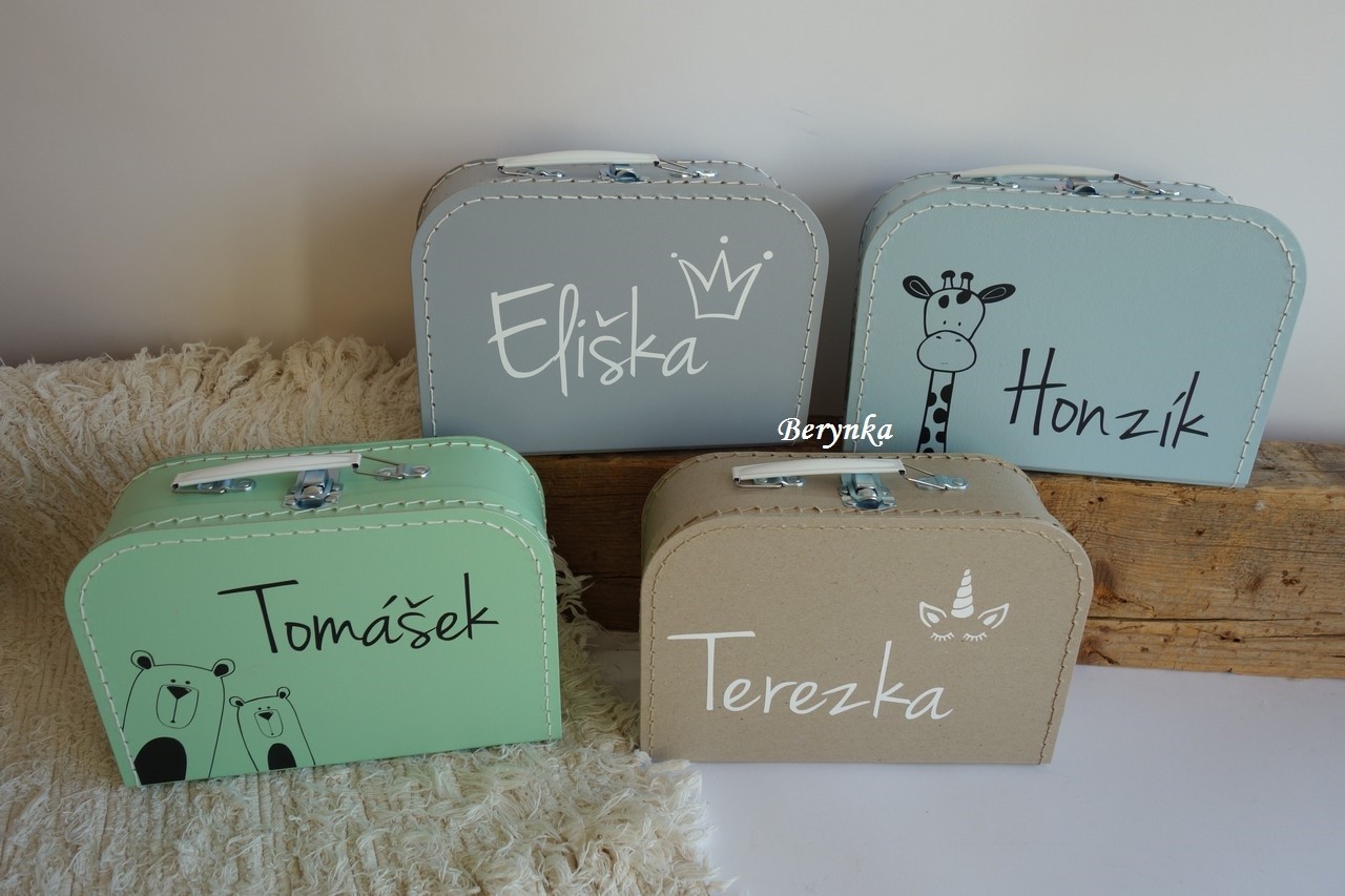 - kufříky jsou v barvách přírodní, šedá, světle modrá, mátová a světle růžová