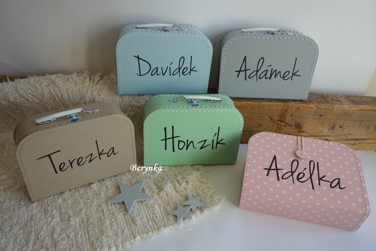 - kufříky jsou v barvách přírodní, šedá, světle modrá, mátová a světle růžová