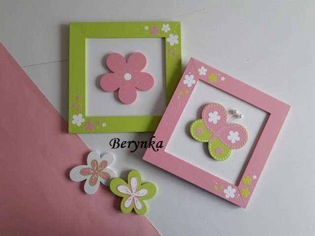 - v rámečku je destička, na které je nalepená dekorace - ta je ručně vyřezaná z překližky, namalovaná a přelakovaná