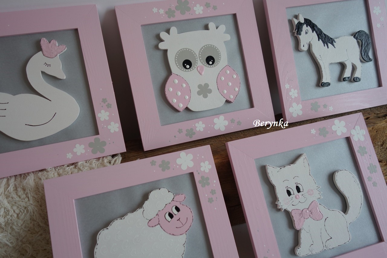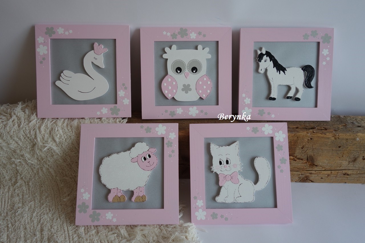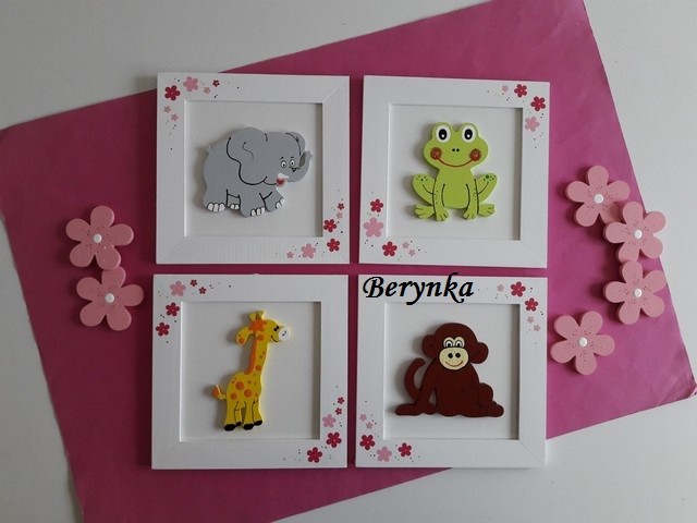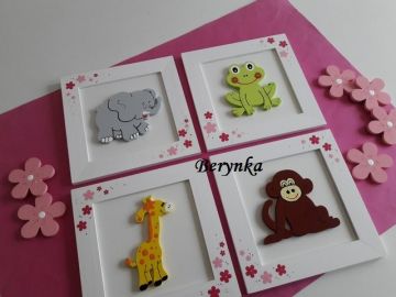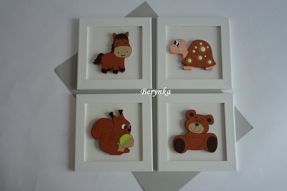 Dřevěné obrázky s zvířátky, vhodné do dětských pokojíčků