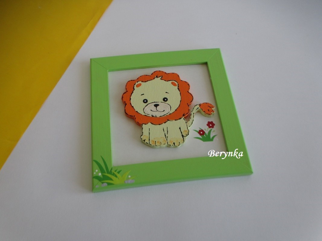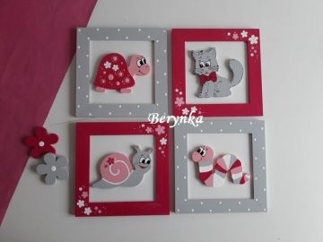 - v rámečku je destička, na které je nalepená dekorace - ta je ručně vyřezaná z překližky, namalovaná a přelakovaná
