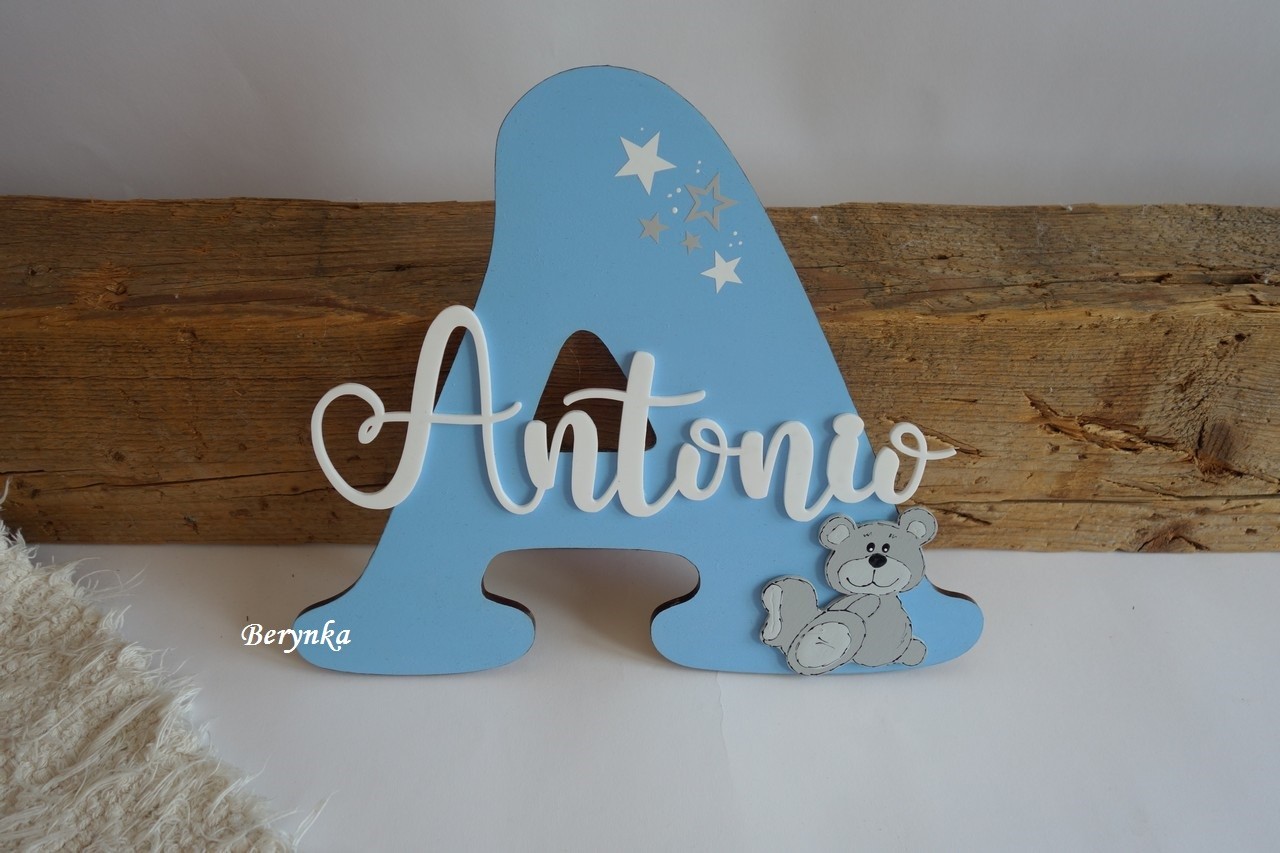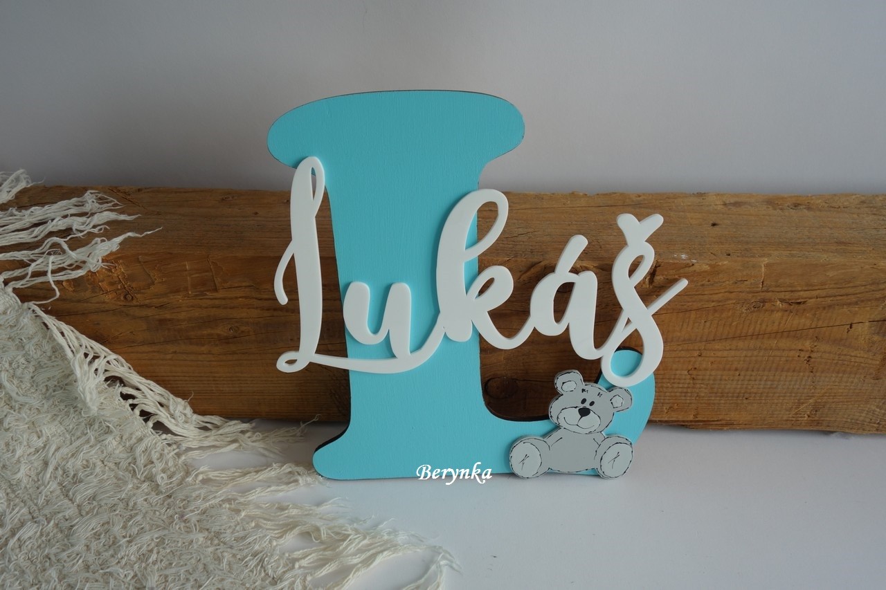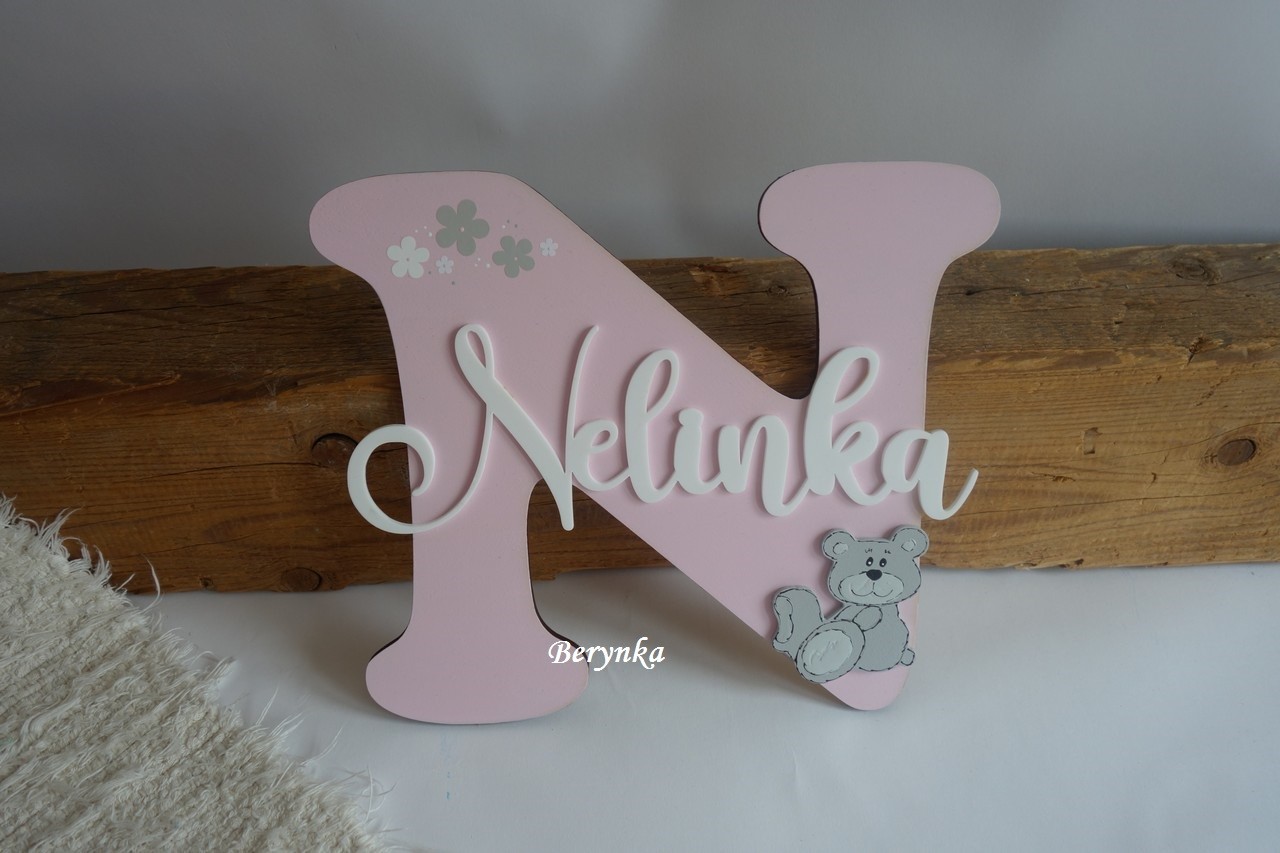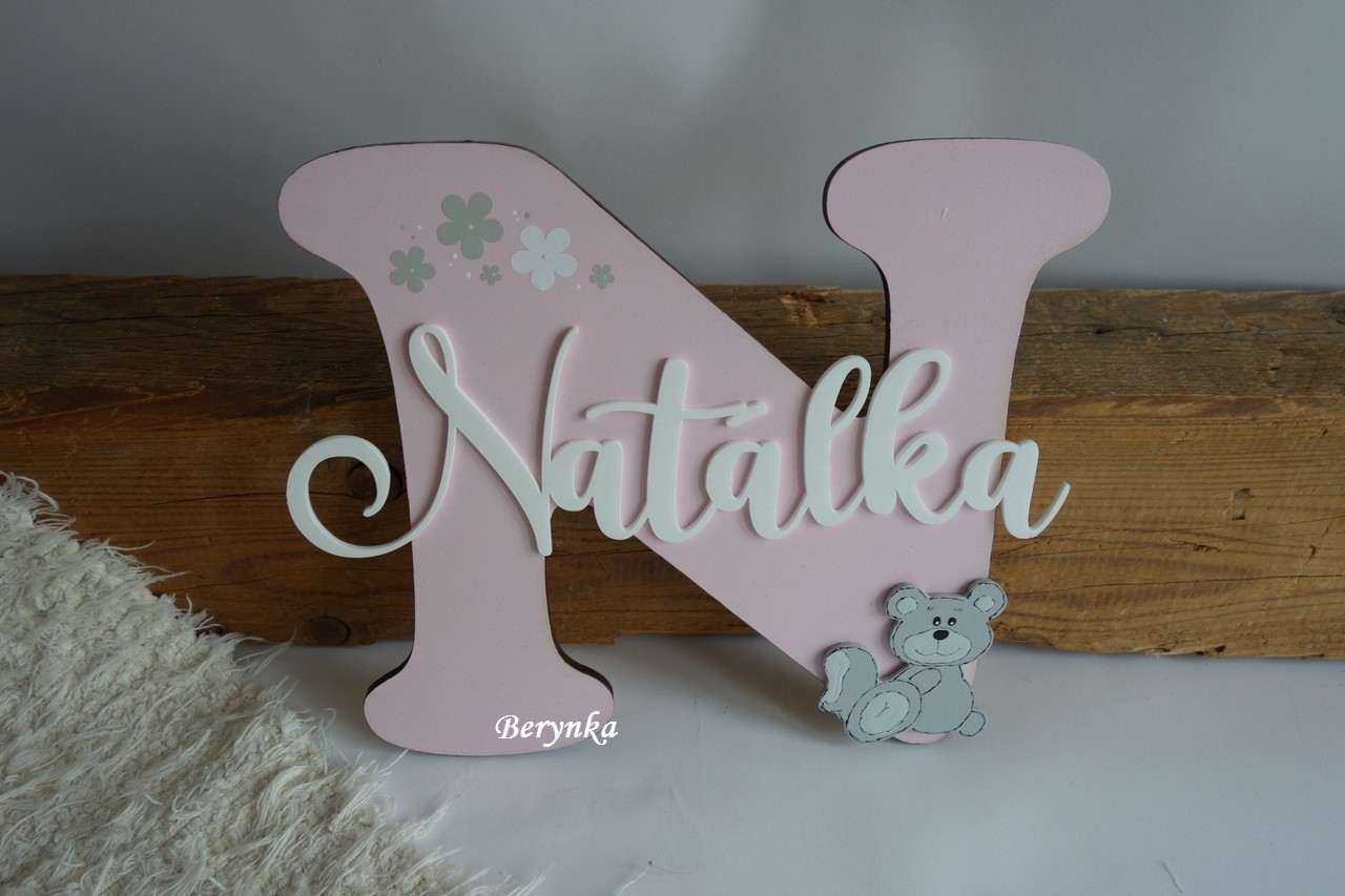 - písmeno i medvídek jsou vyřezané z překližky, ručně malované a zdobené