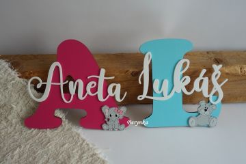 - jméno je vyřezané zvlášť a na písmenu je nalepené, dělám ho pouze v bílé barvě