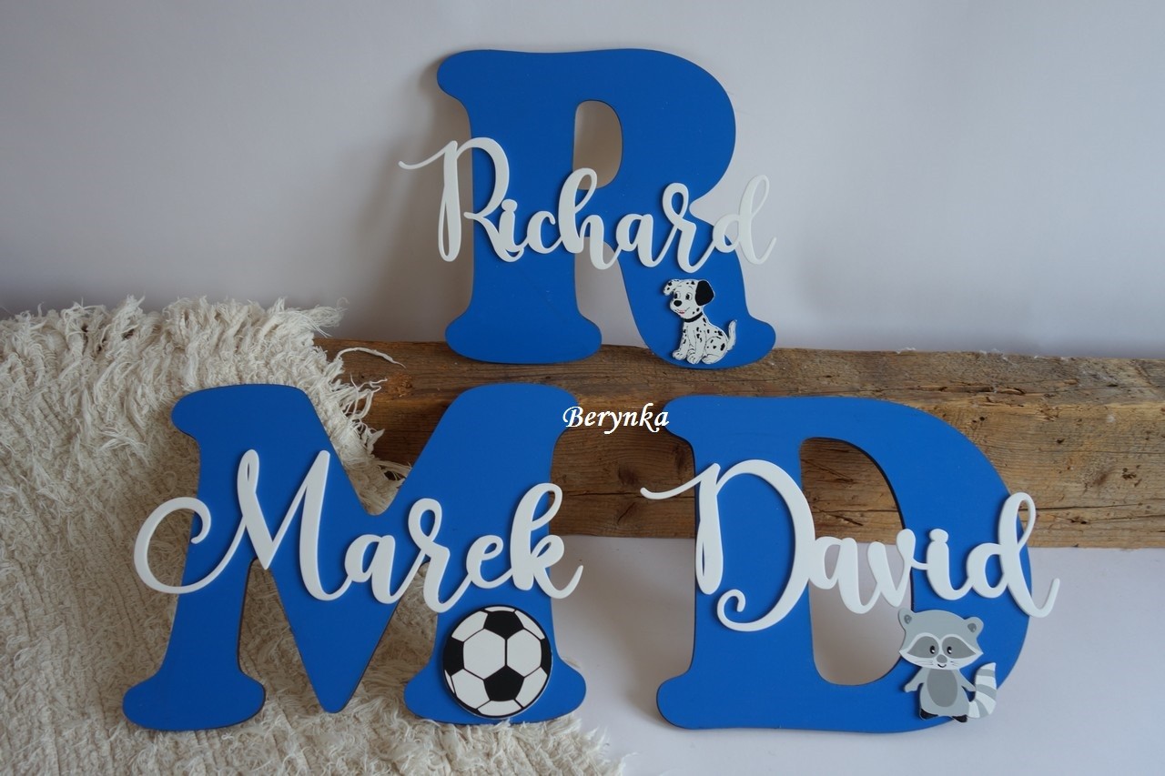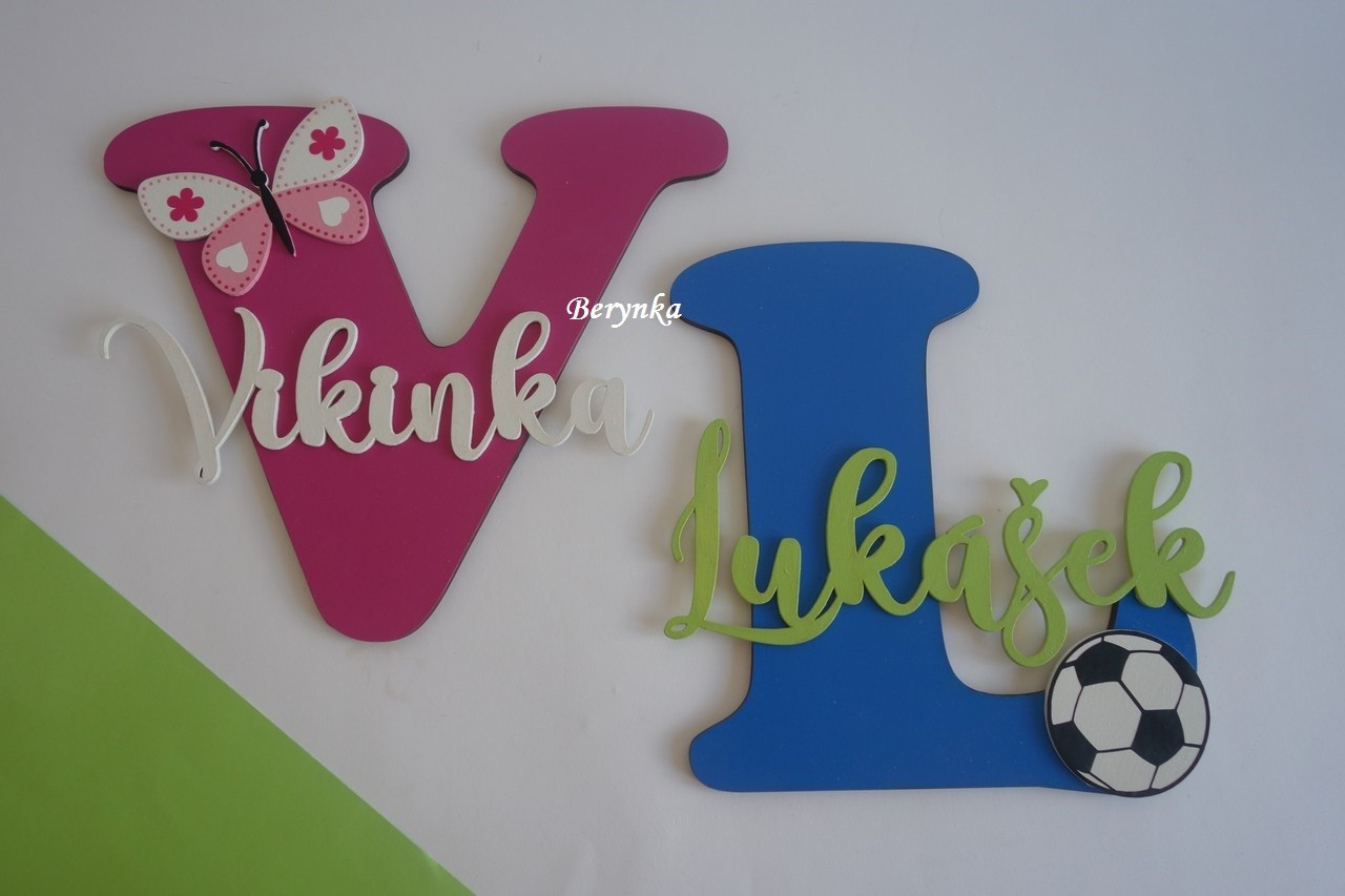 - jméno je vyřezané zvlášť a na písmenu je nalepené, dělám ho pouze v bílé barvě