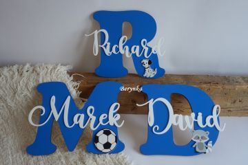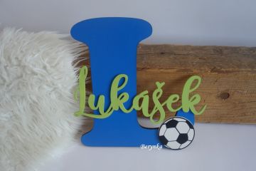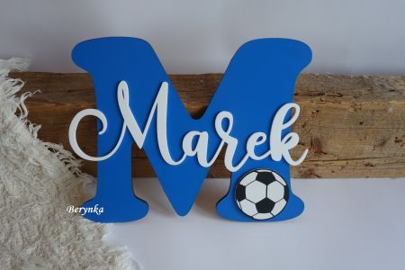 Dřevěné písmeno se jménem a fotbalovým míčem